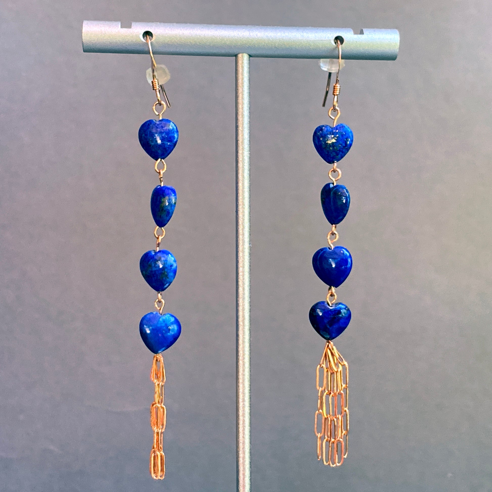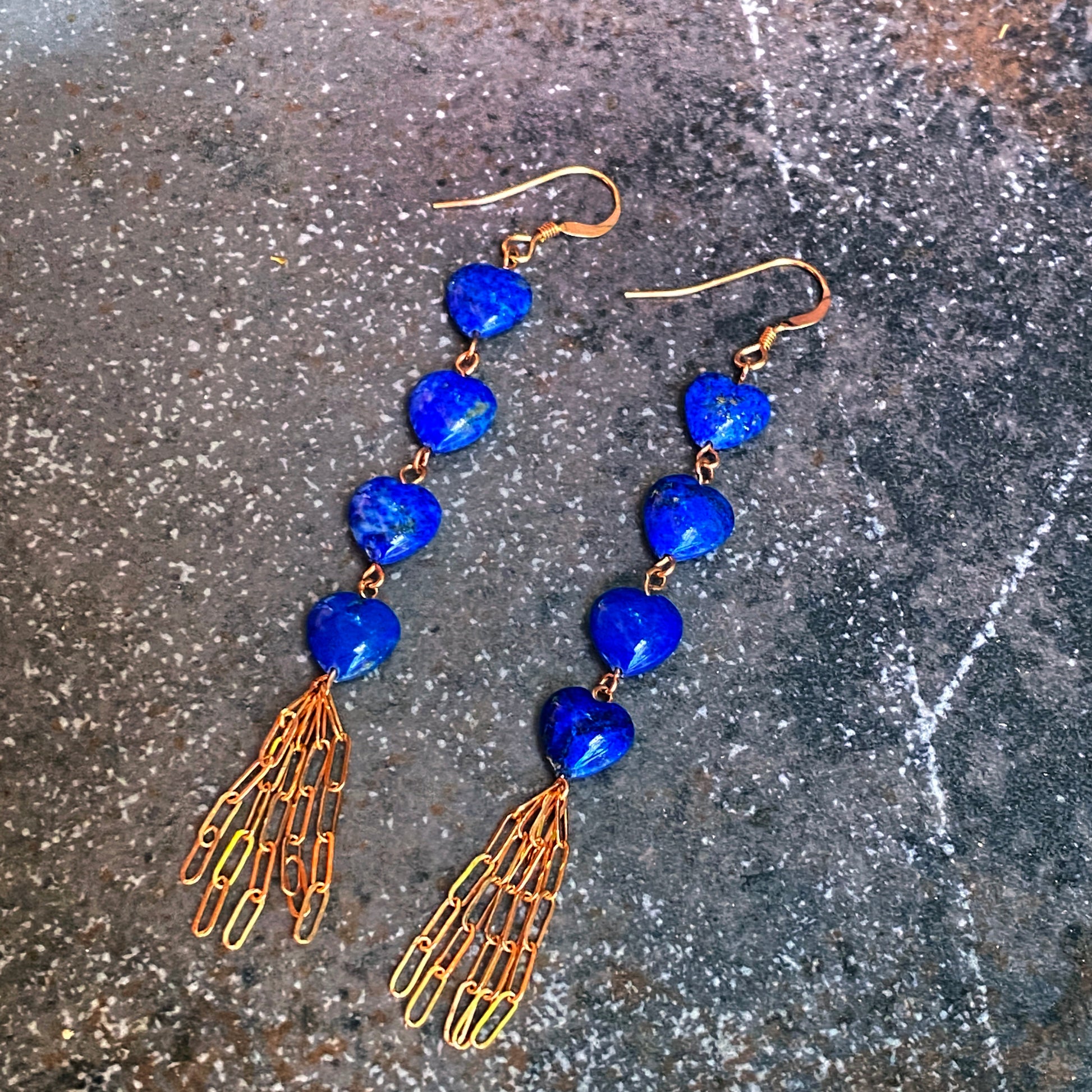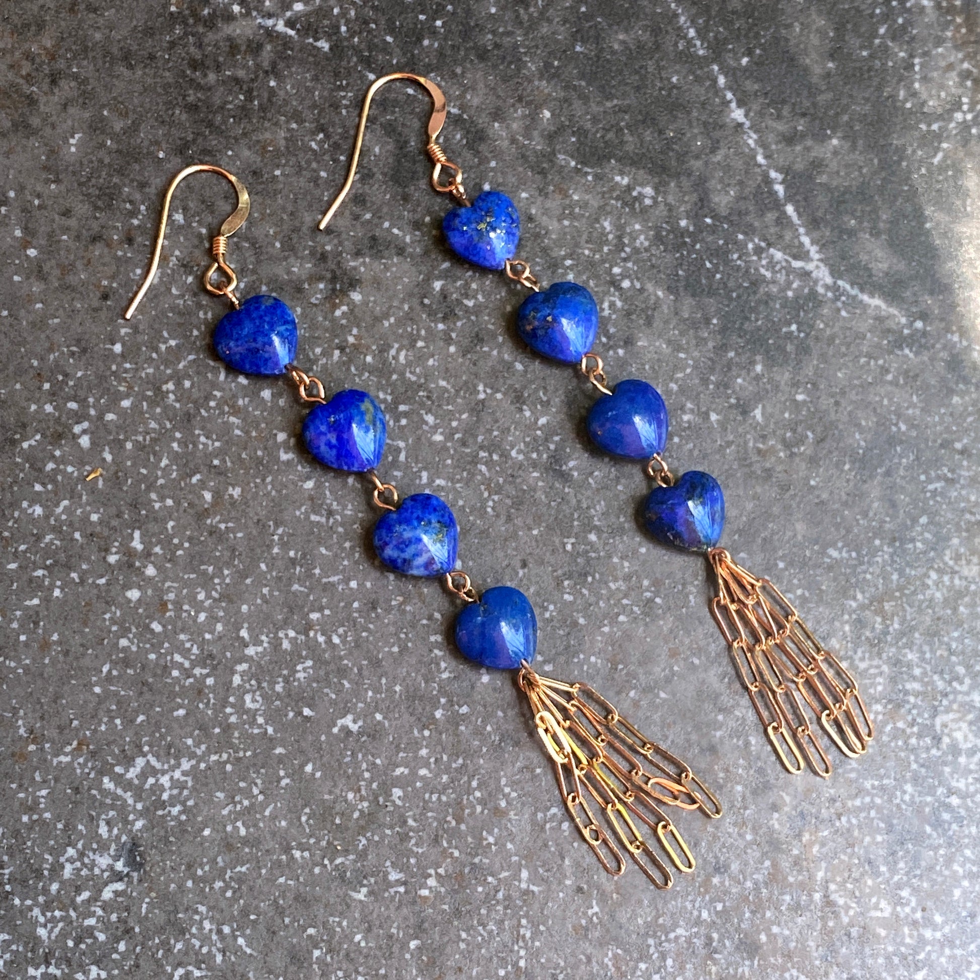 Lapis lazuli hearts and 14 kt rose GF drop earrings