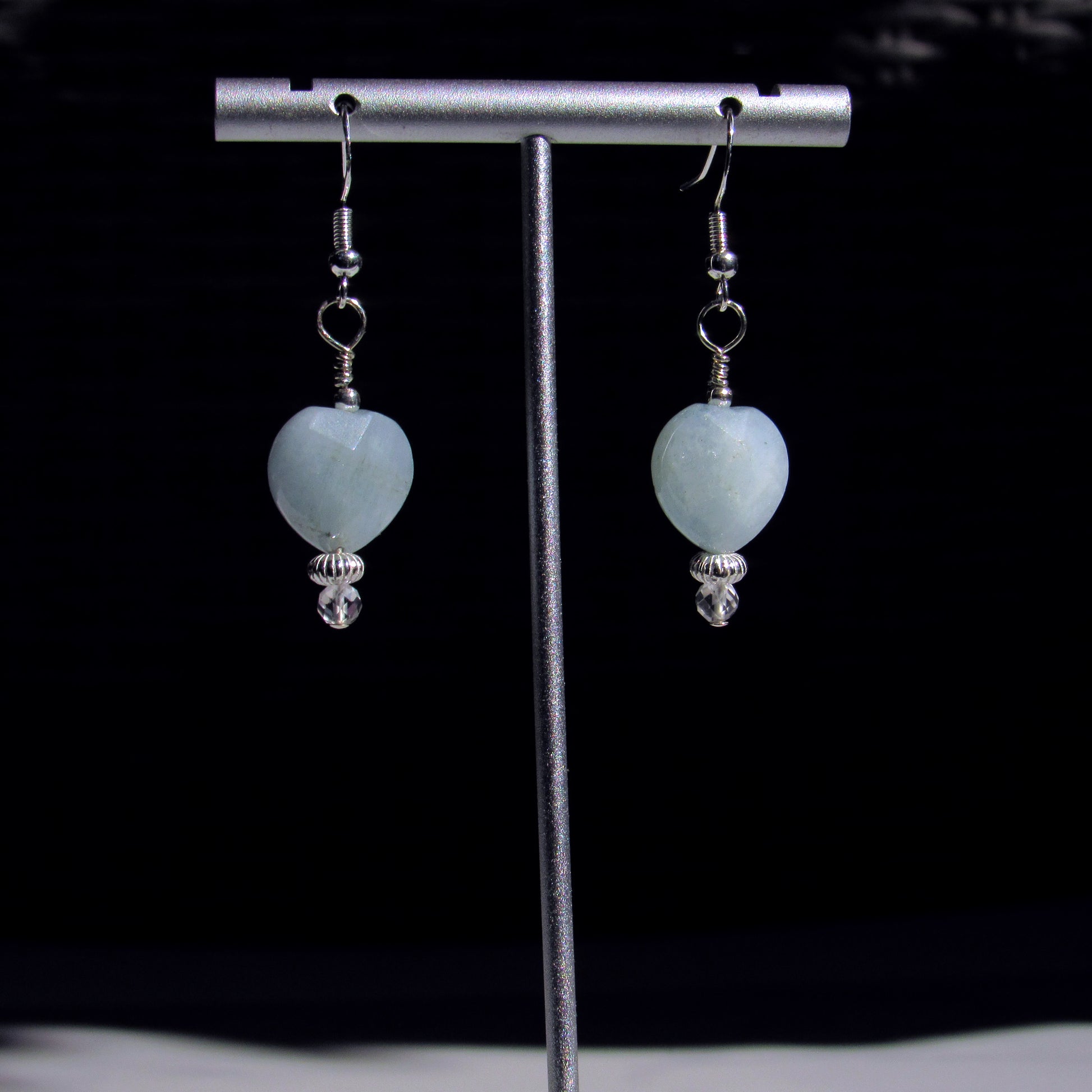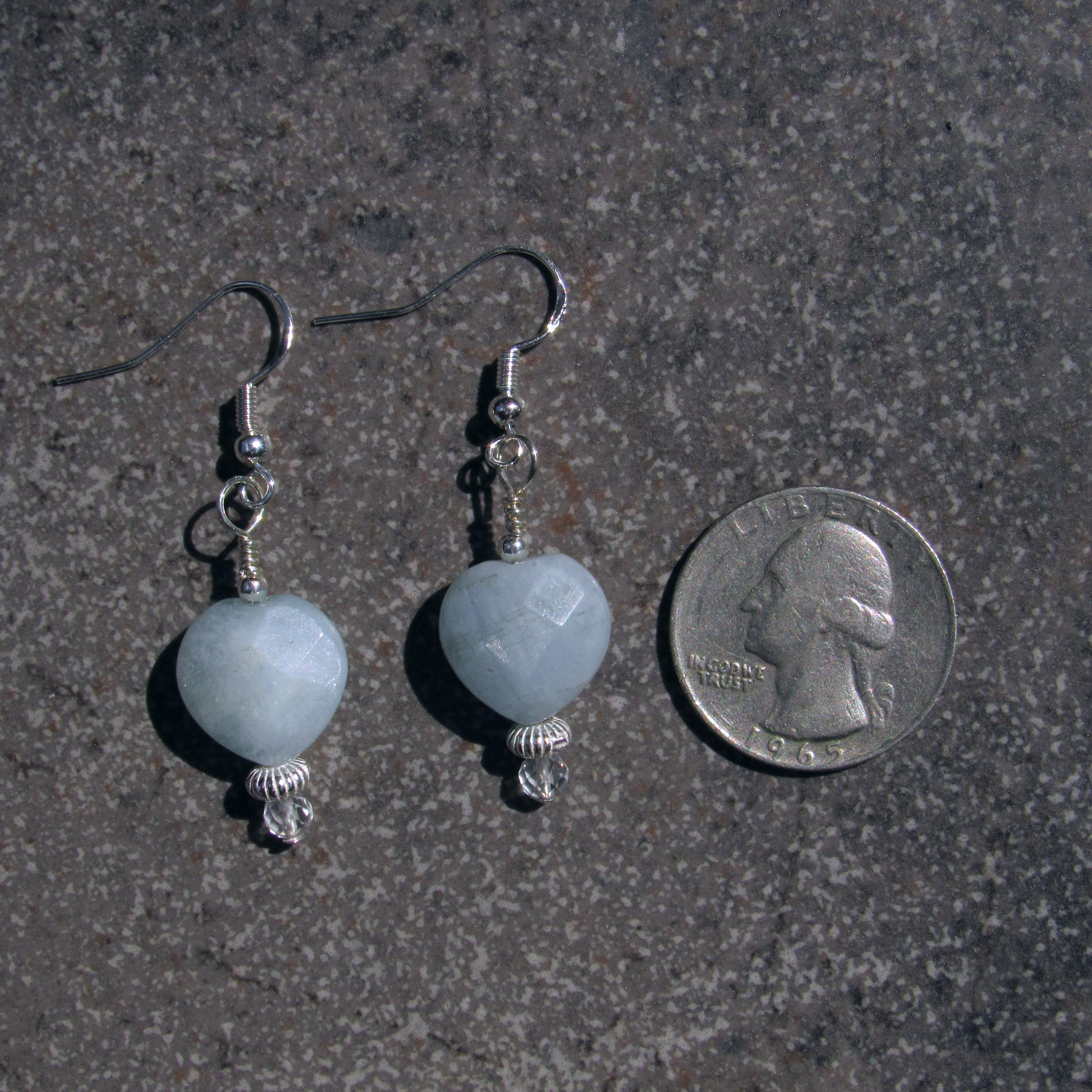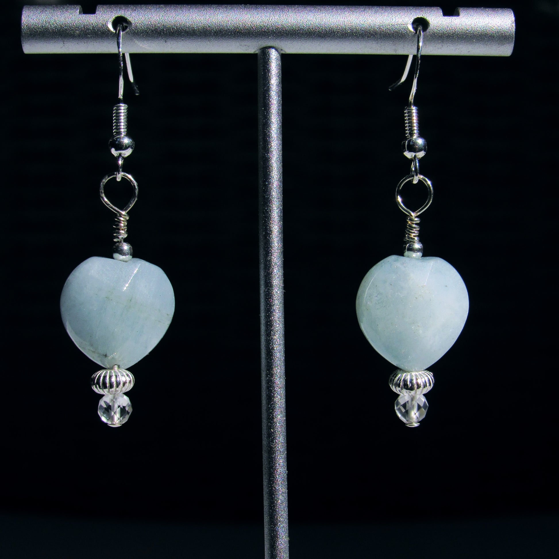 Large Aquamarine Hearts with Sterling Silver and white Topaz Drop Earrings