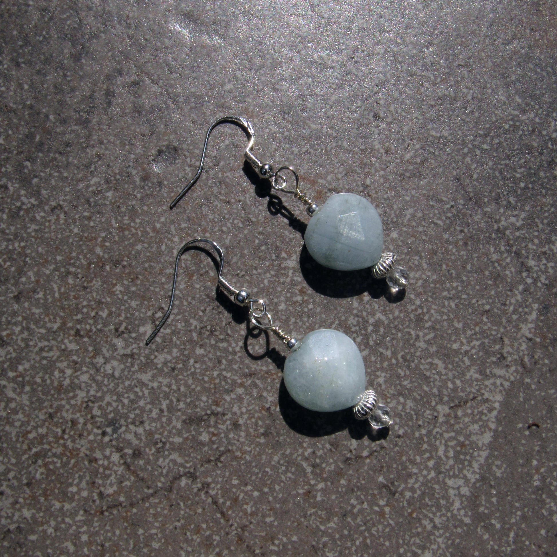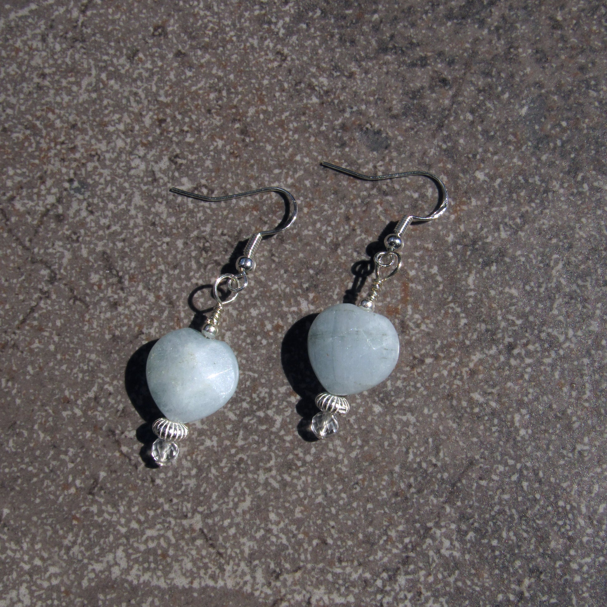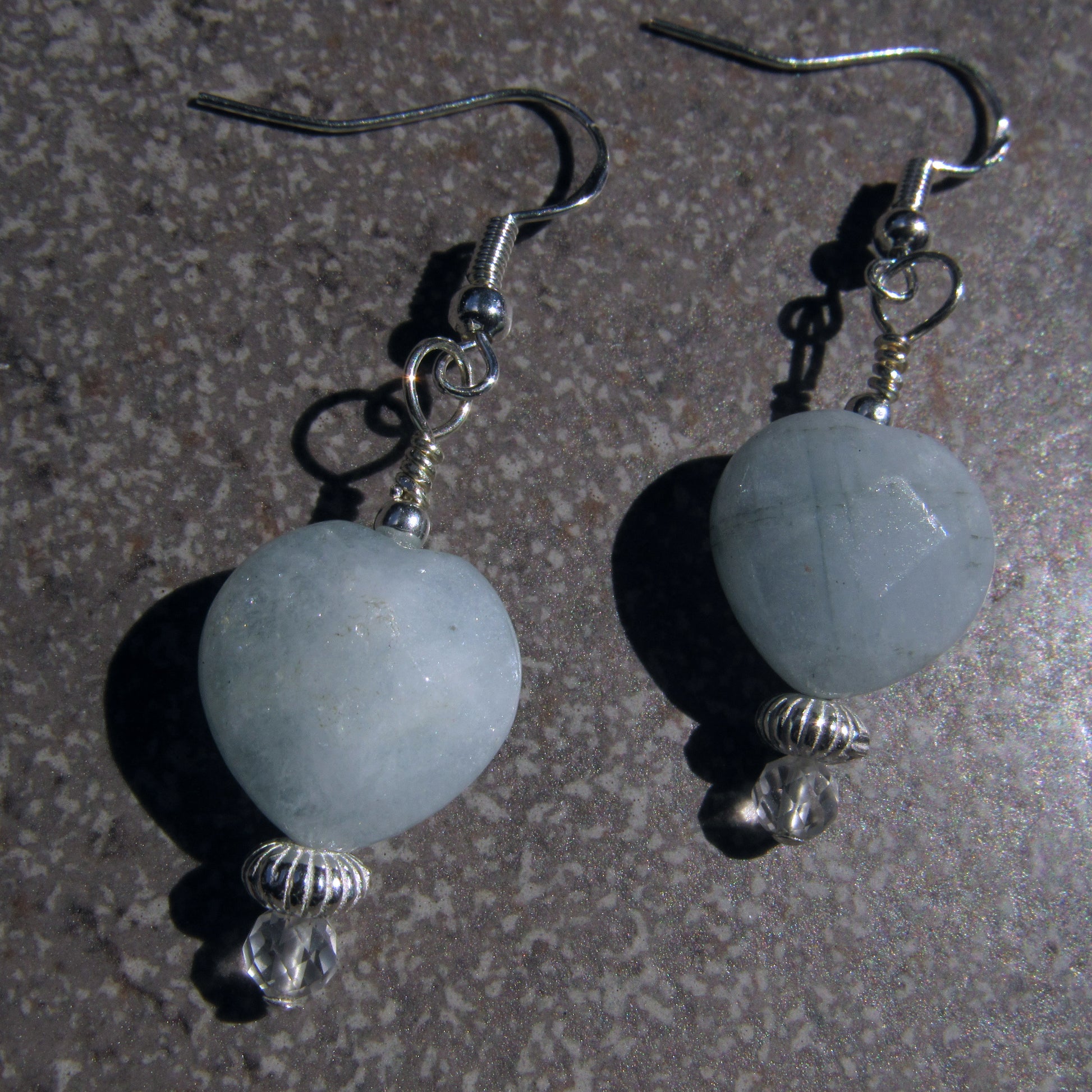 Large Aquamarine Hearts with Sterling Silver and white Topaz Drop Earrings