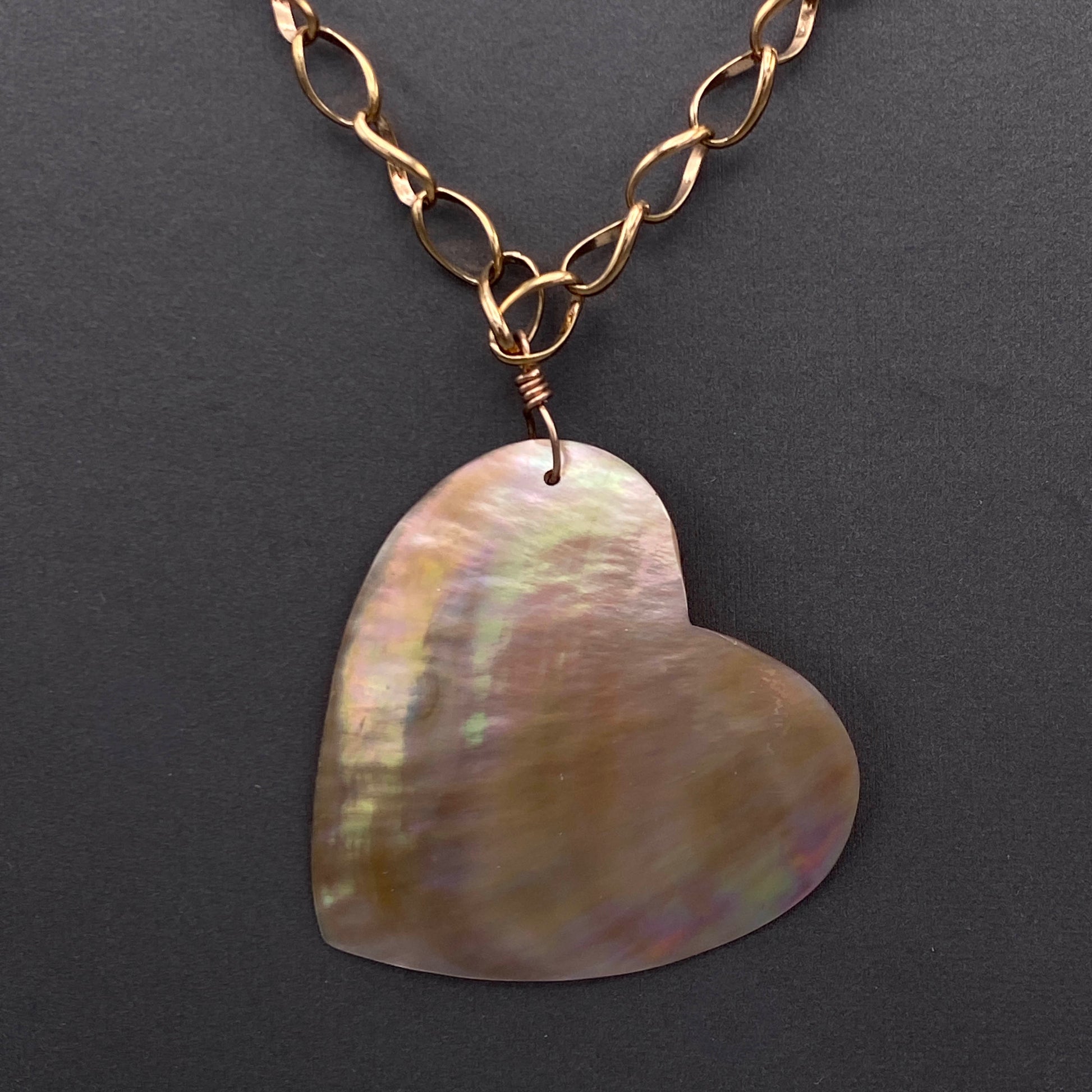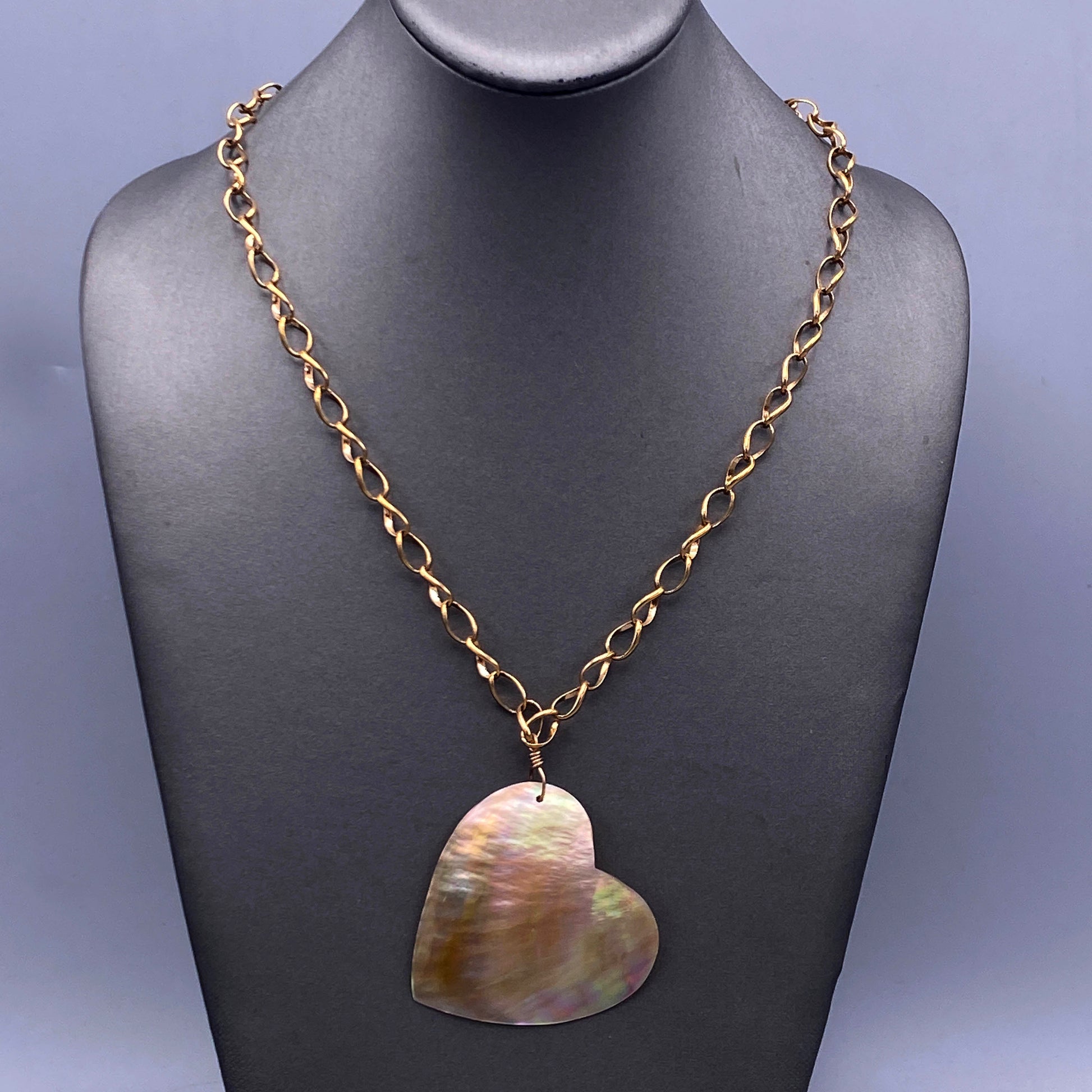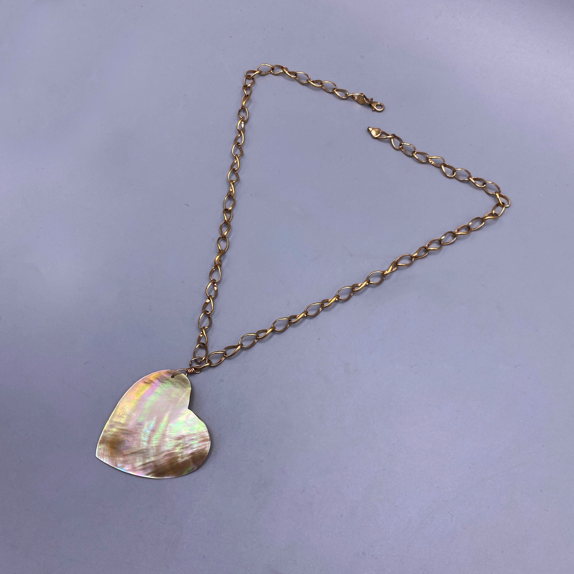 Mother of the Pearl Heart shaped pendant on a chain with a clasp.