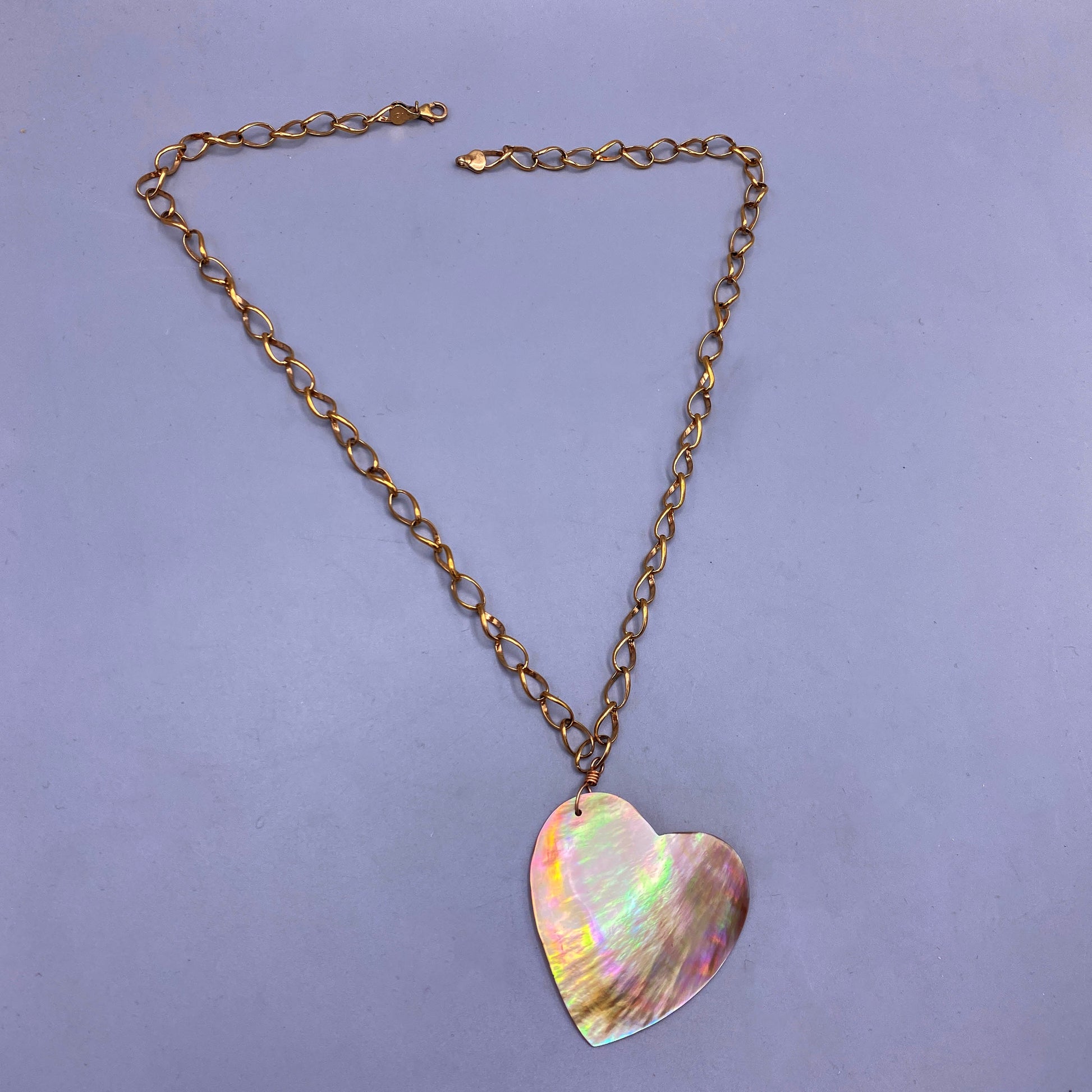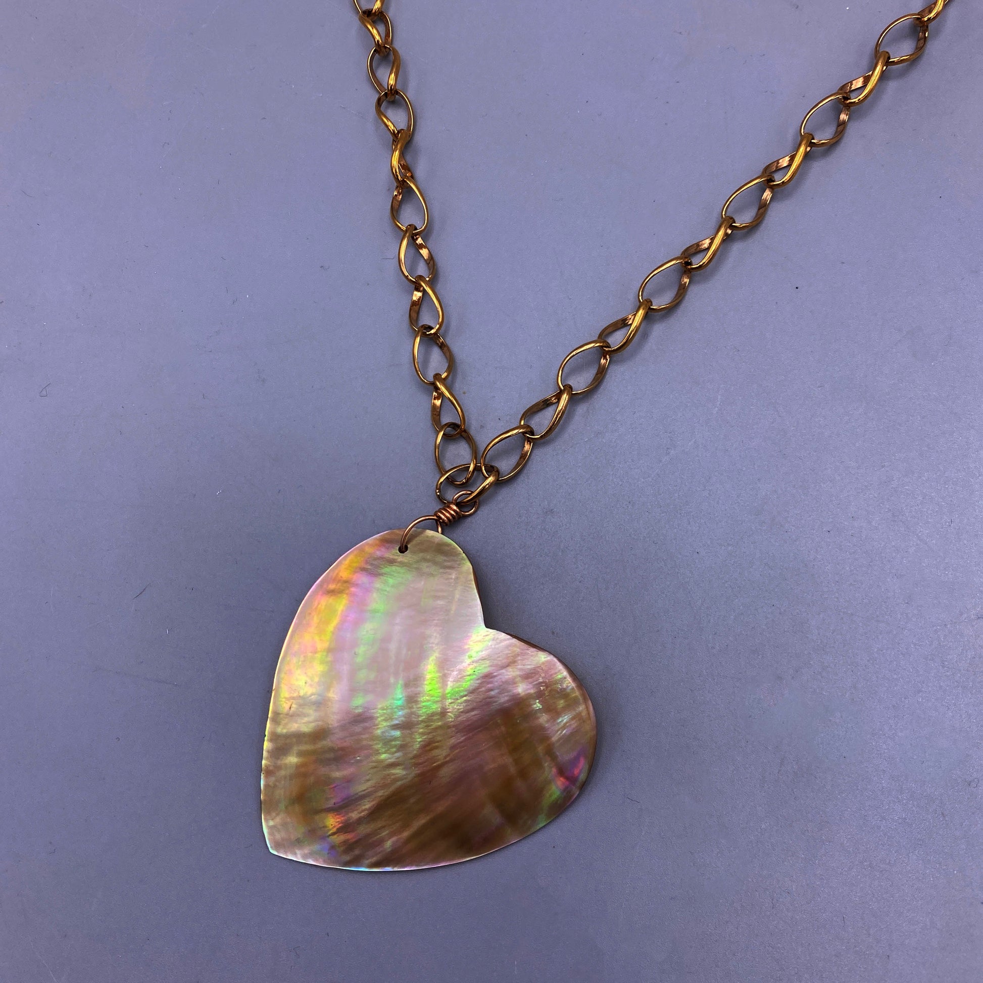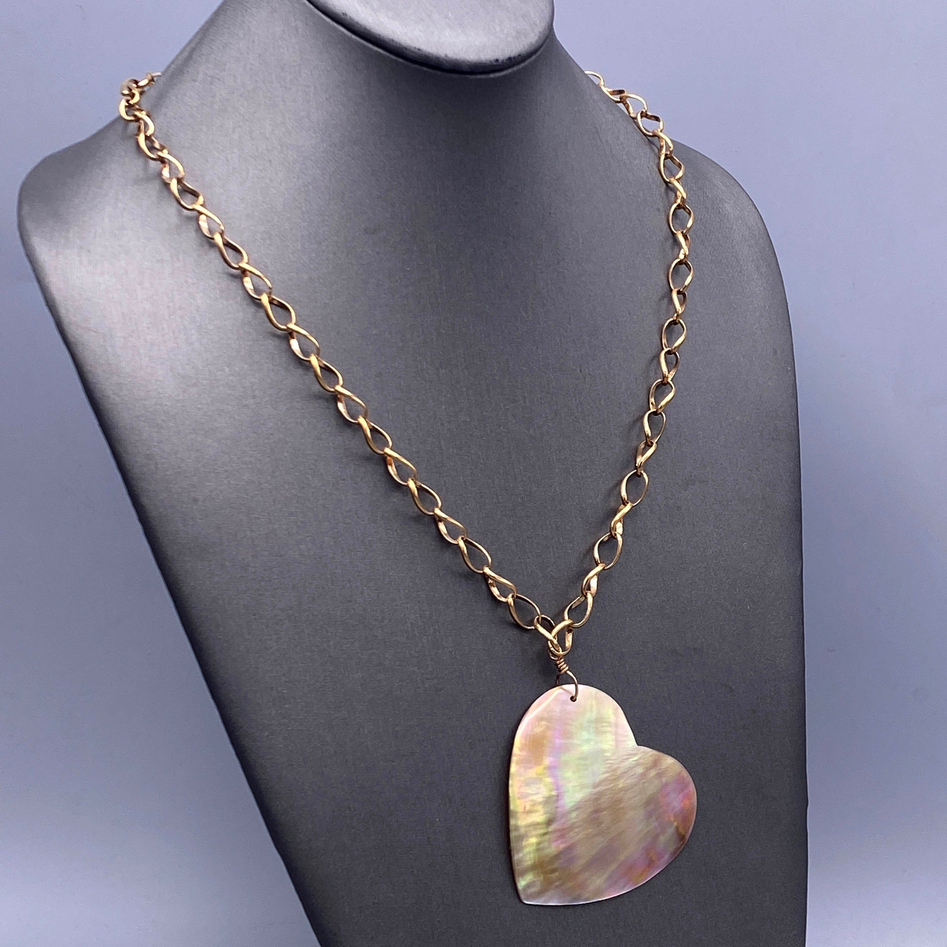Mother of the Pearl Heart shaped pendant on a chain with a clasp.