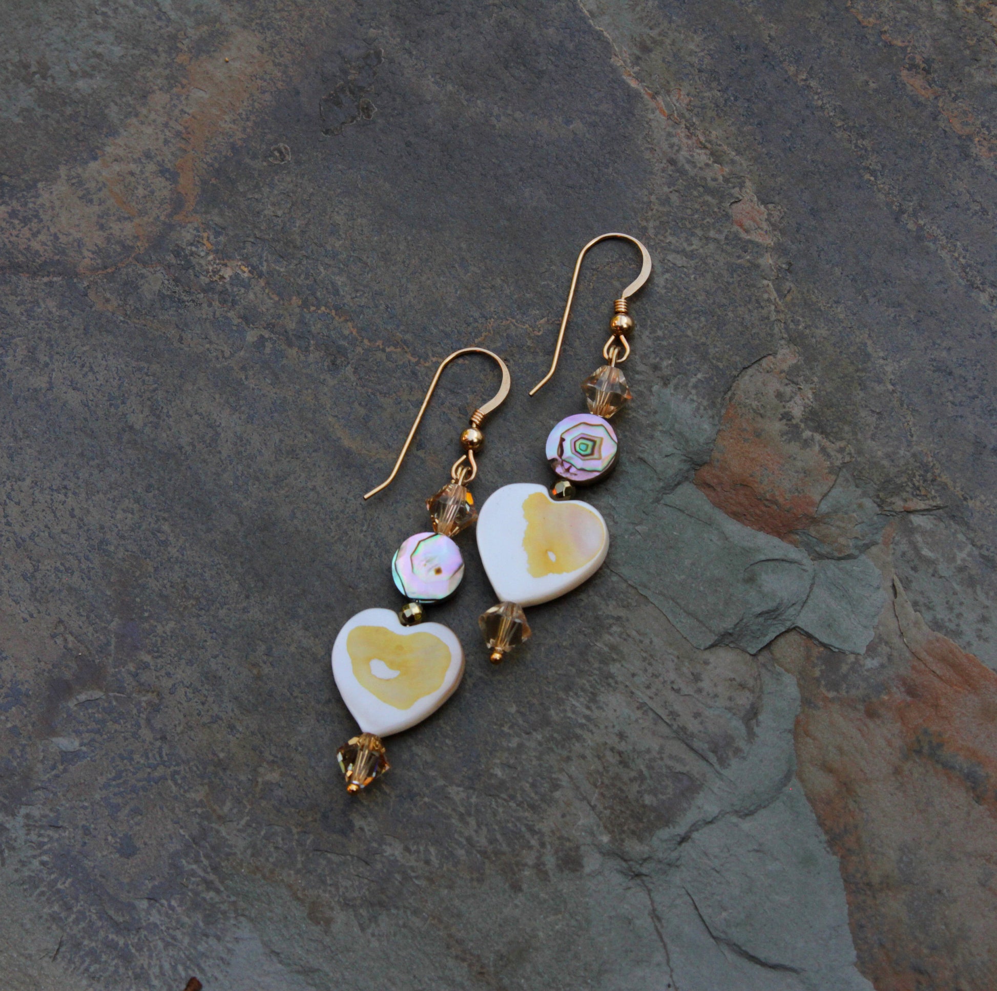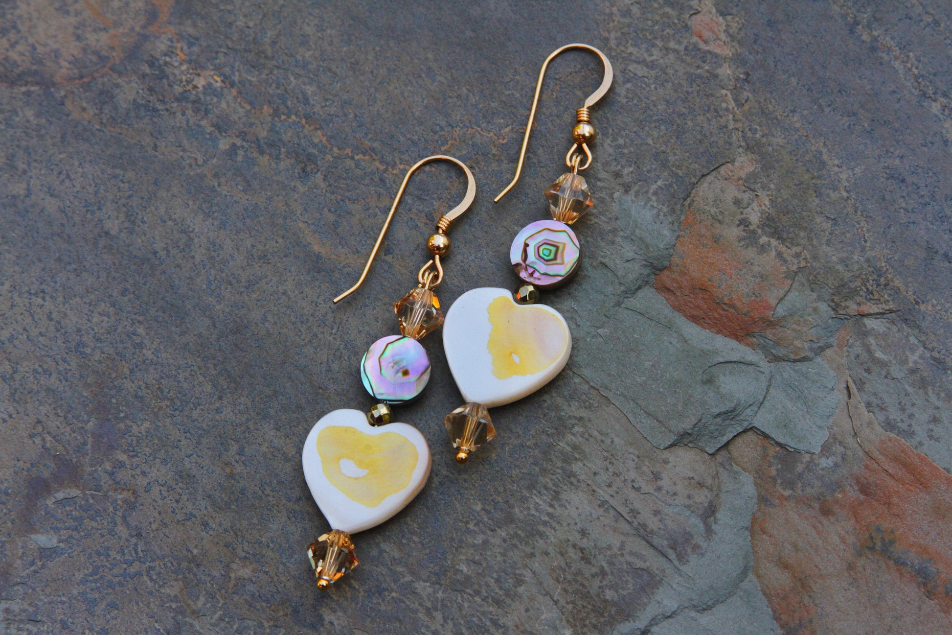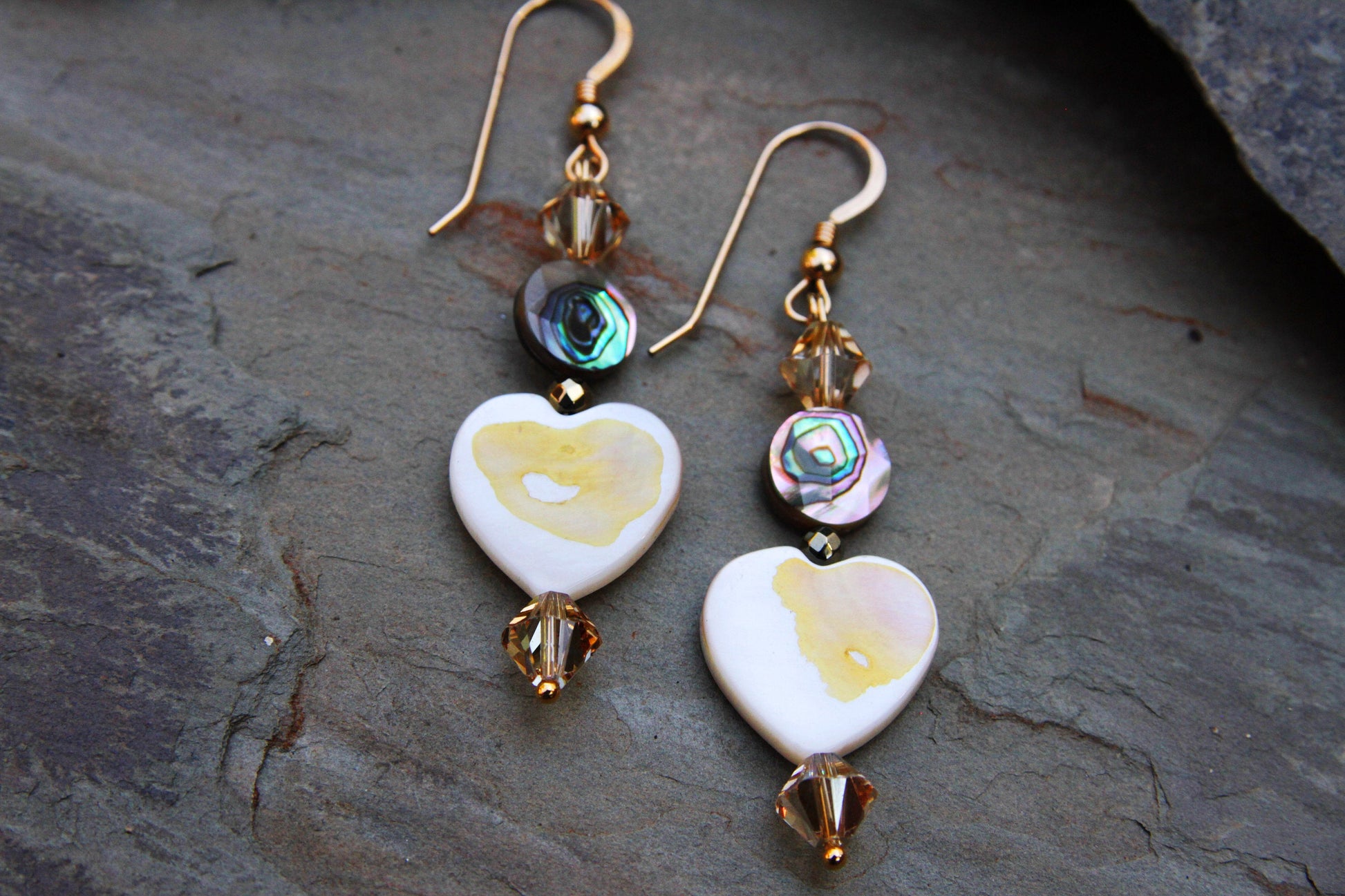 Mother of Pearl Heart shaped dangle and drop Earrings
