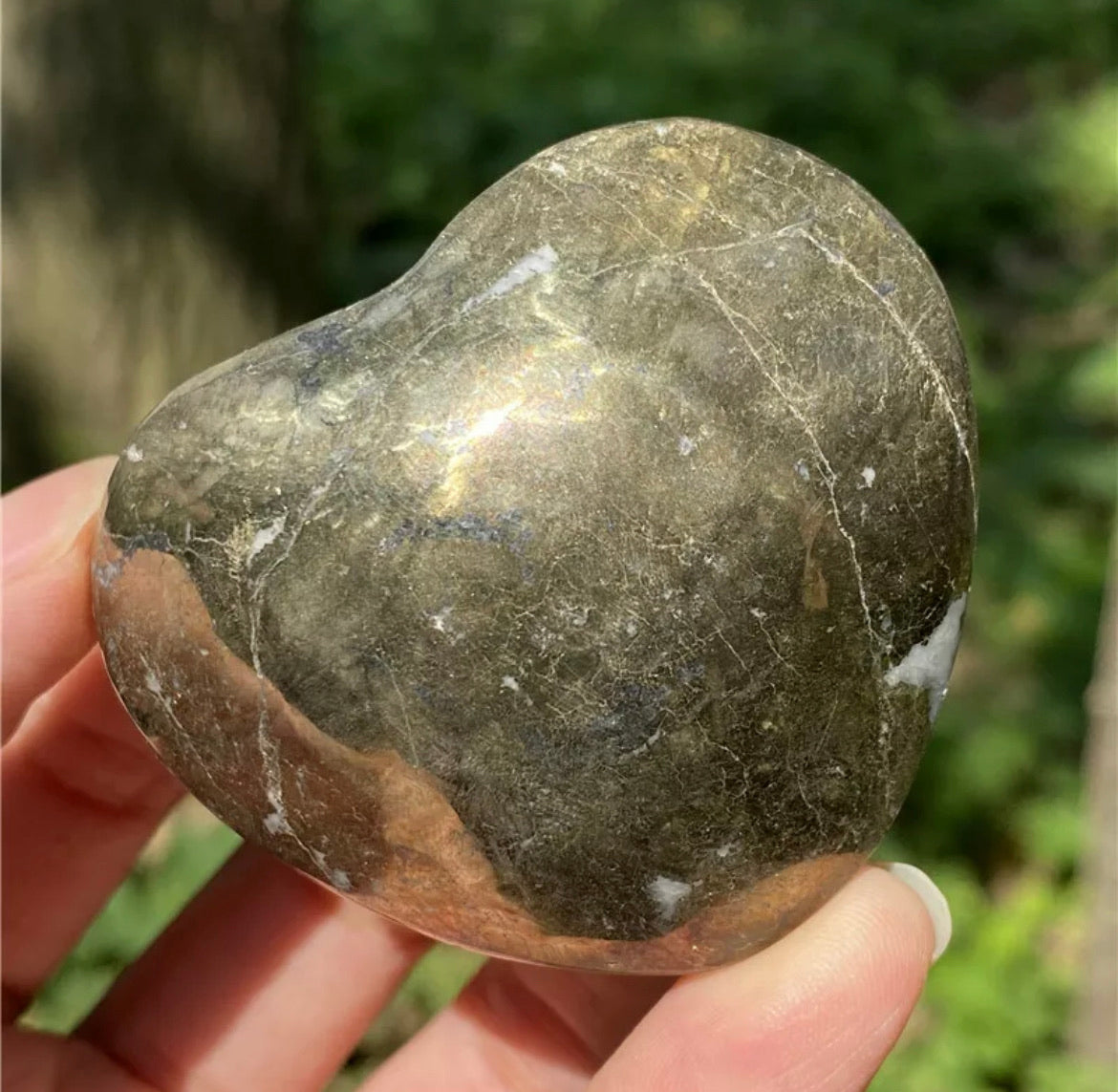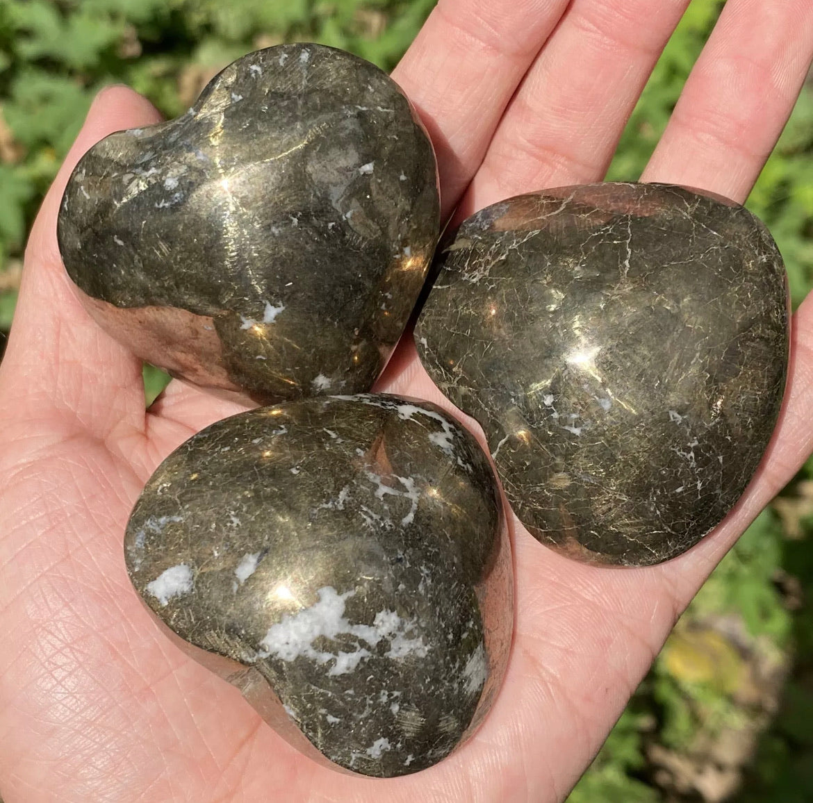 Natural chalcopyrite heart Quartz crystal love heart Reiki Healing 1pc Semiprecious gemstone massage stone