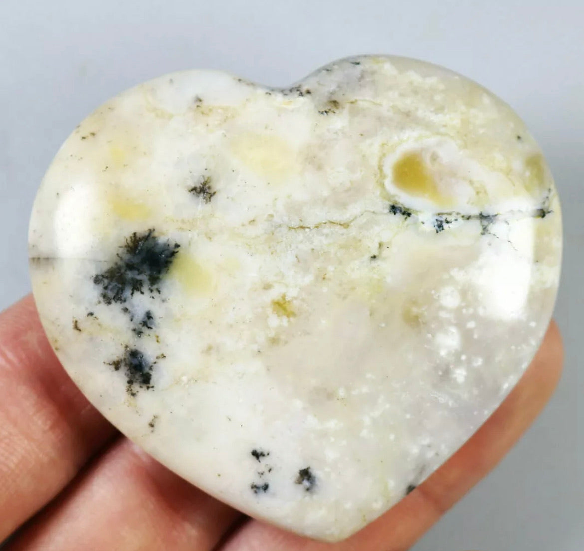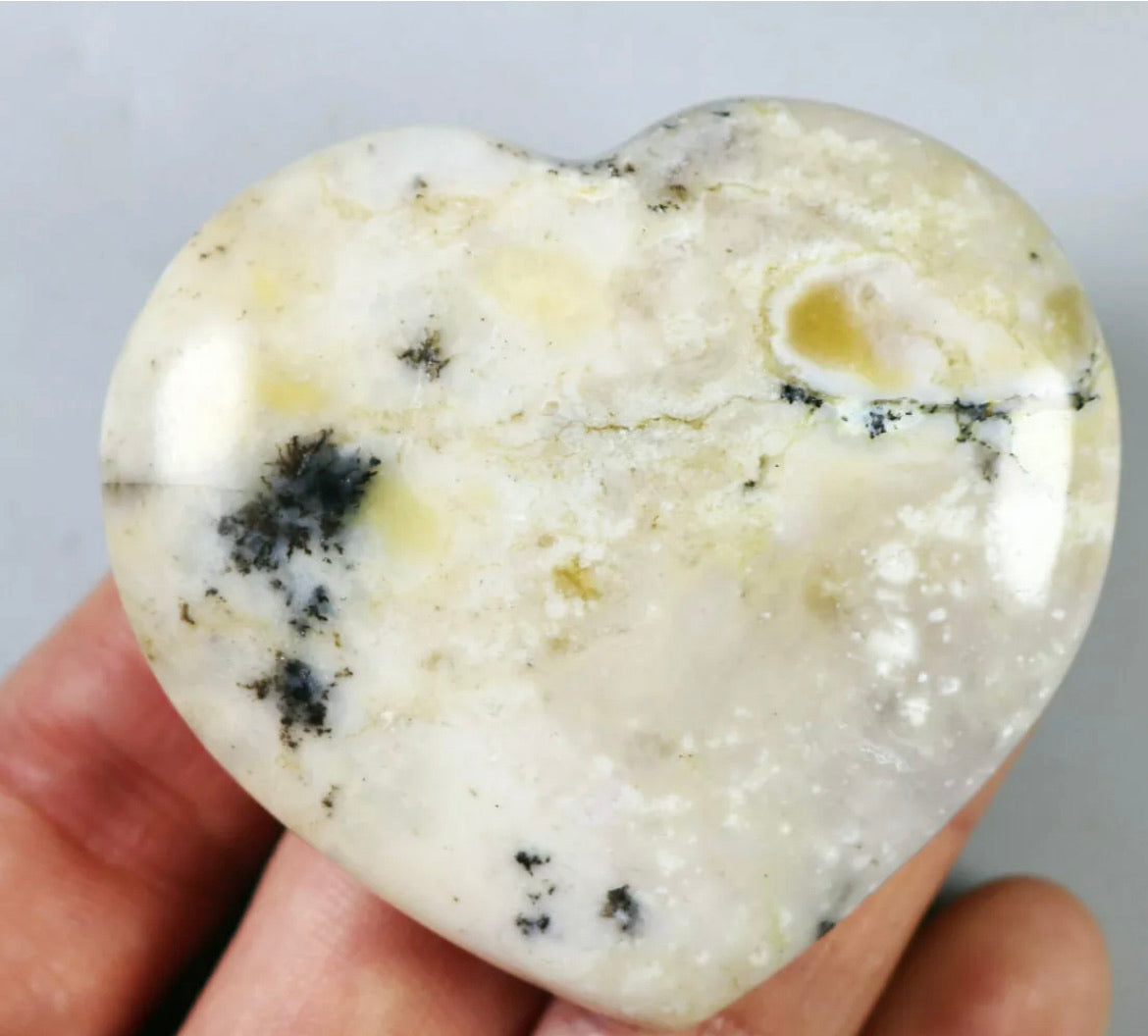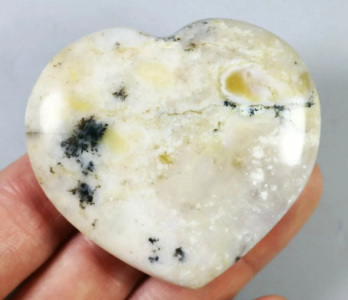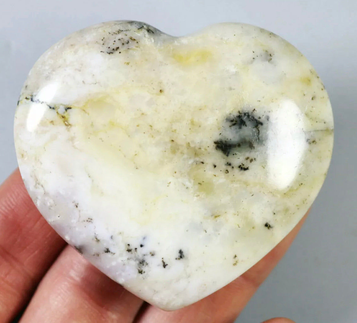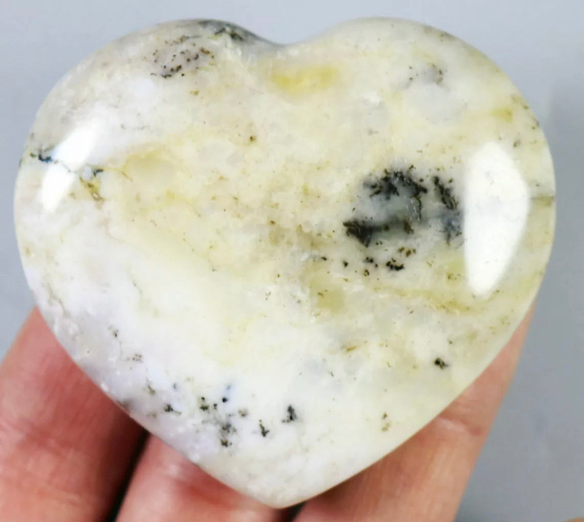 NATURAL Opal with aquatic plant QUARTZ CRYSTAL Polished Love Heart-Madagascar