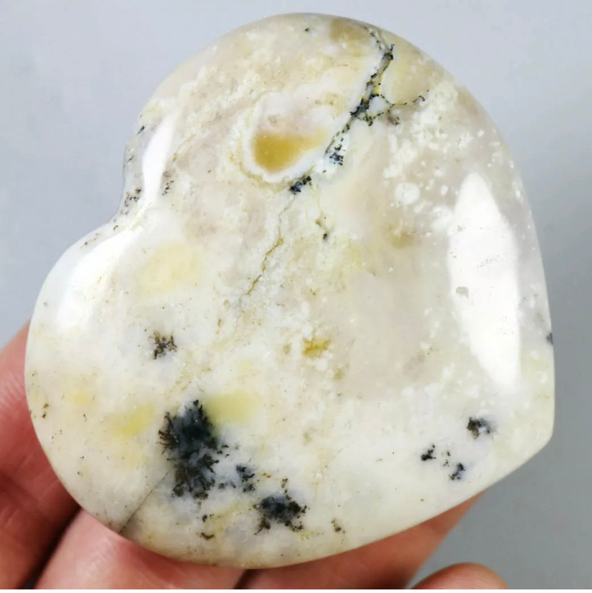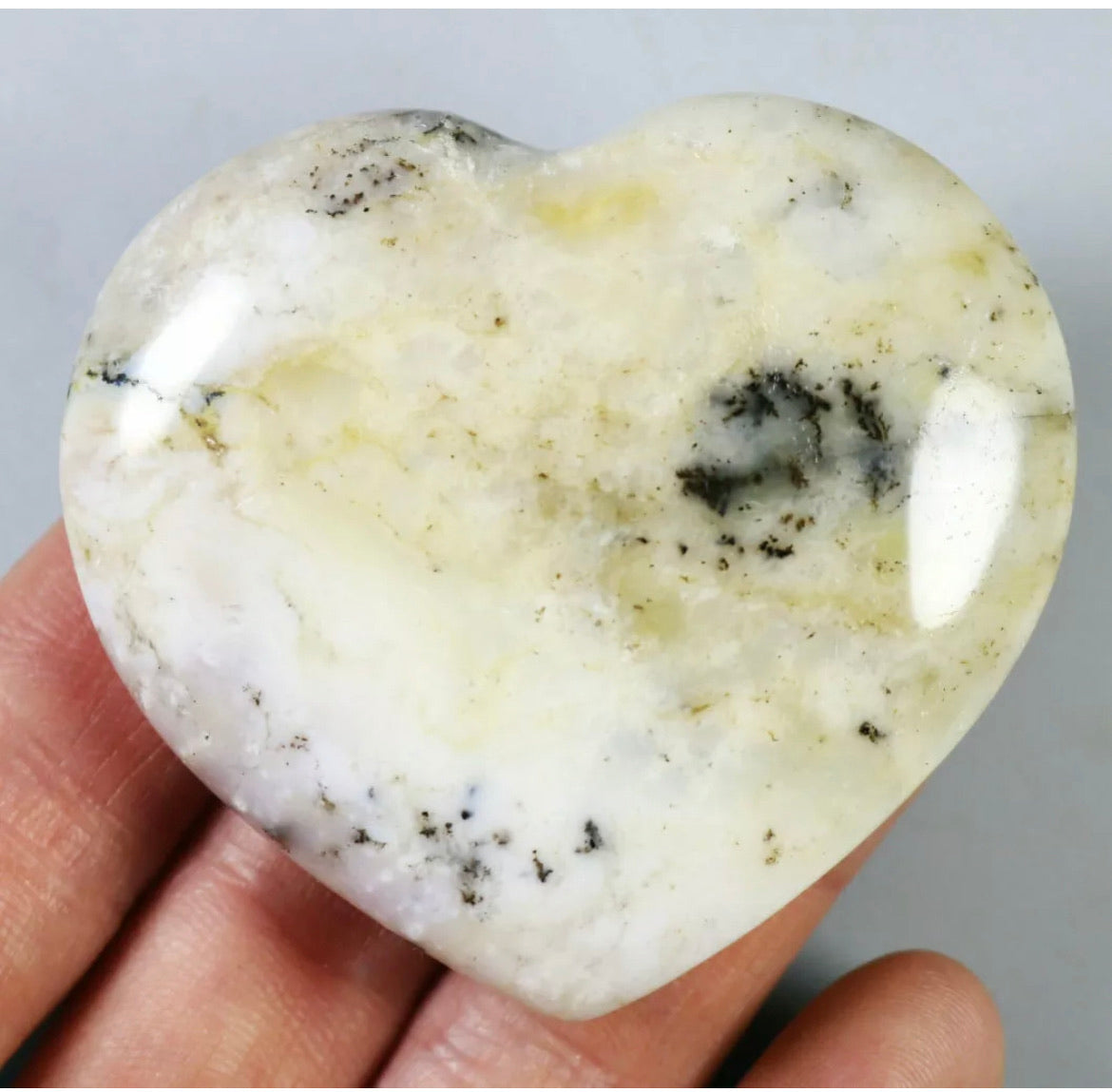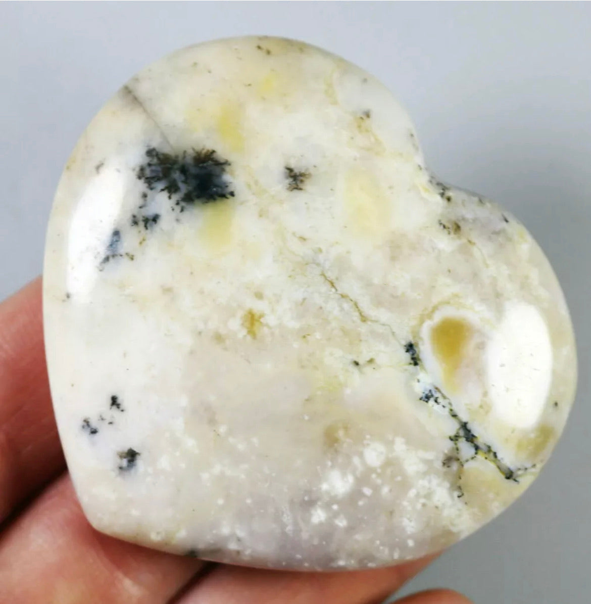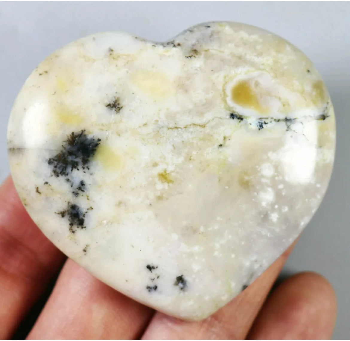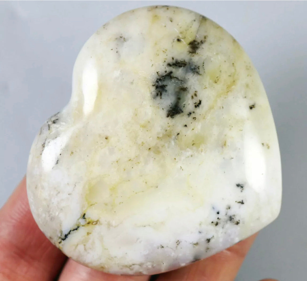 NATURAL Opal with aquatic plant QUARTZ CRYSTAL Polished Love Heart-Madagascar