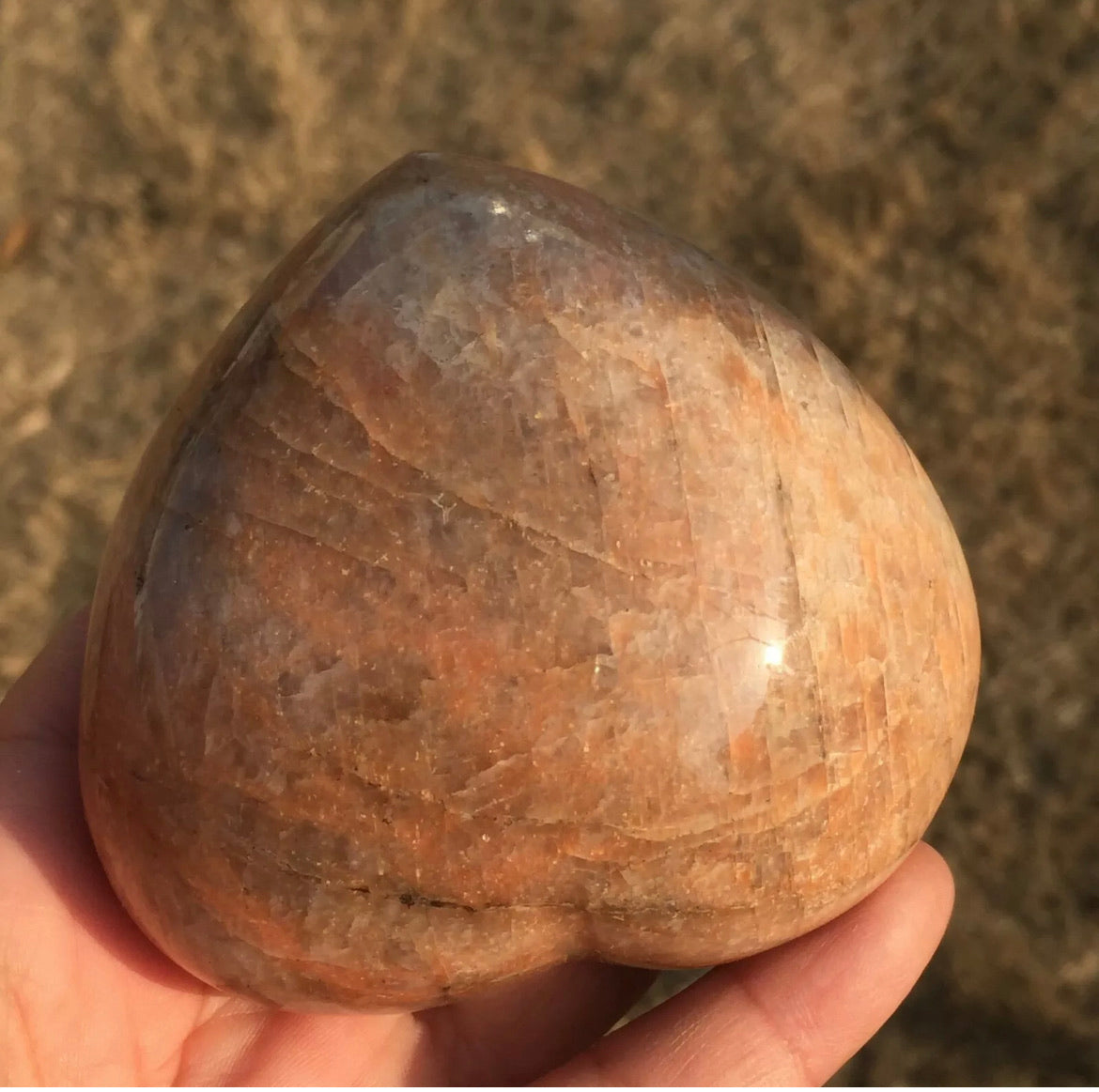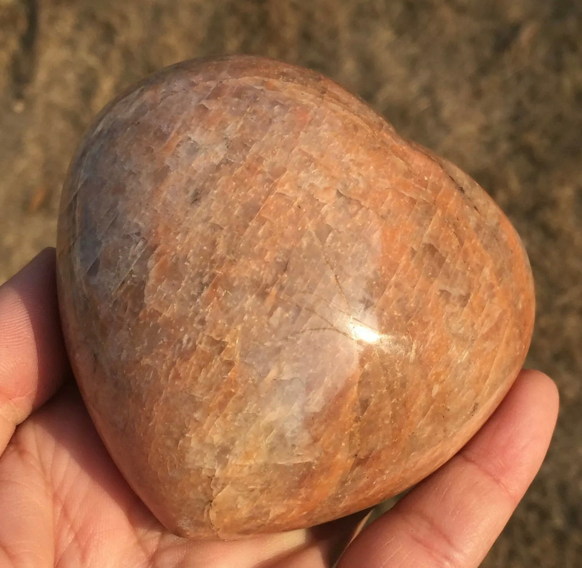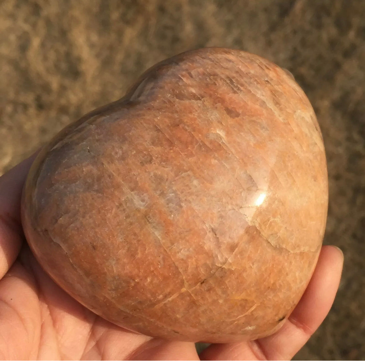 Natural Orange Moonstone Crystal Heart Shaped Stones Healing Specimen Decor Gift