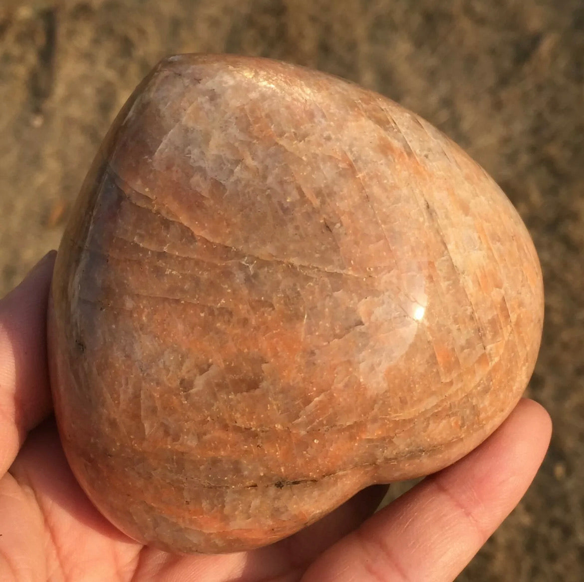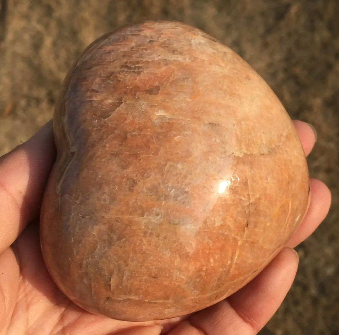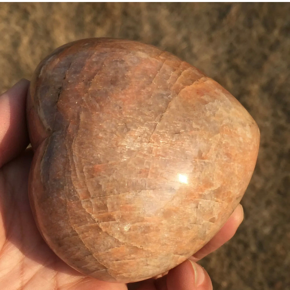 Natural Orange Moonstone Crystal Heart Shaped Stones Healing Specimen Decor Gift