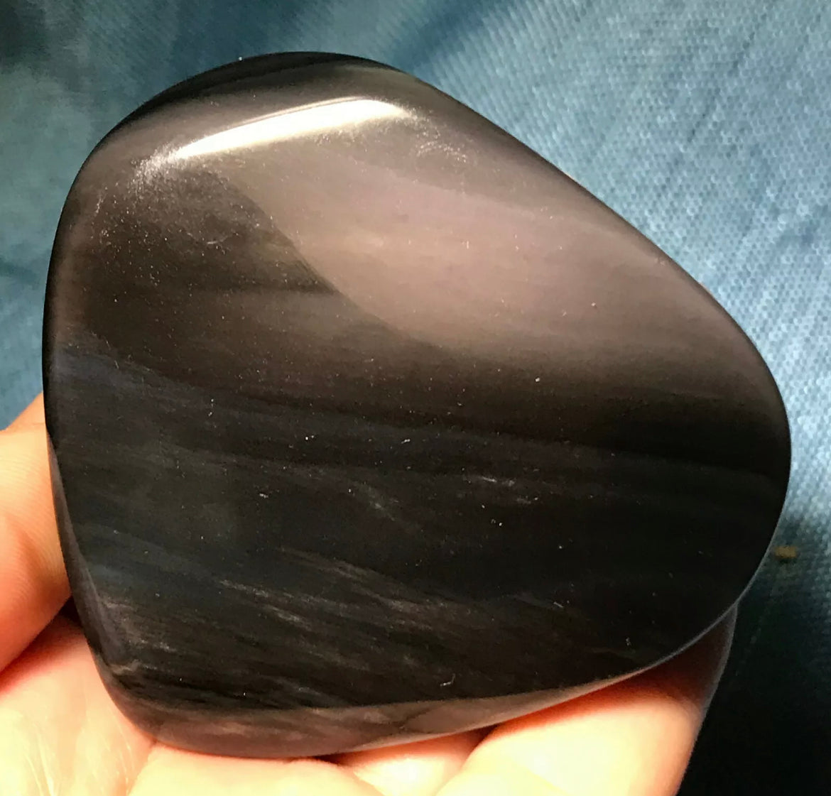 Silver Sheen Obsidian is a form of glassy silica rich volcanic rock. It is characteristically a dark brown/black Obsidian filled with bright “sparkly” silver-colored inclusions that produce a chatoyancy when viewed in strong light.