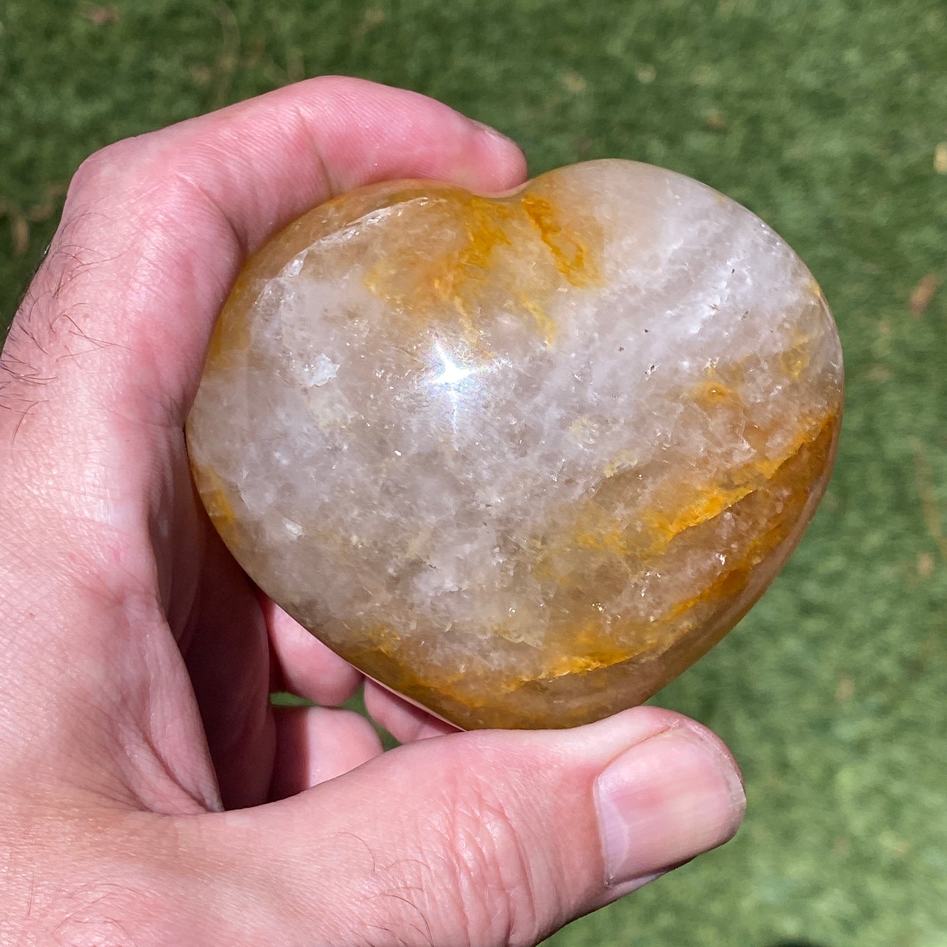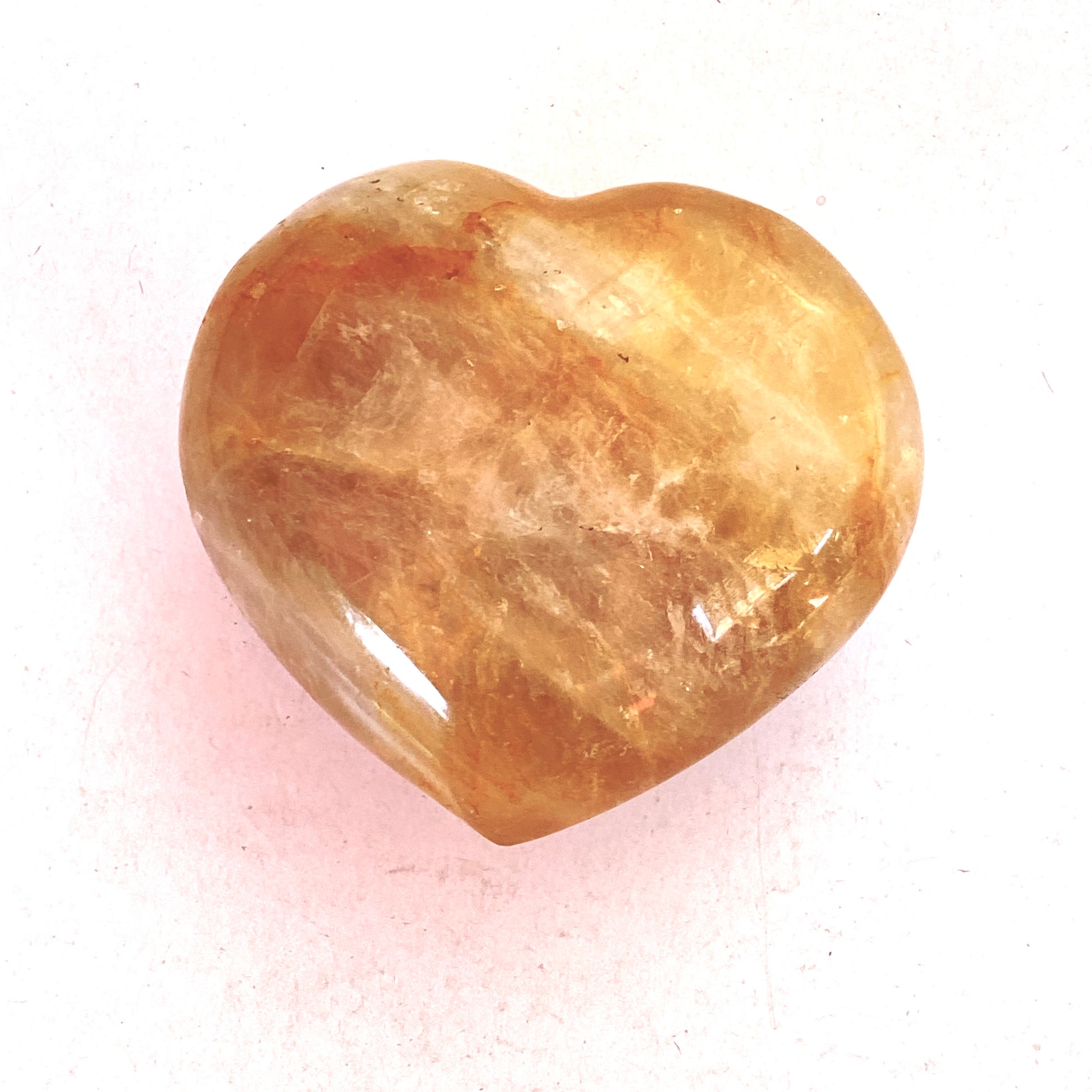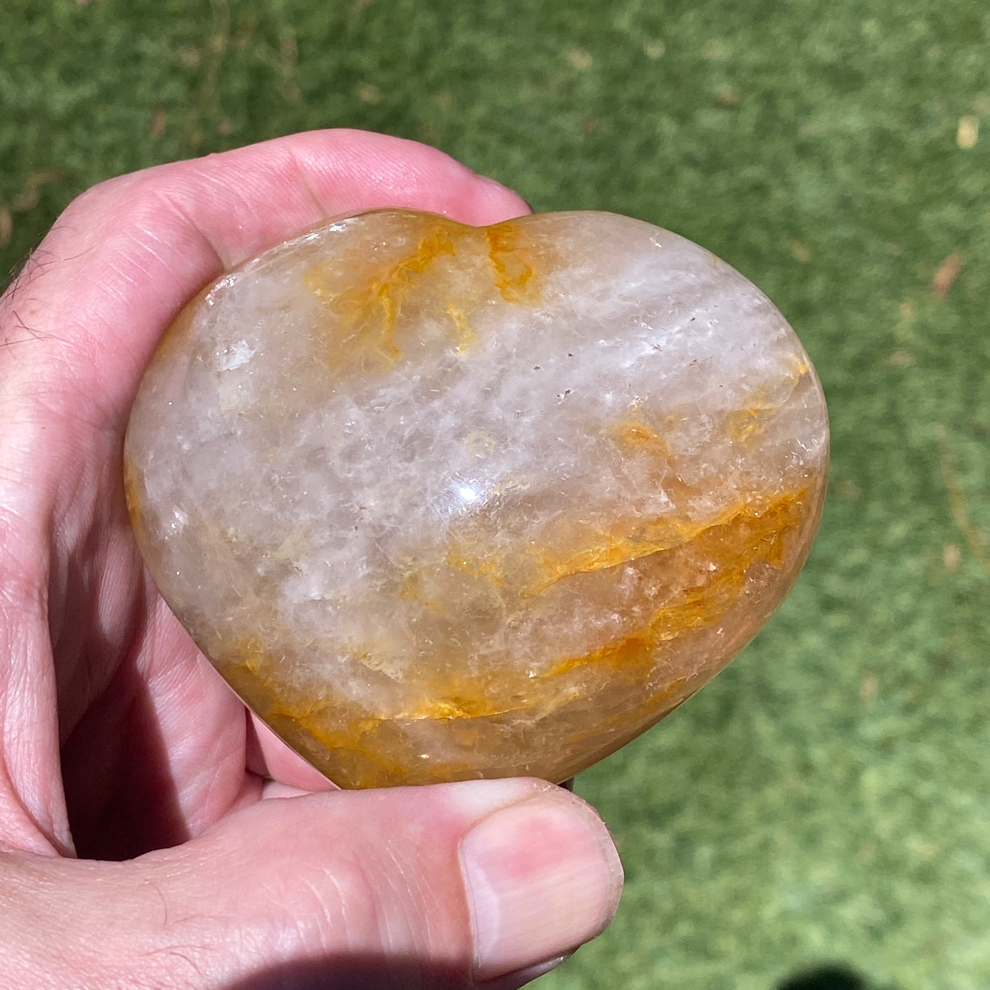 Natural Yellow FIRE QUARTZ Hematoid Polished Heart Stone