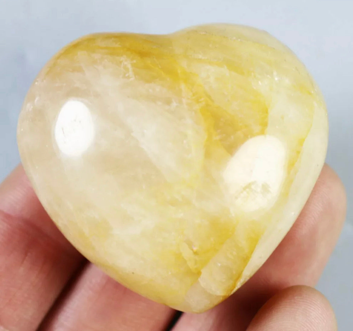 NATURAL Yellow PHANTOM MULTI-INCLUSIONS Rainbow CRYSTAL Heart Palm Stone