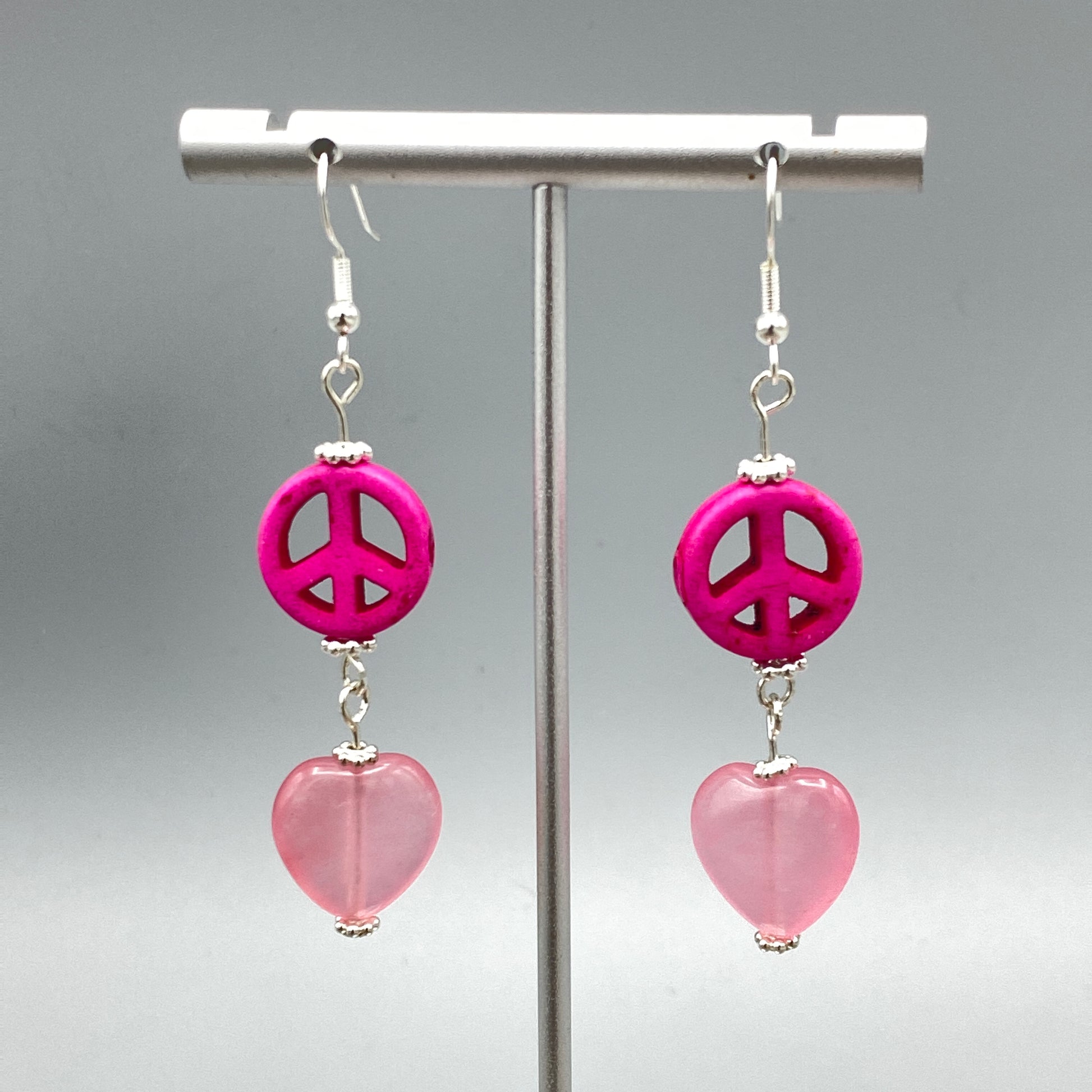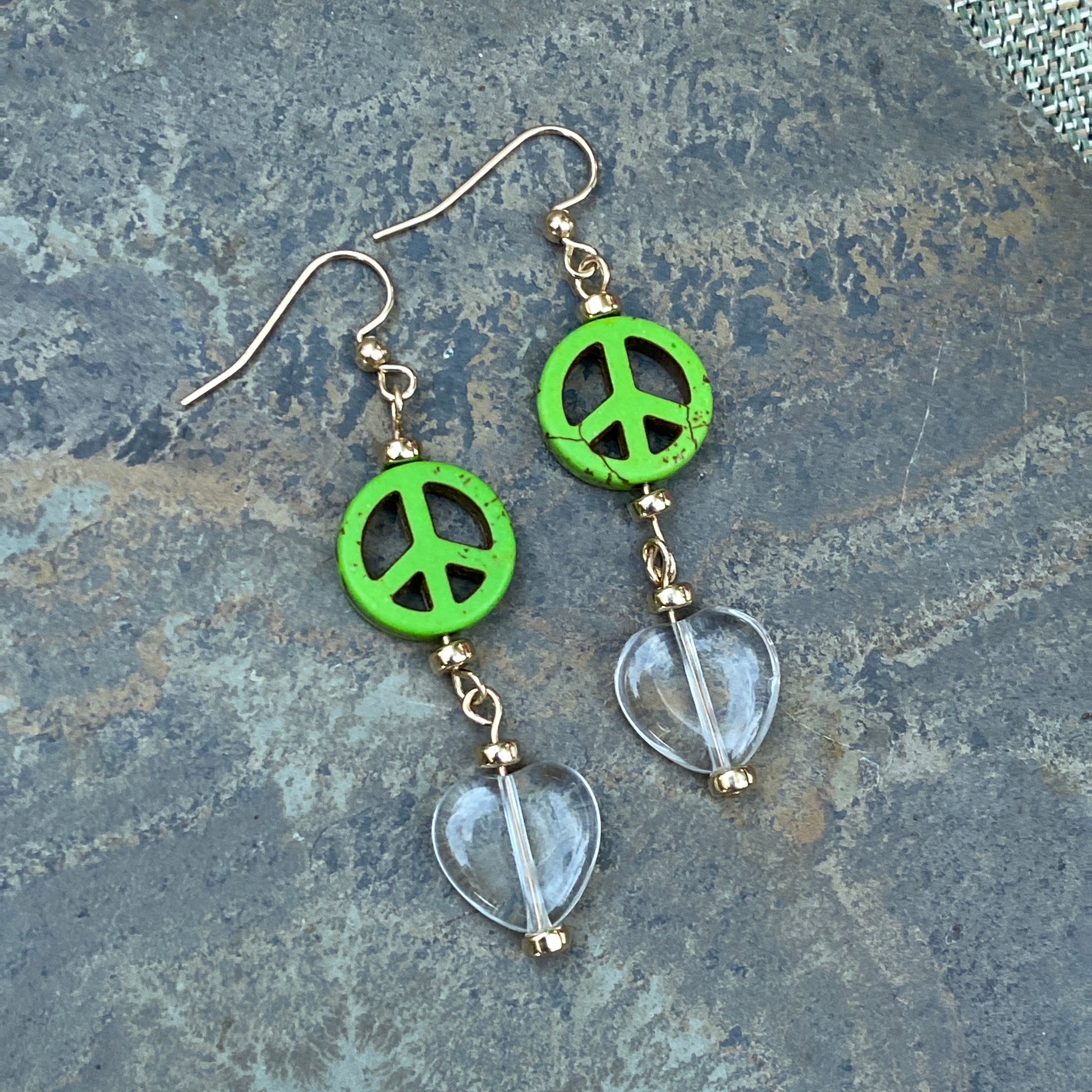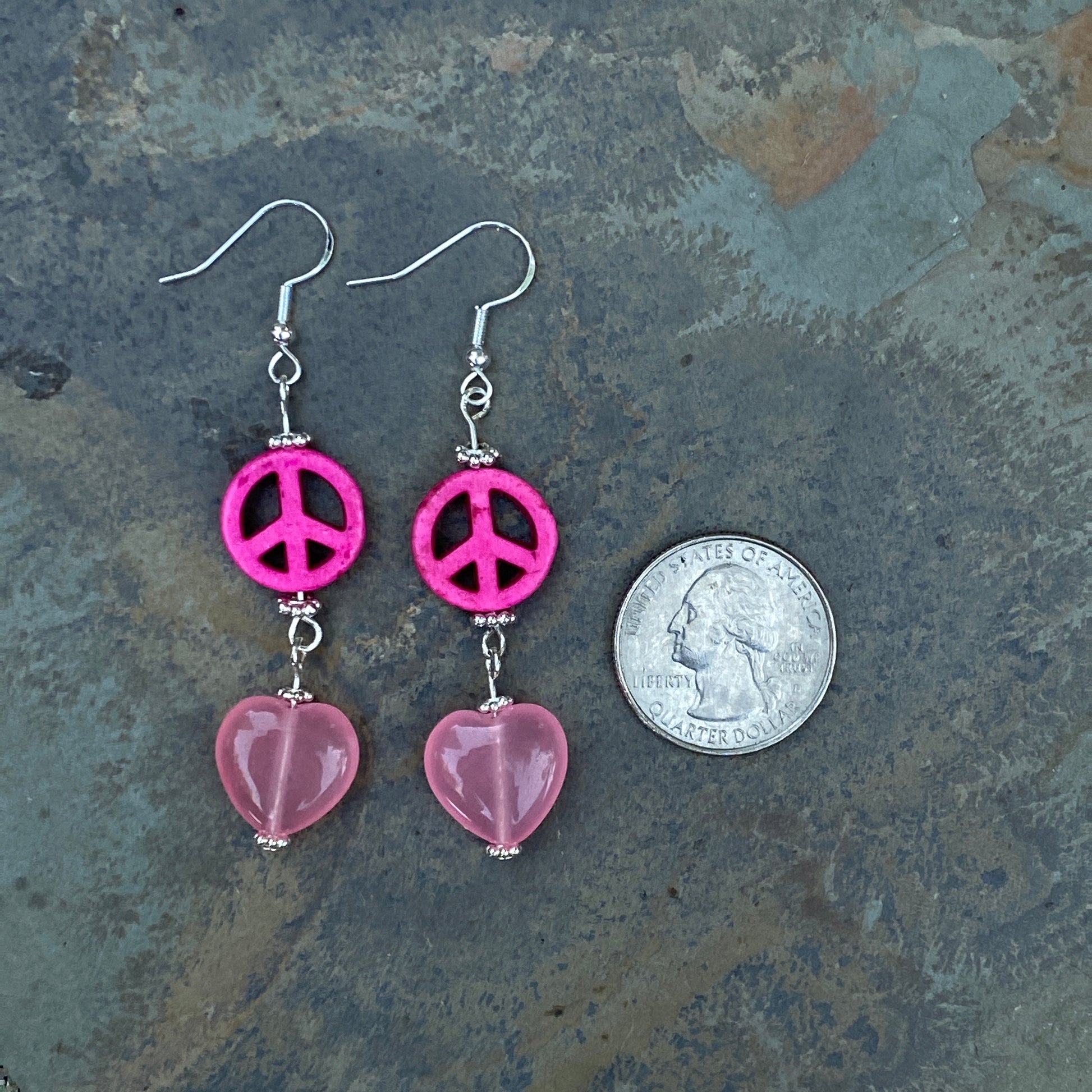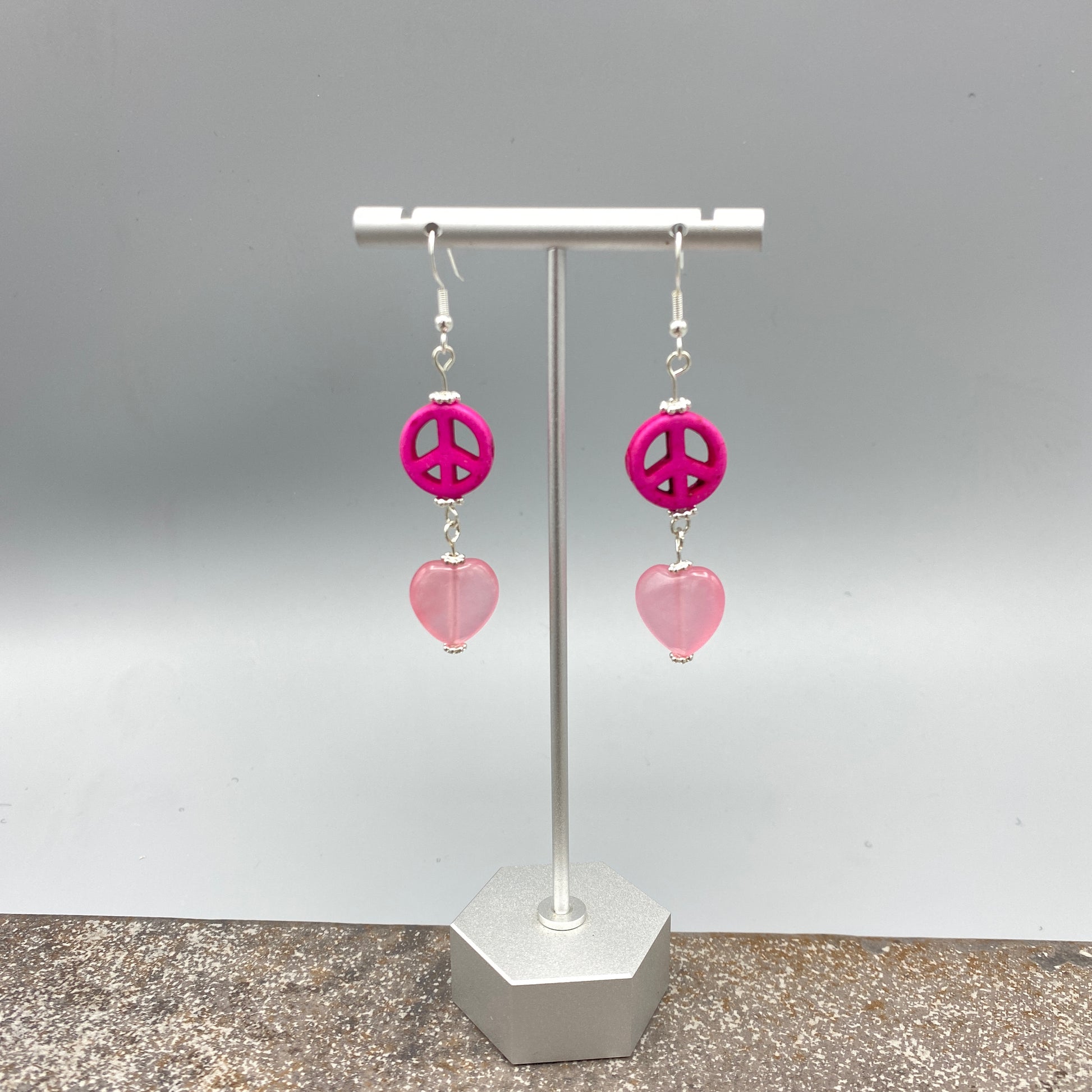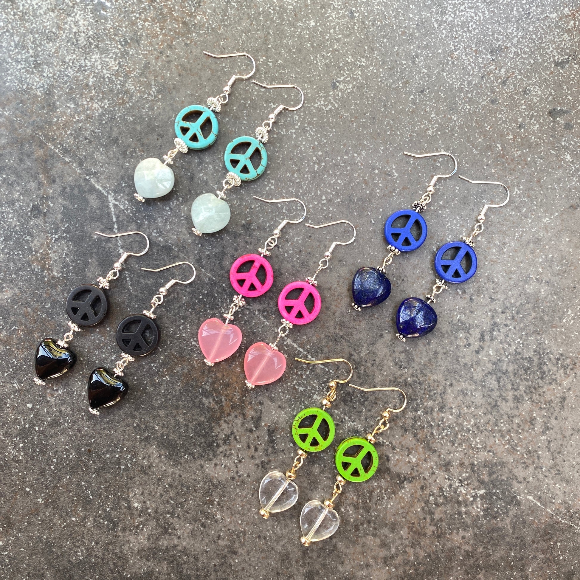 Peace Signs and Hearts drop earrings, 5 to choose from!