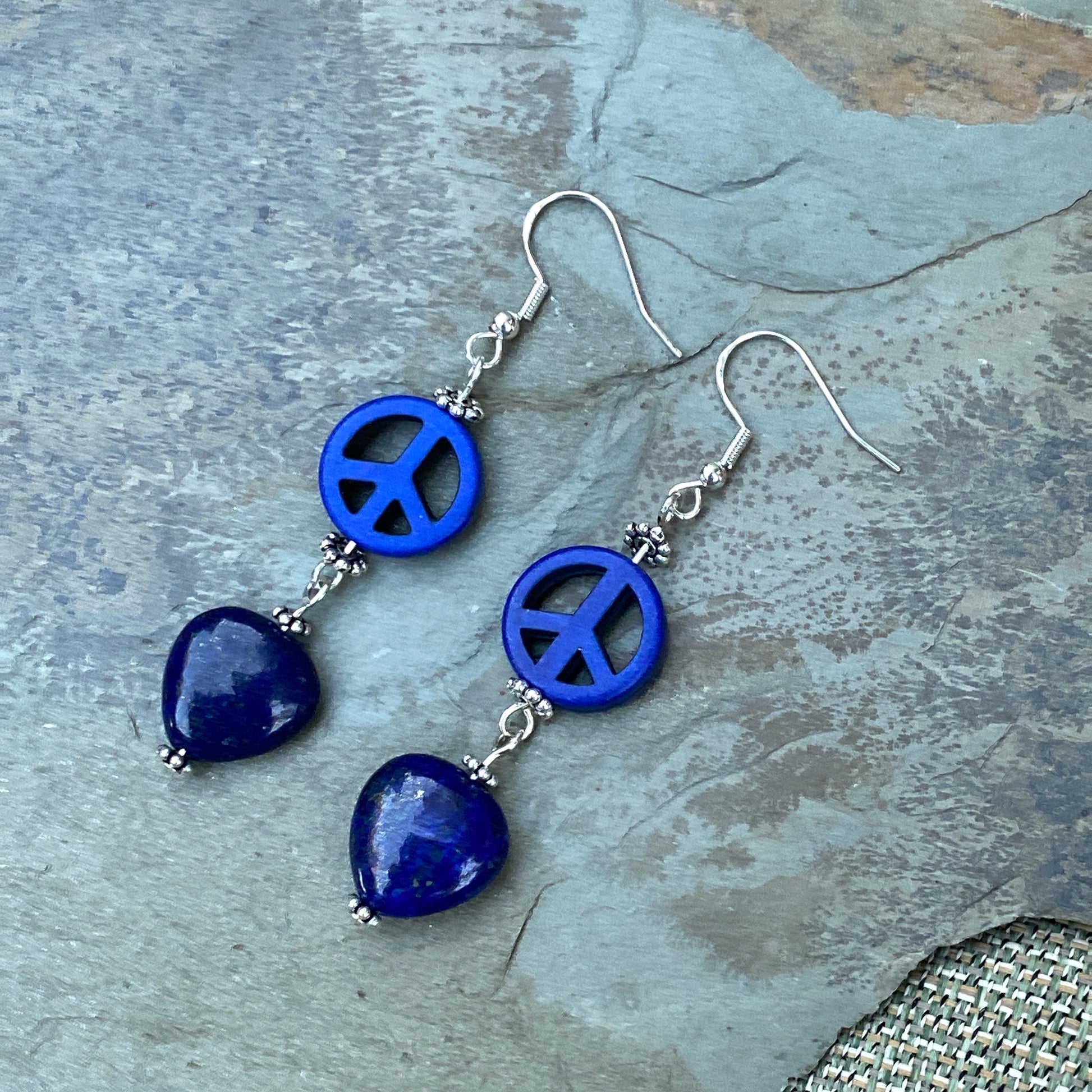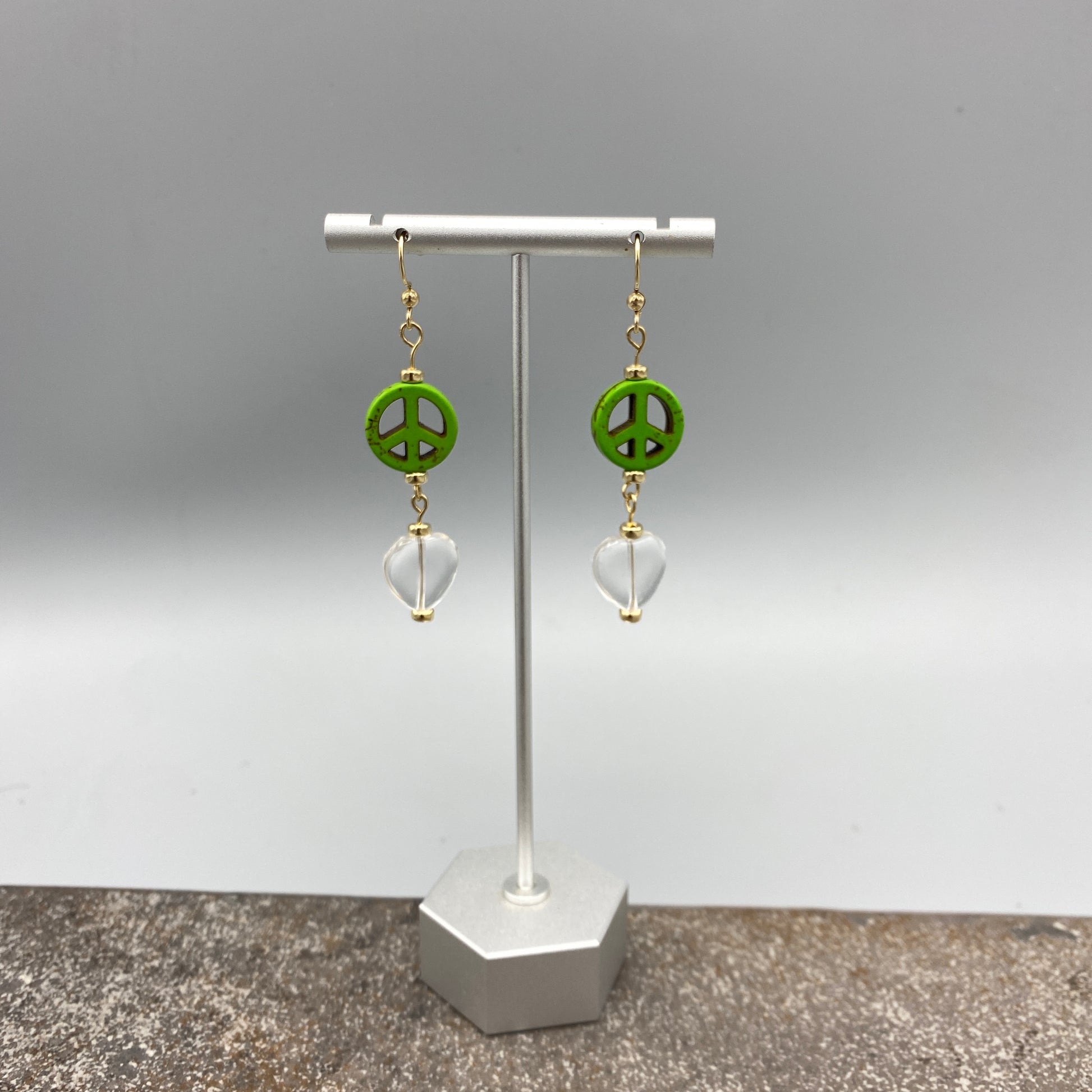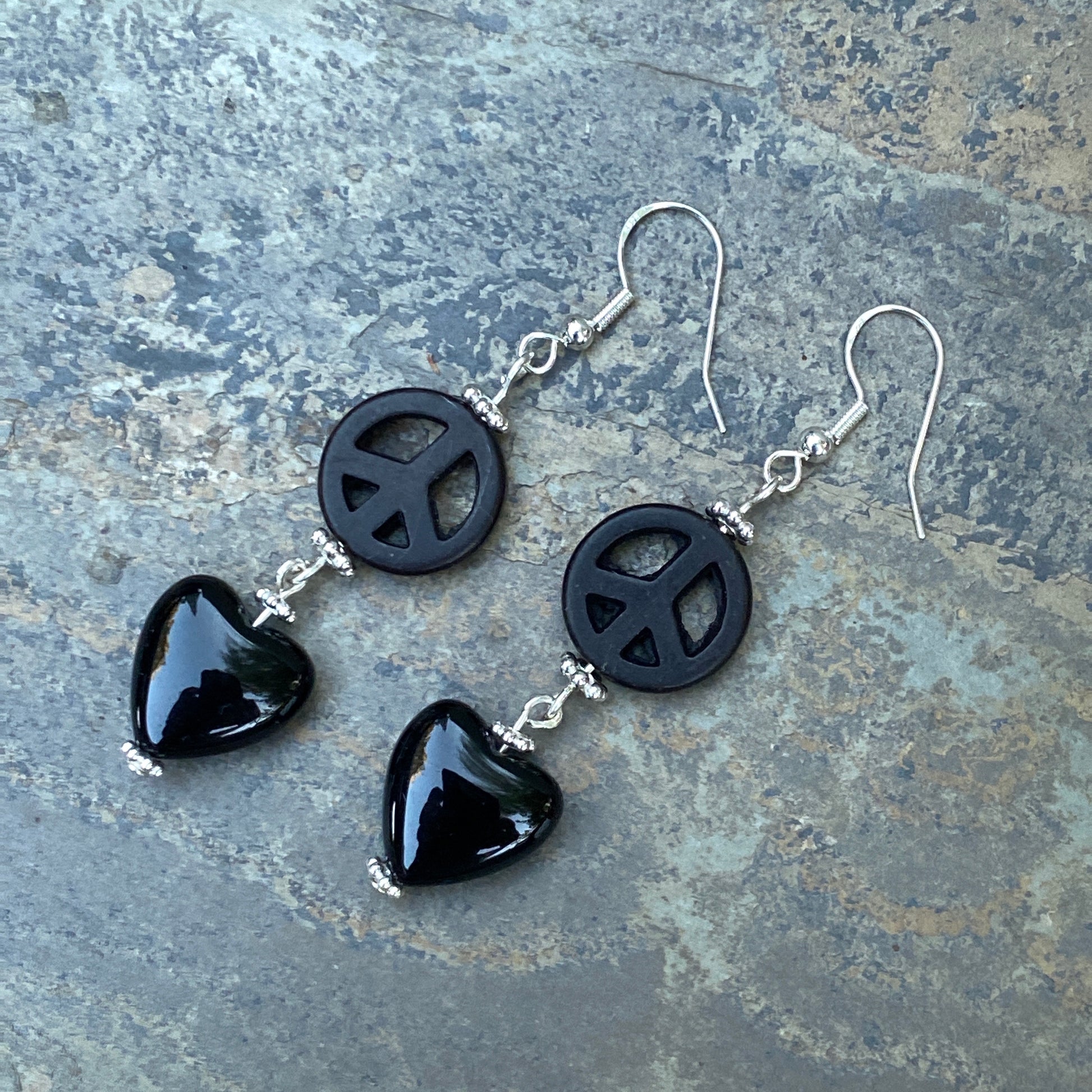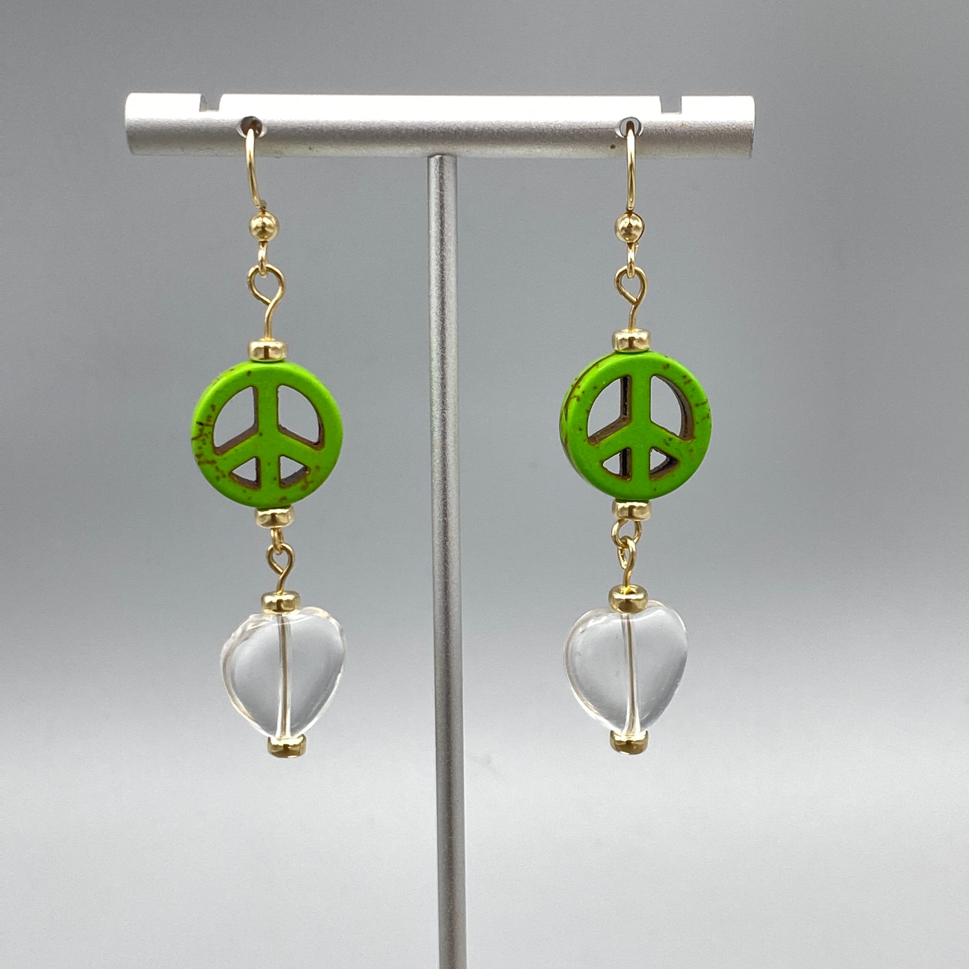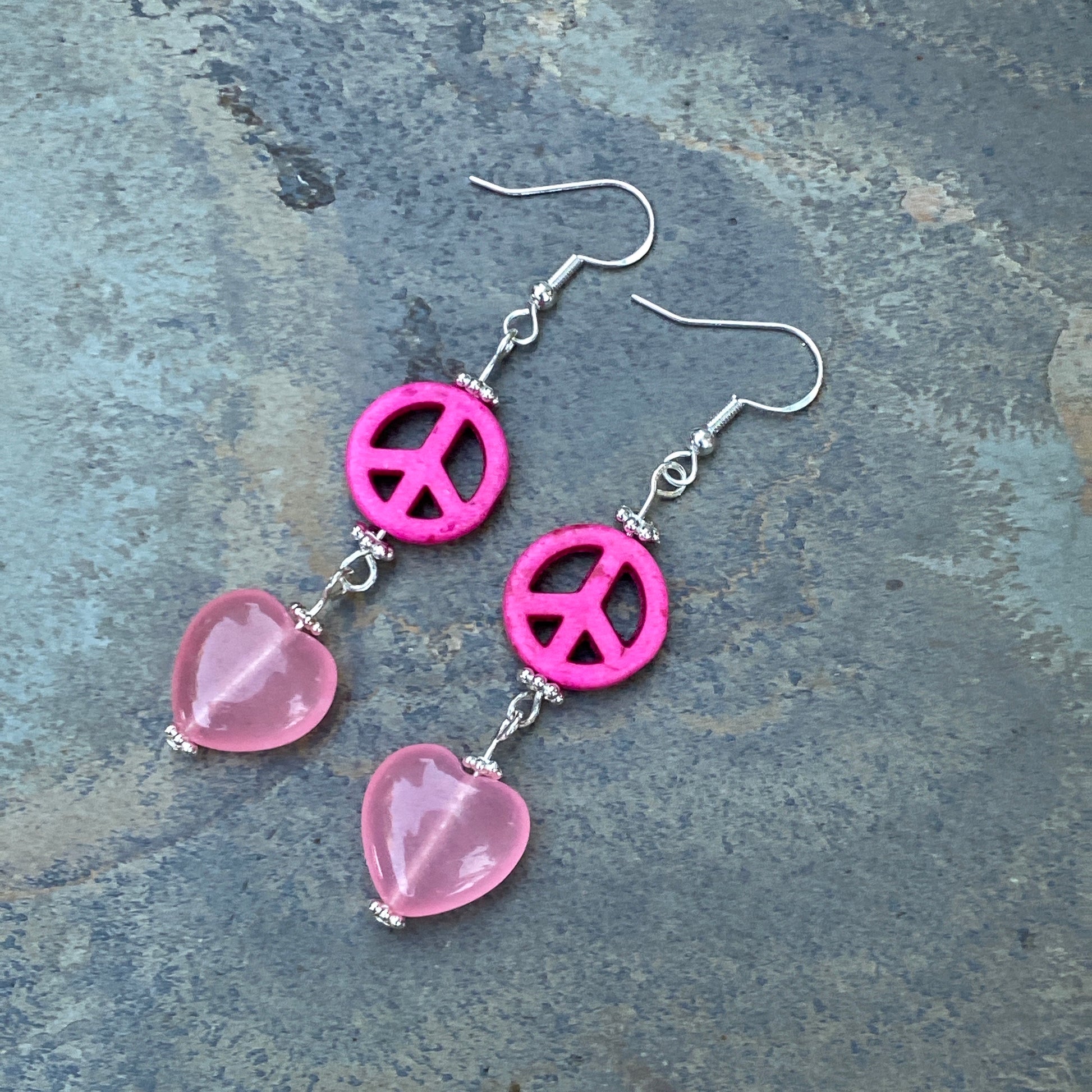 Peace Signs and Hearts drop earrings, 5 to choose from!