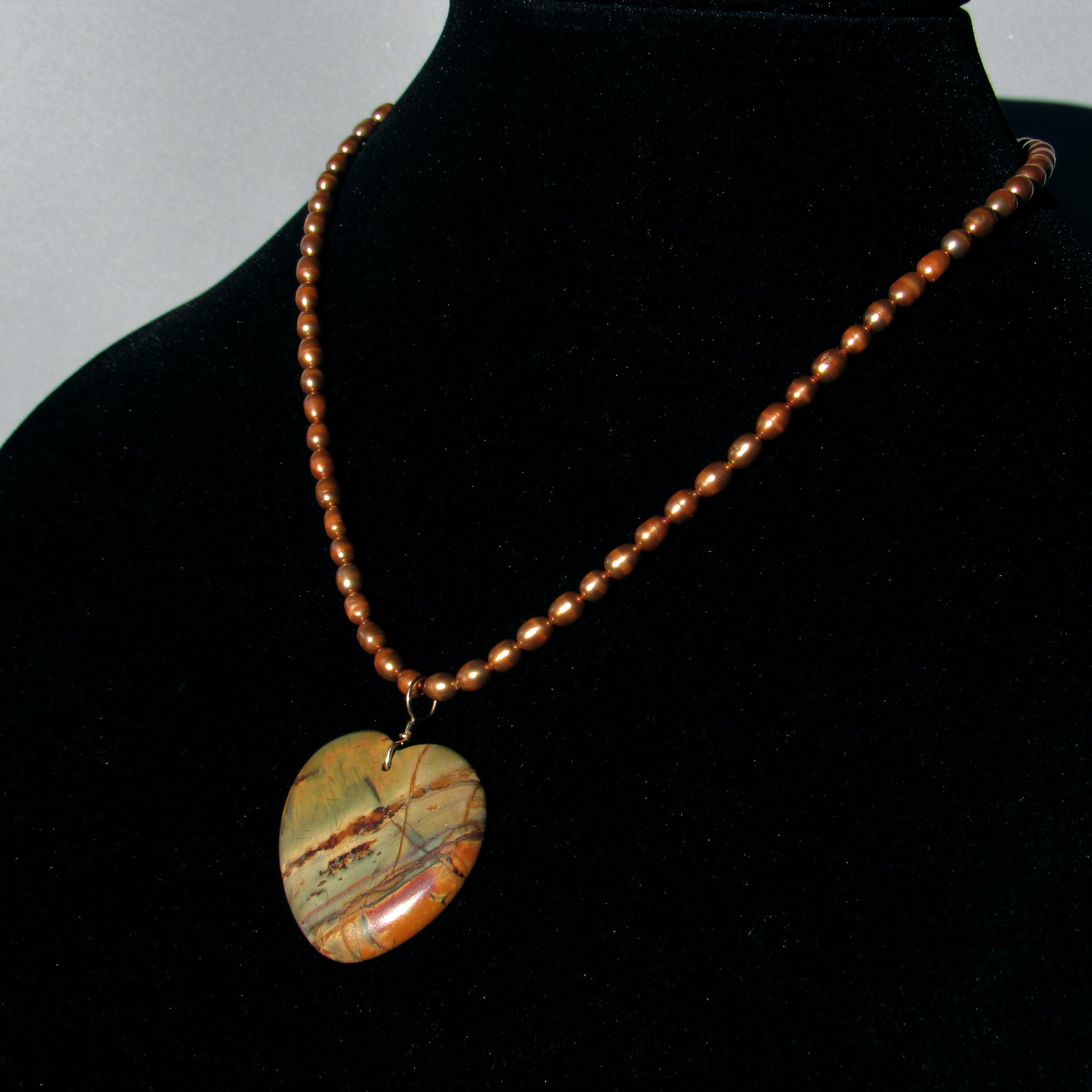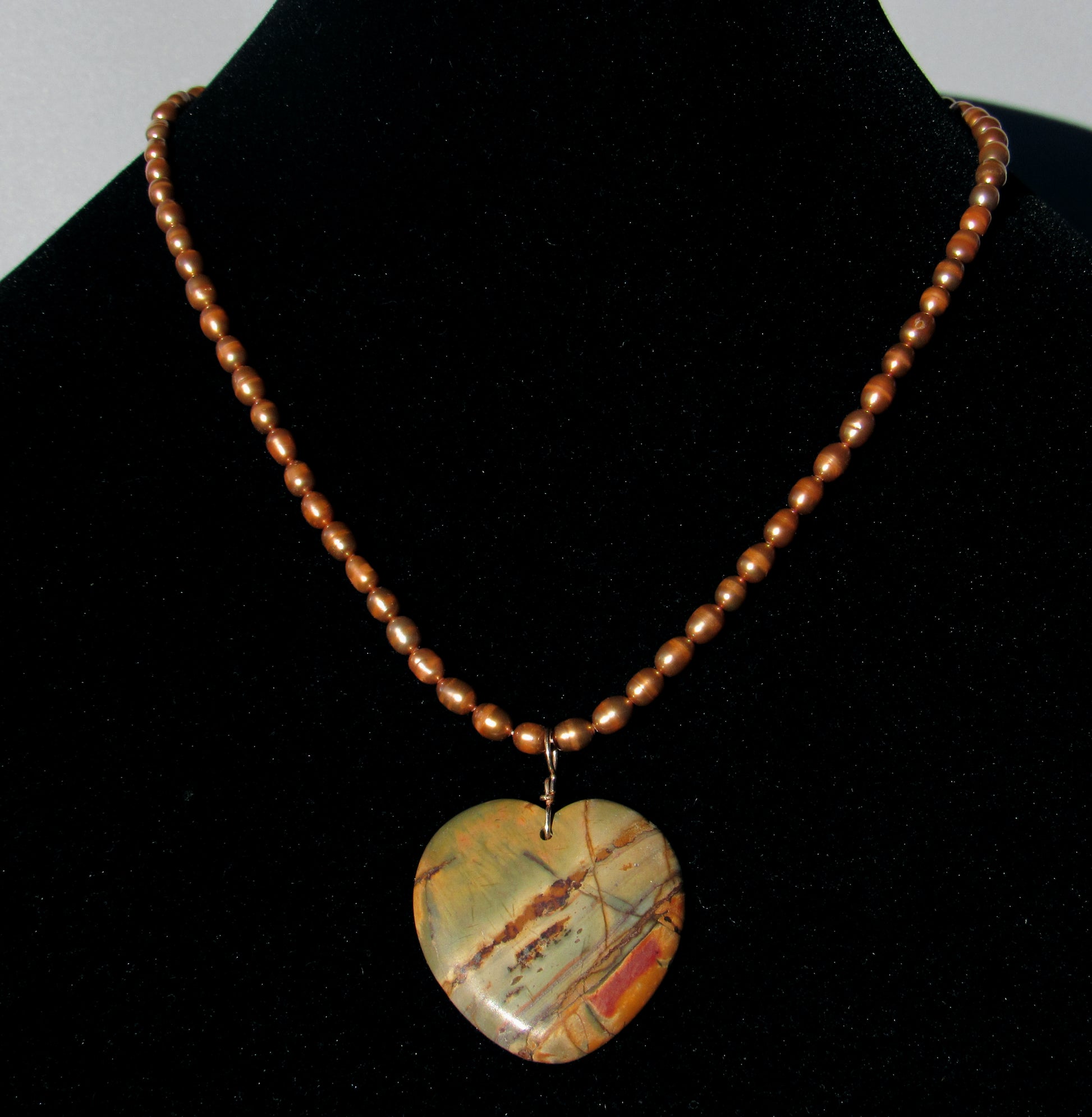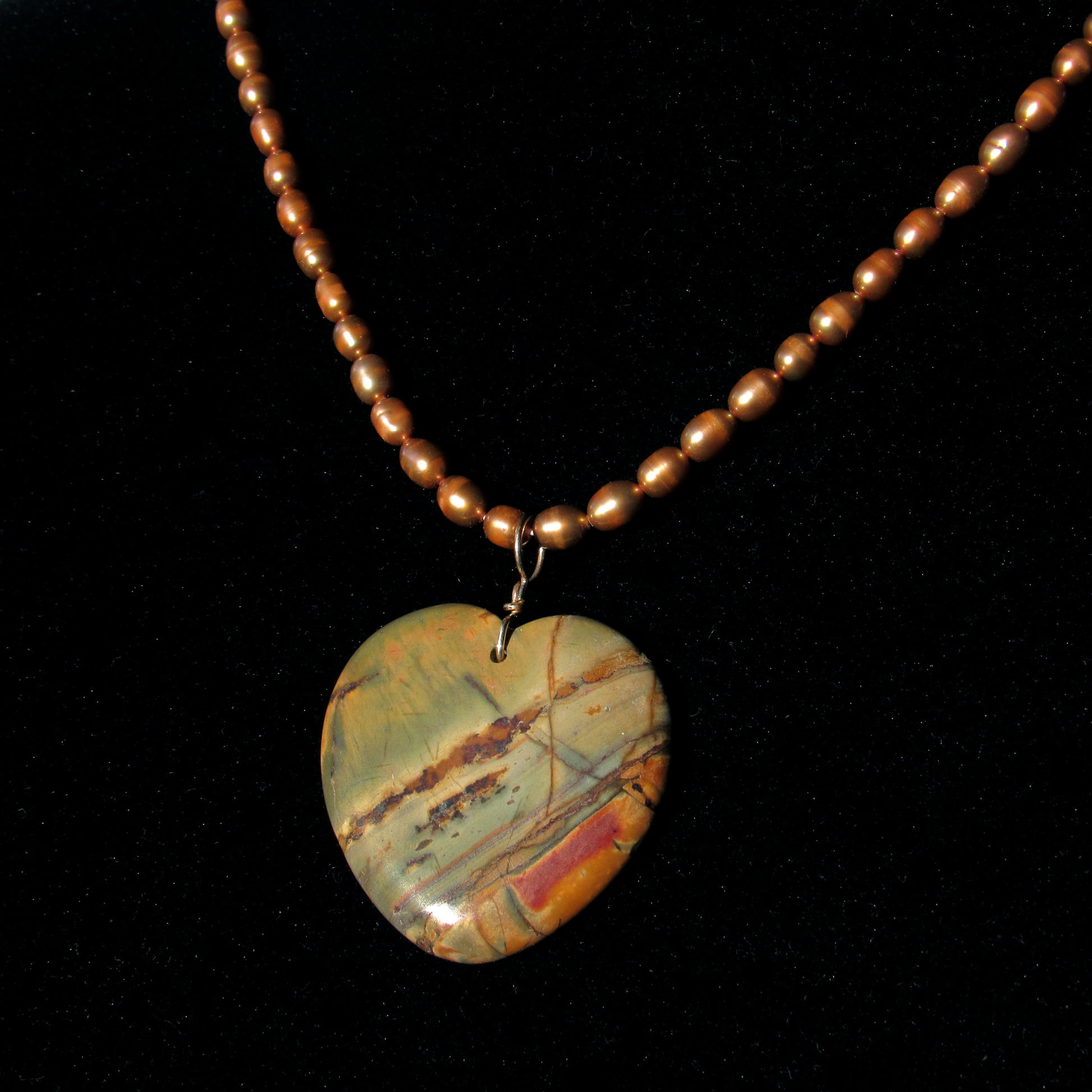 Picasso Jasper gemstone Heart on genuine Pearls necklace