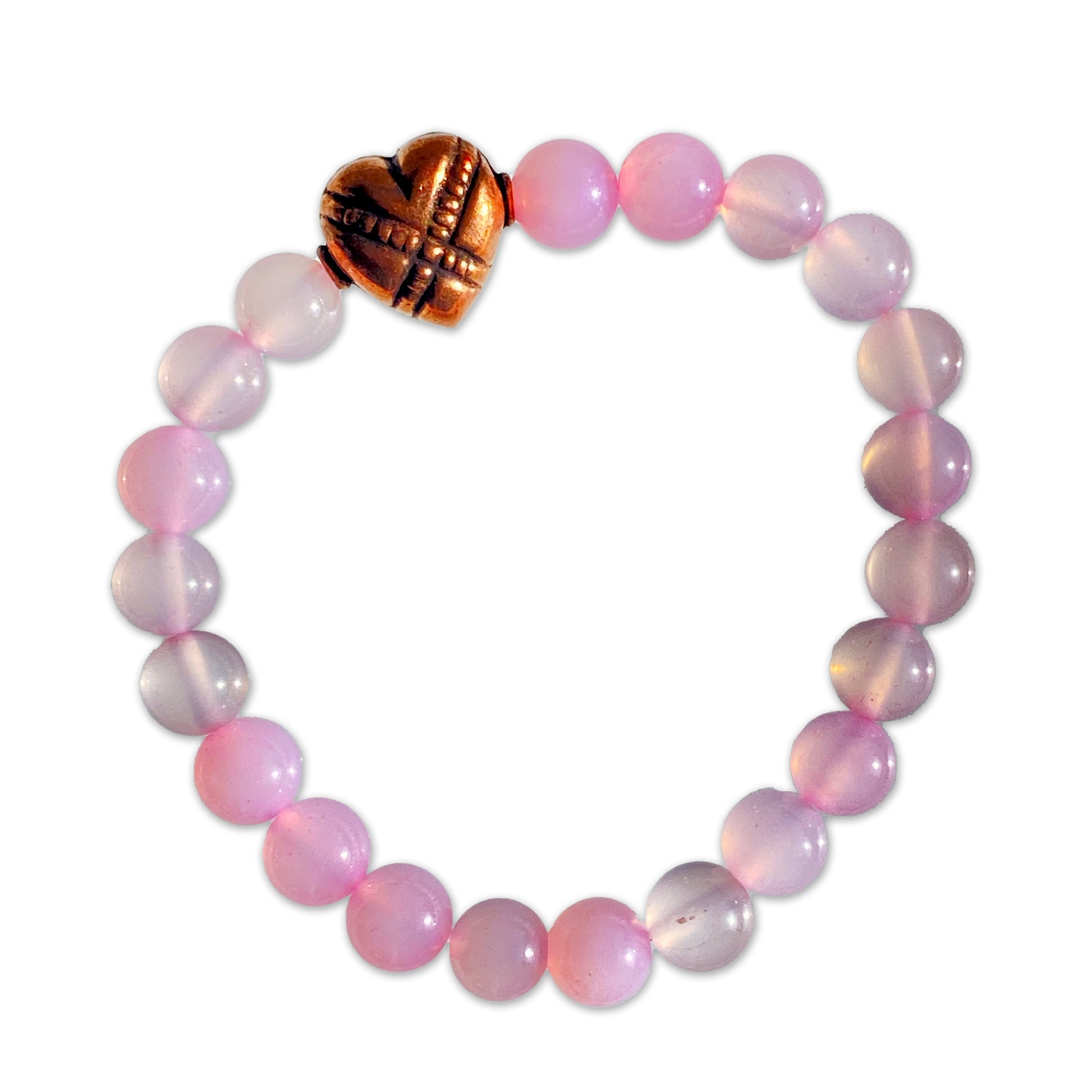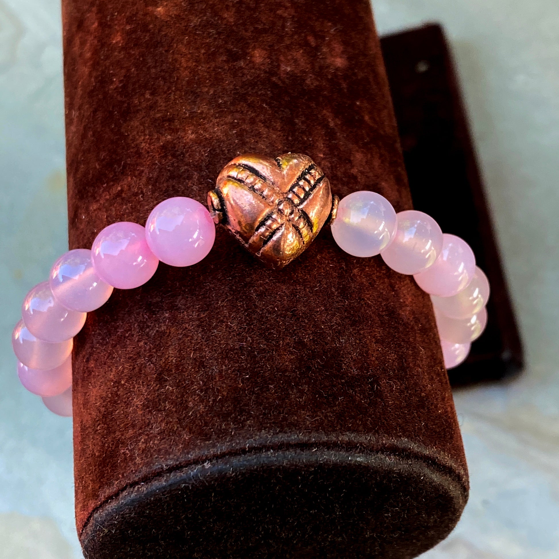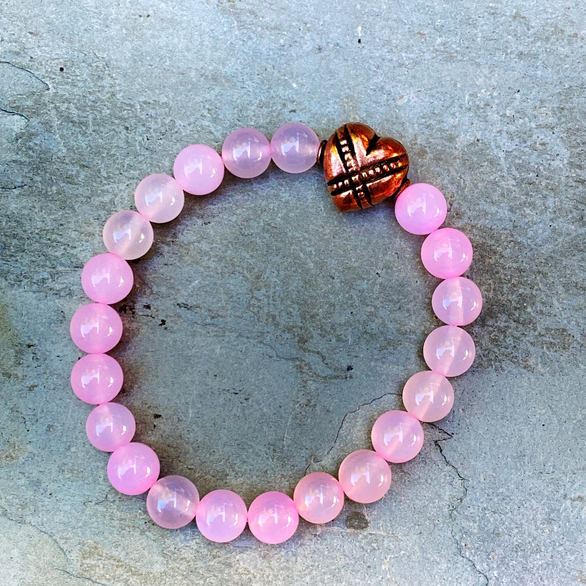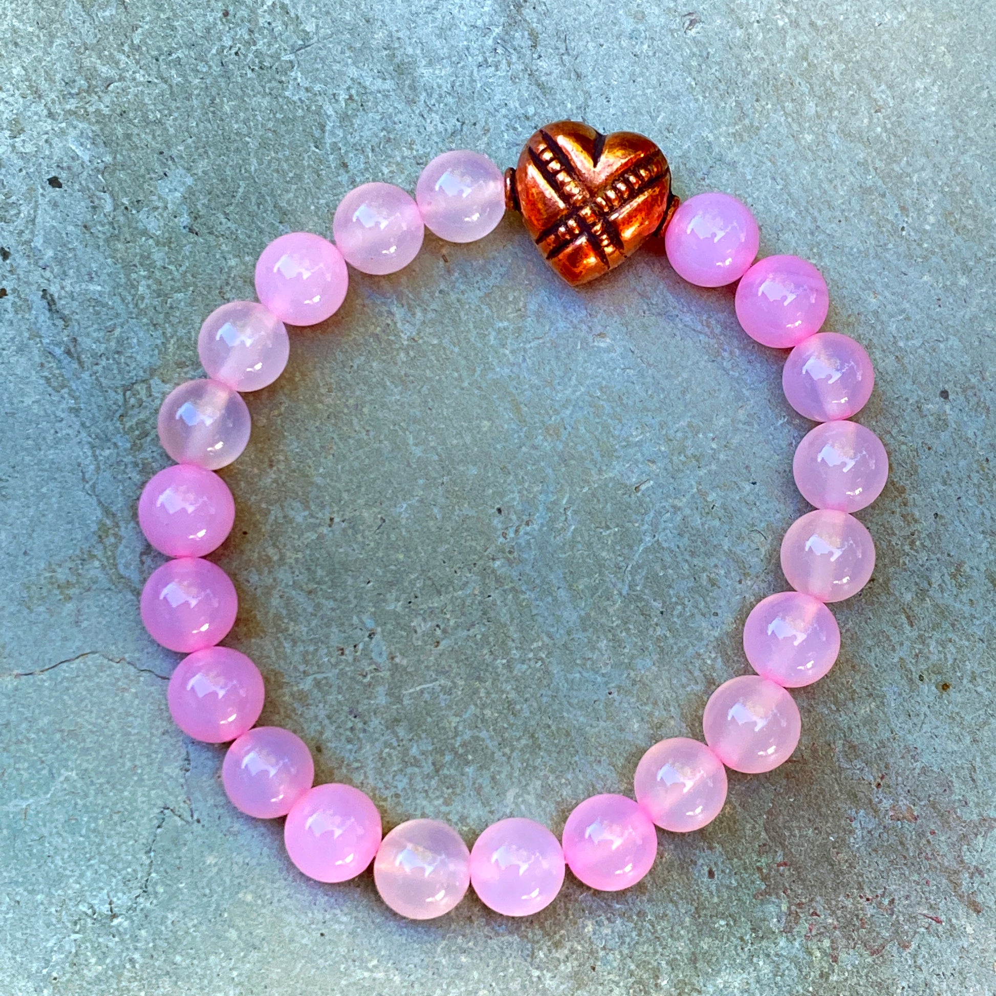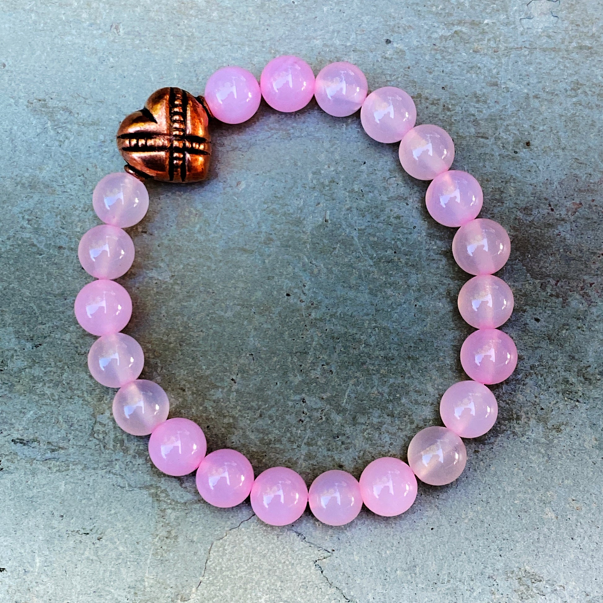 Pink agate and copper heart bracelet