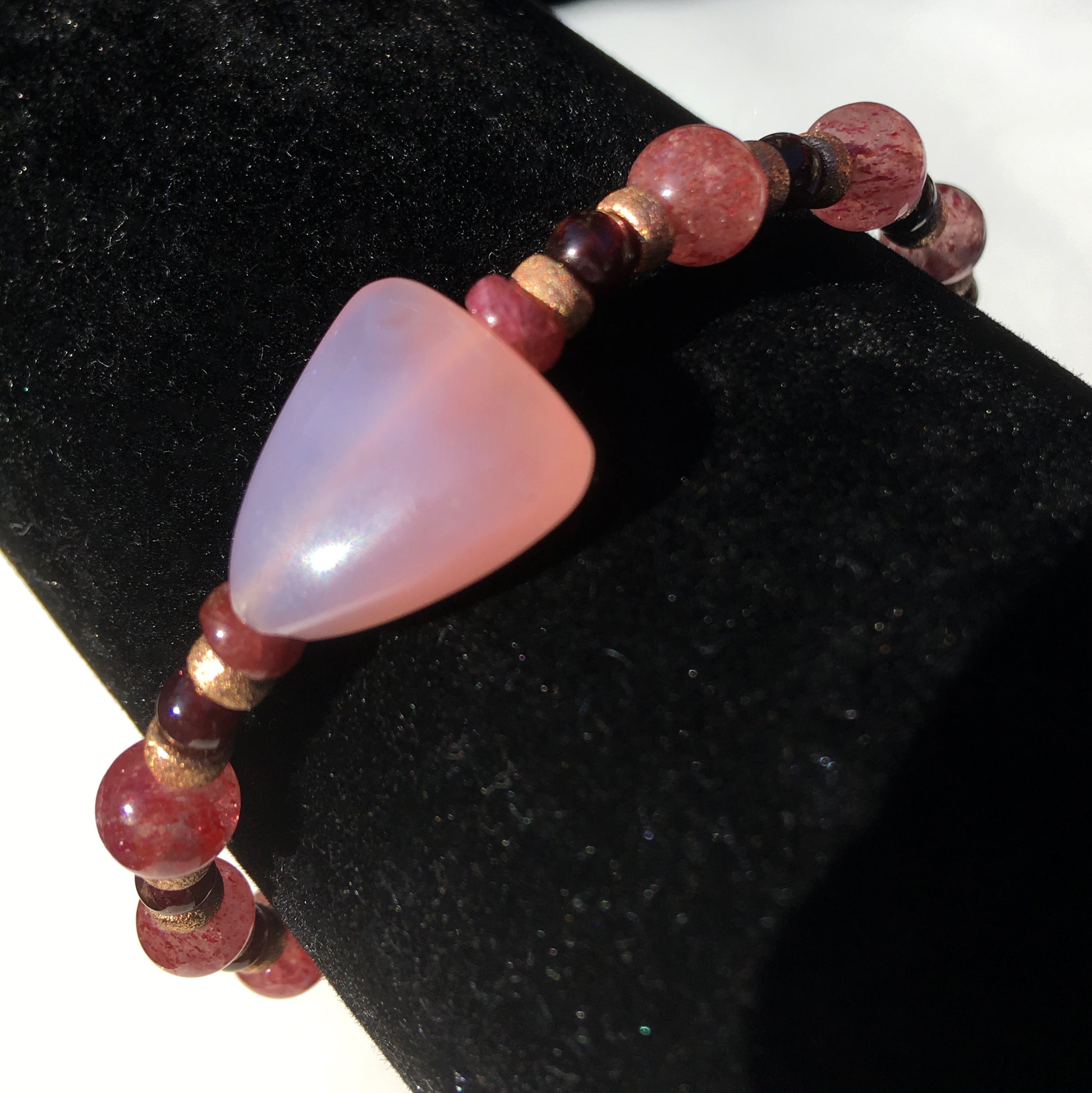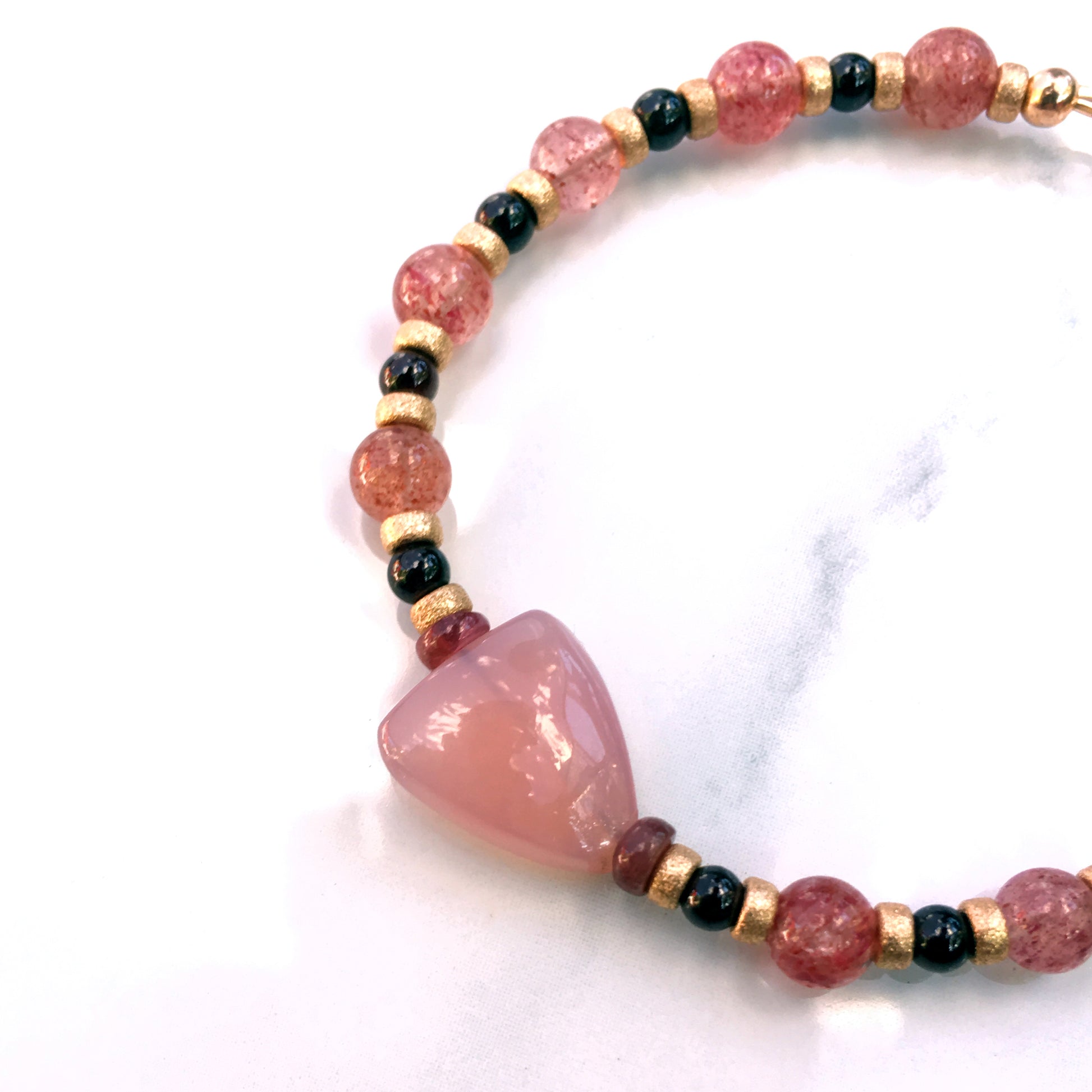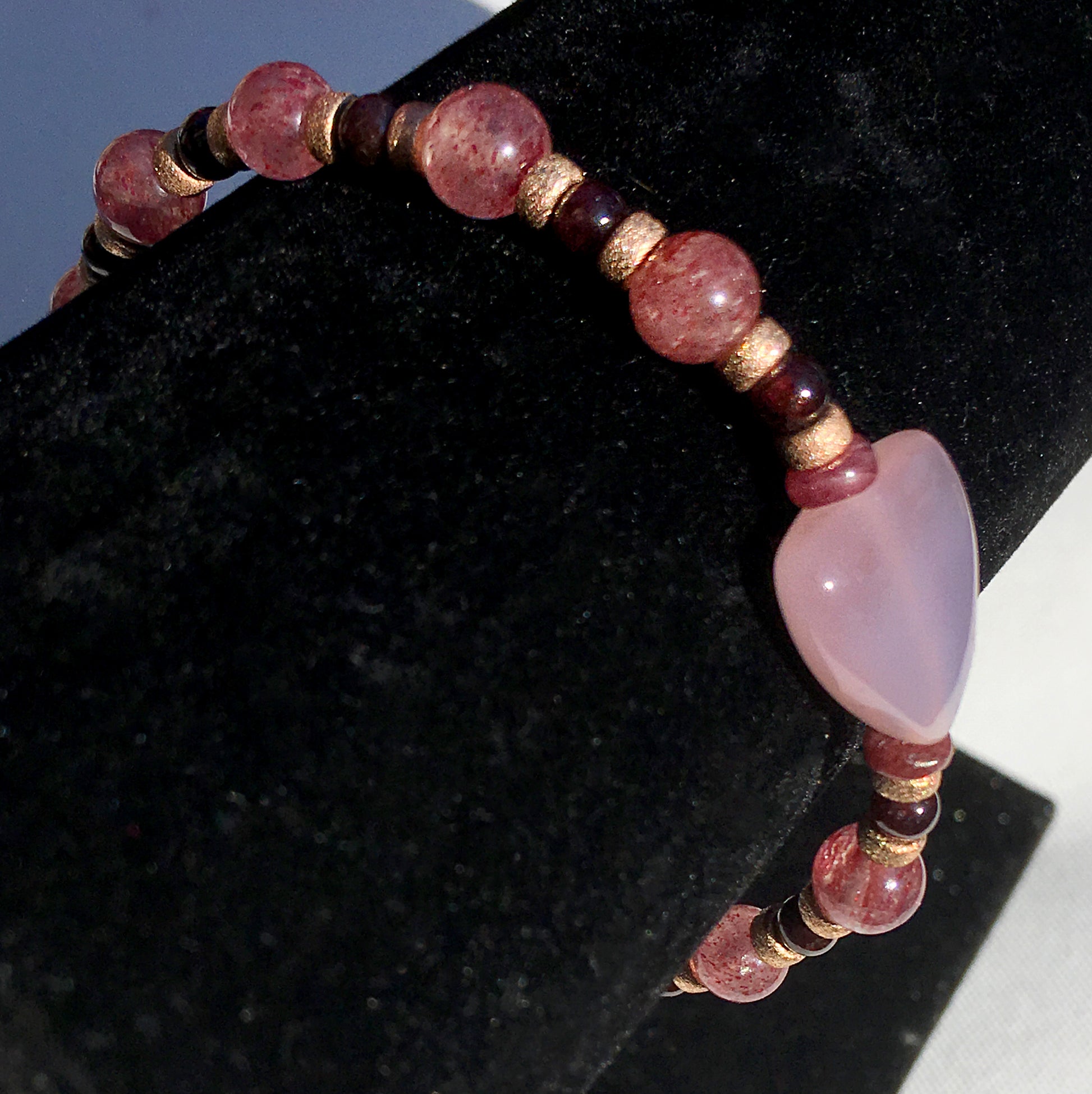 Pink Chalcedony heart, natural Cherry Quartz Gemstone bracelet