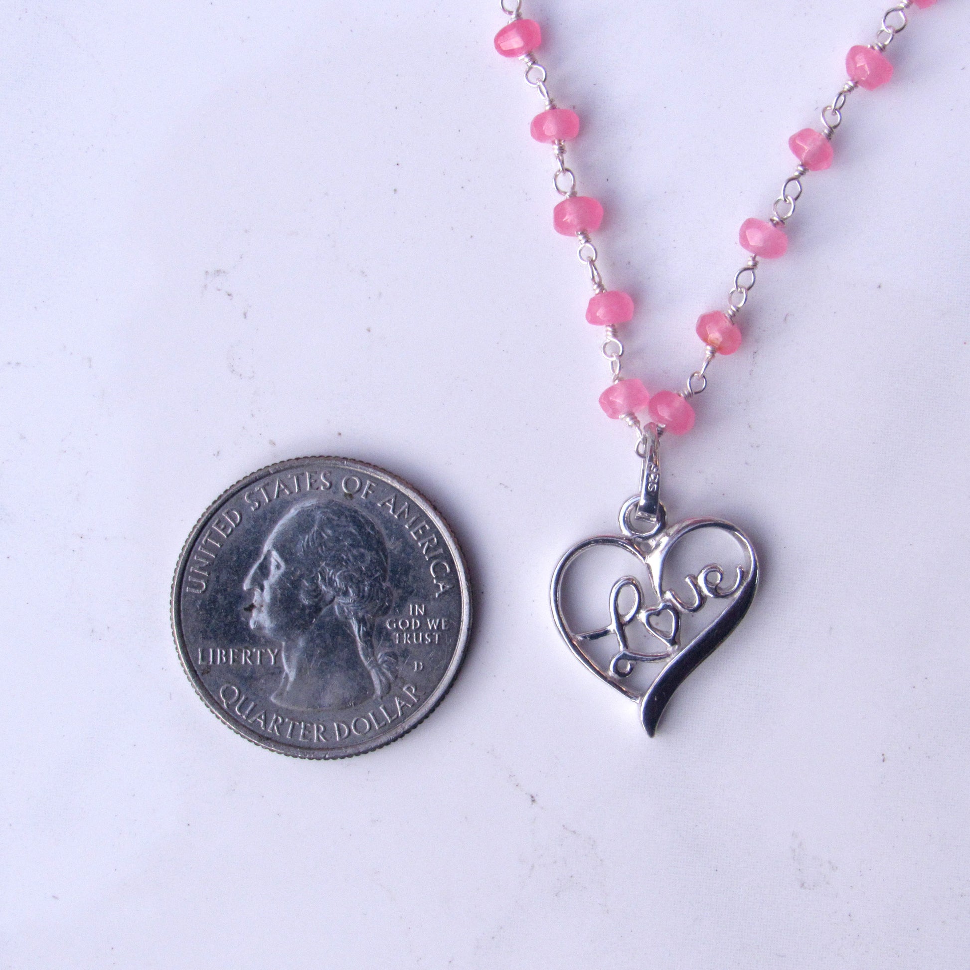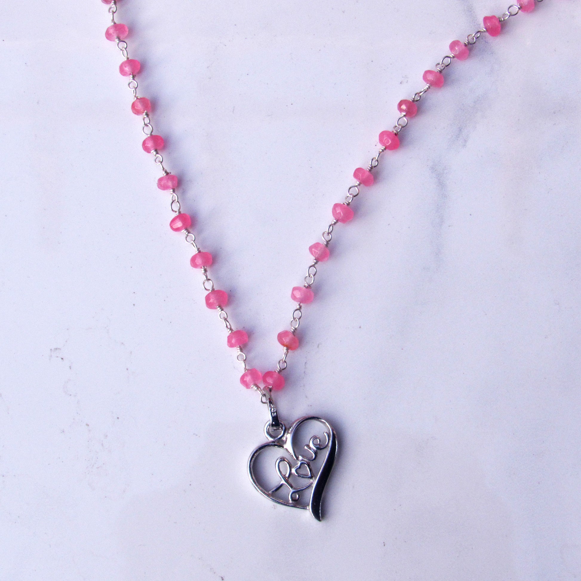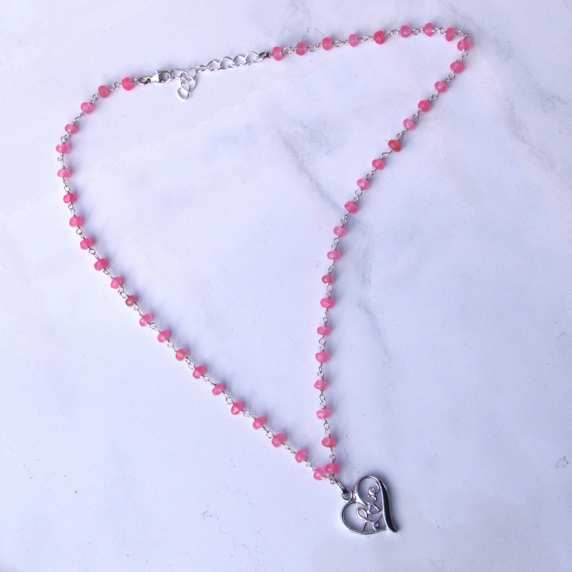 Pink Chalcedony gemstone Silver Heart Love Choker