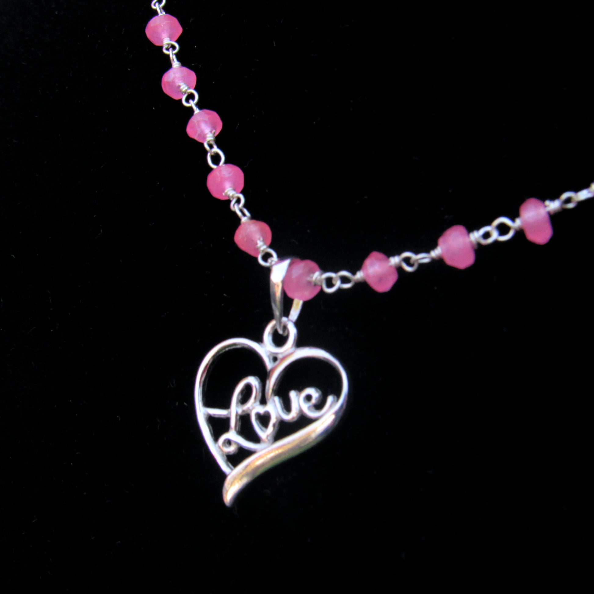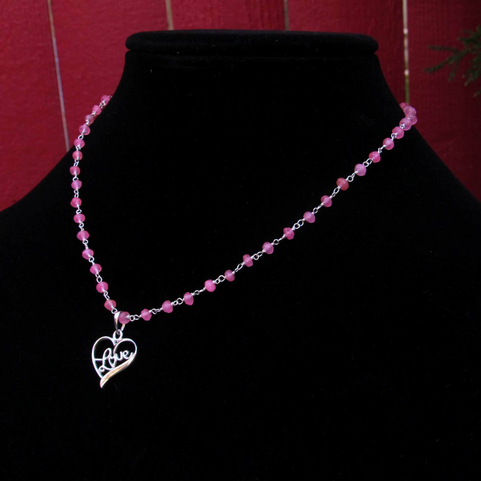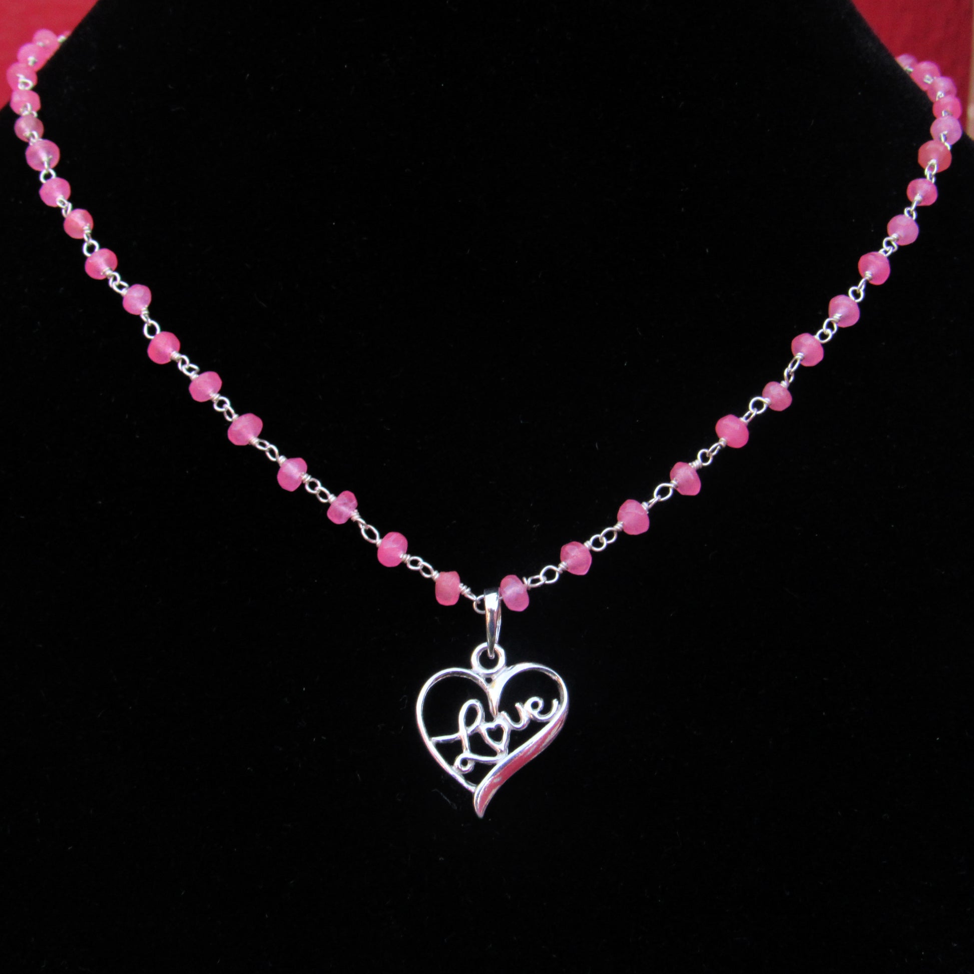 Pink Chalcedony gemstone Silver Heart Love Choker
