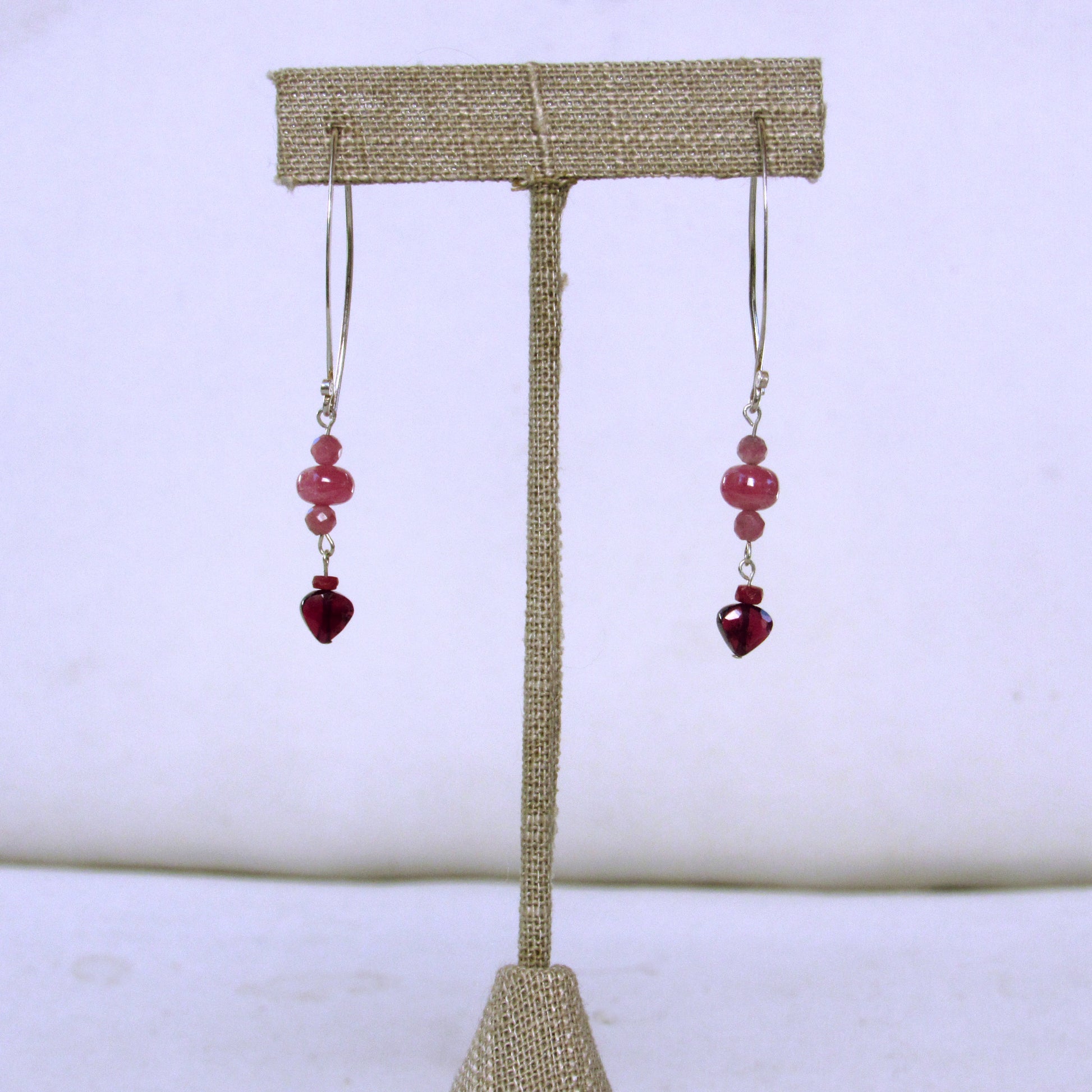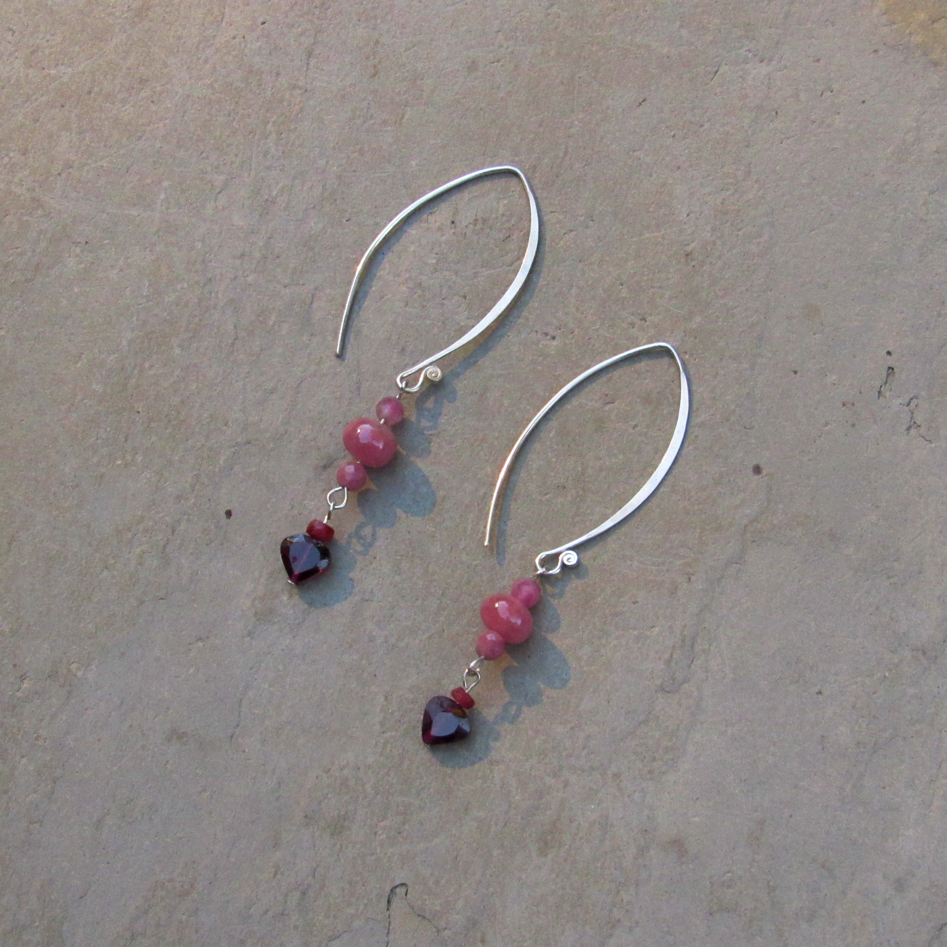 Pink Sapphires, Pink Tourmaline, Red Rubies, and Garnet gemstone Hearts w/ Sterling Silver Drop Earrings