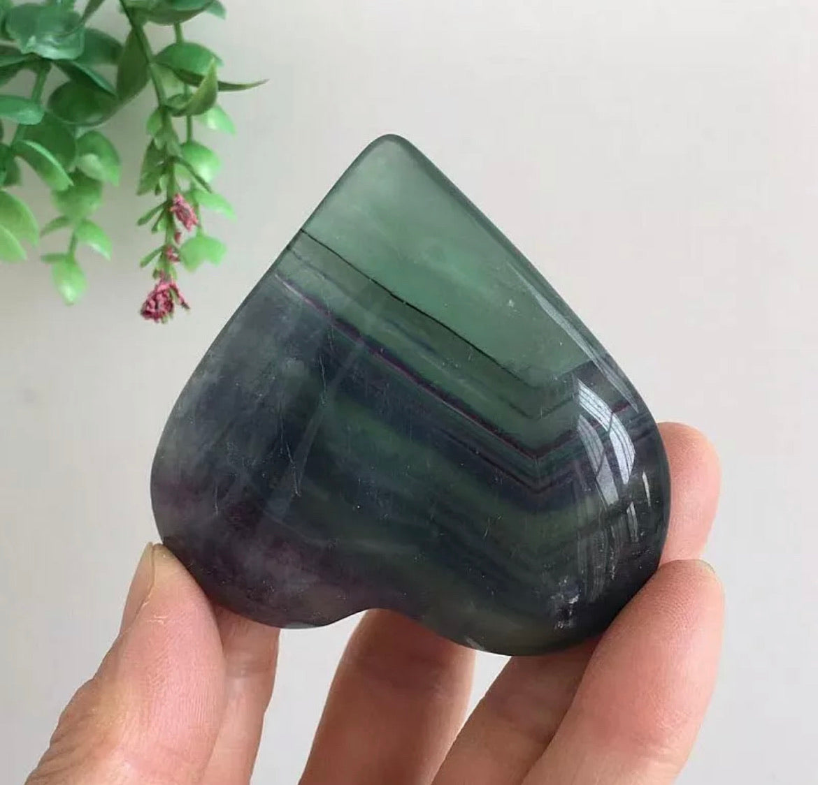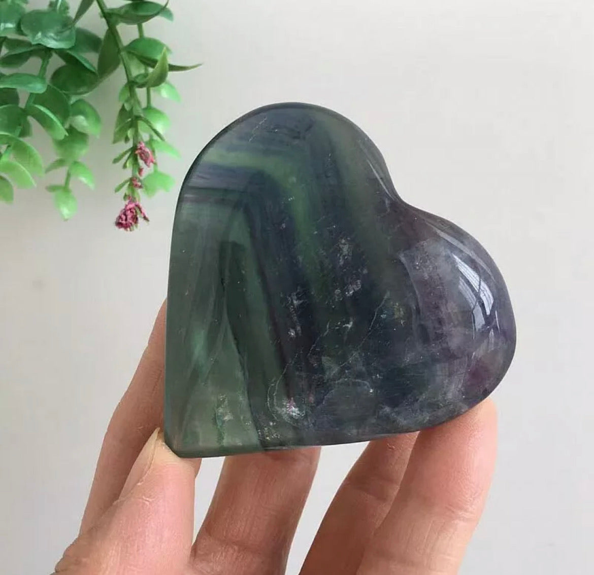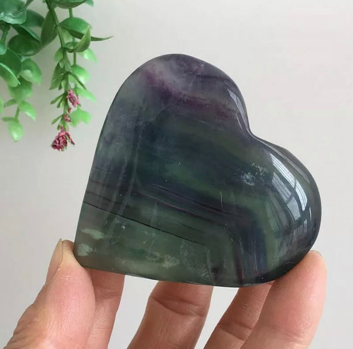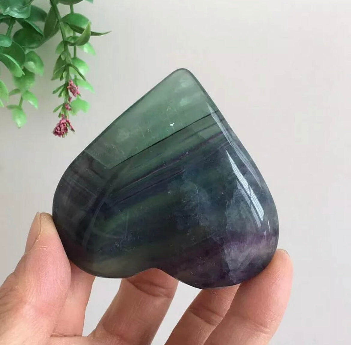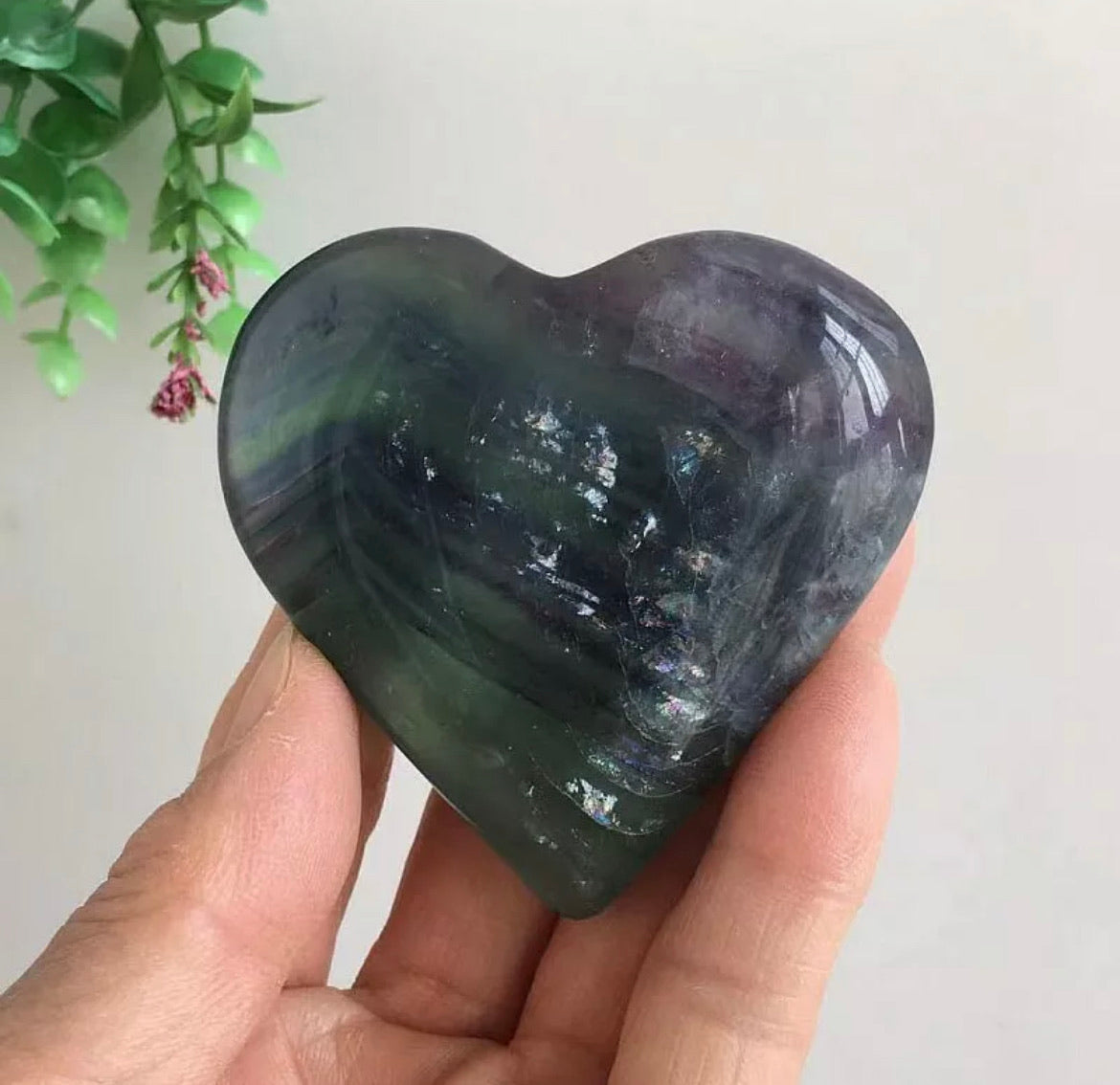 144g Rainbow Fluorite Heart Shaped Carving Stone Quartz Crystal Polished Healing