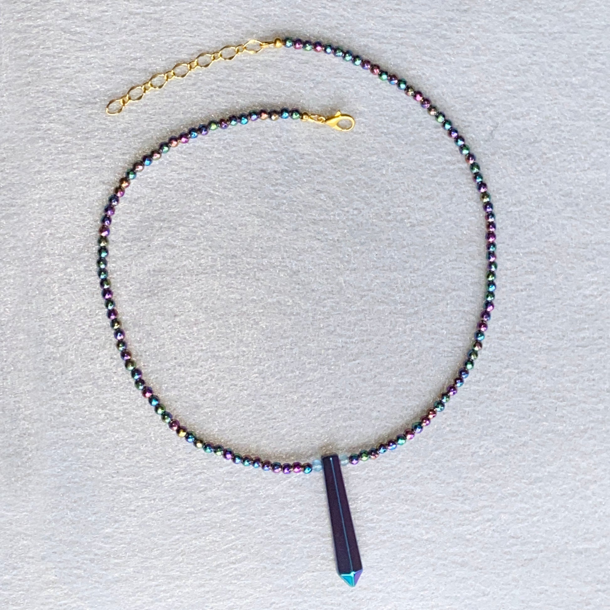Rainbow Hematite and Blue Topaz Necklace