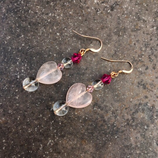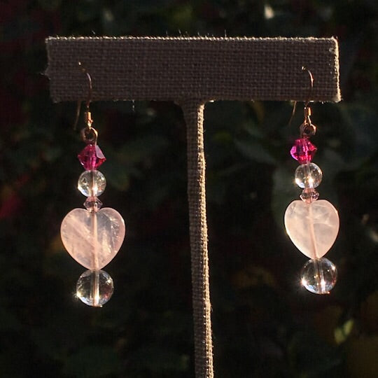 Women’s Rose quartz, clear quartz, and Swarovski crystal with rose gold filled drop earrings