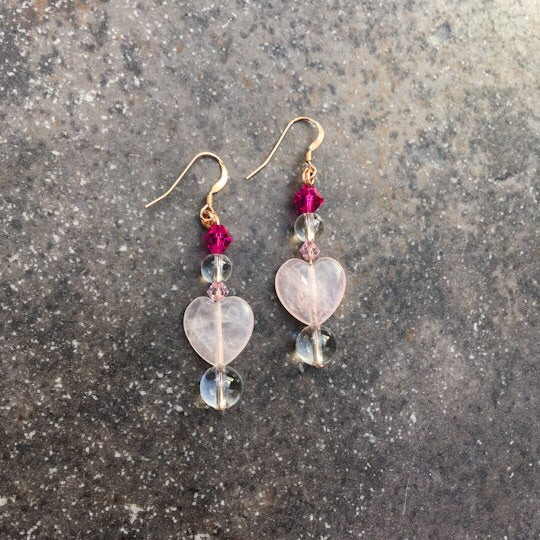Rose quartz, Clear Quartz, and Swarovski crystal with rose gold filled drop earrings