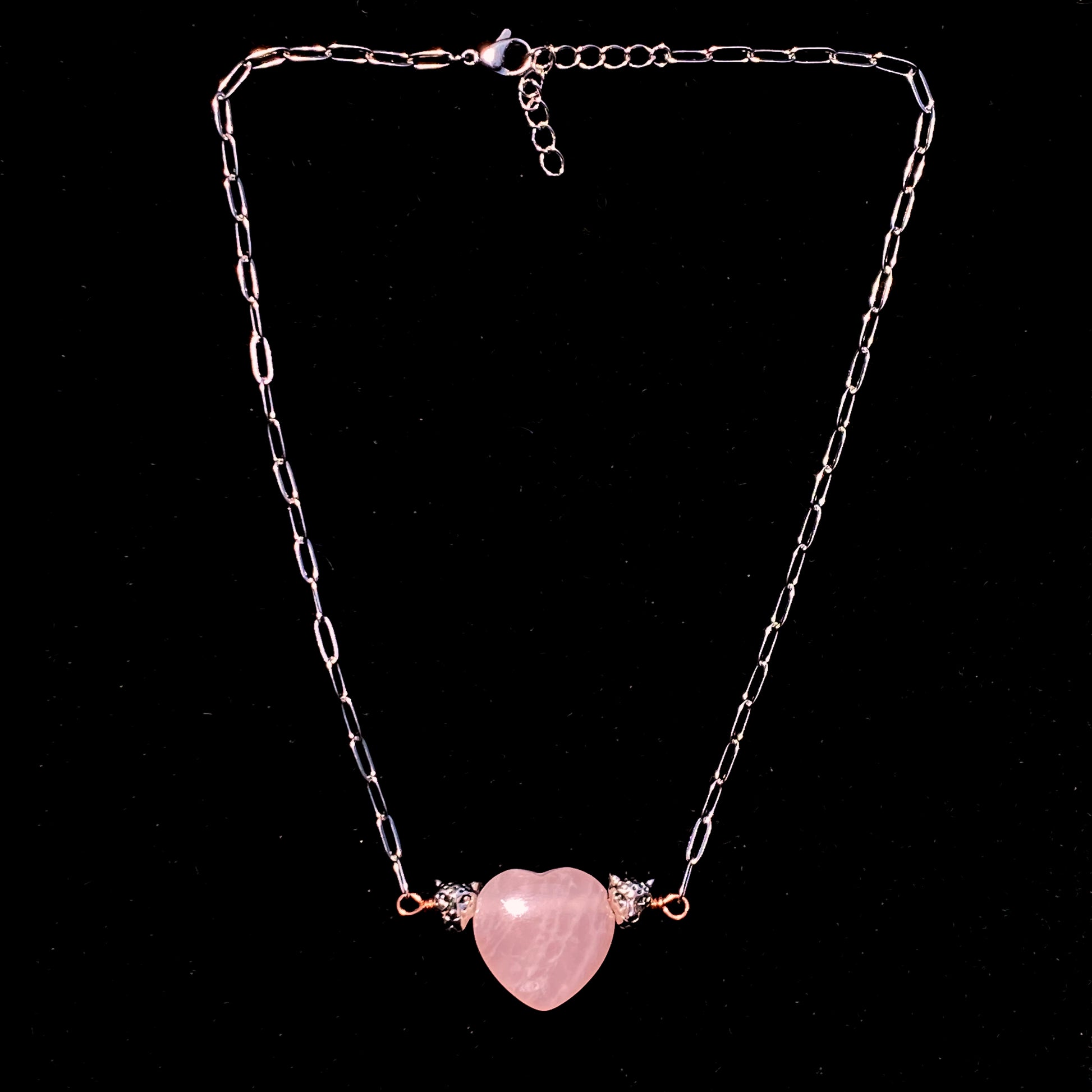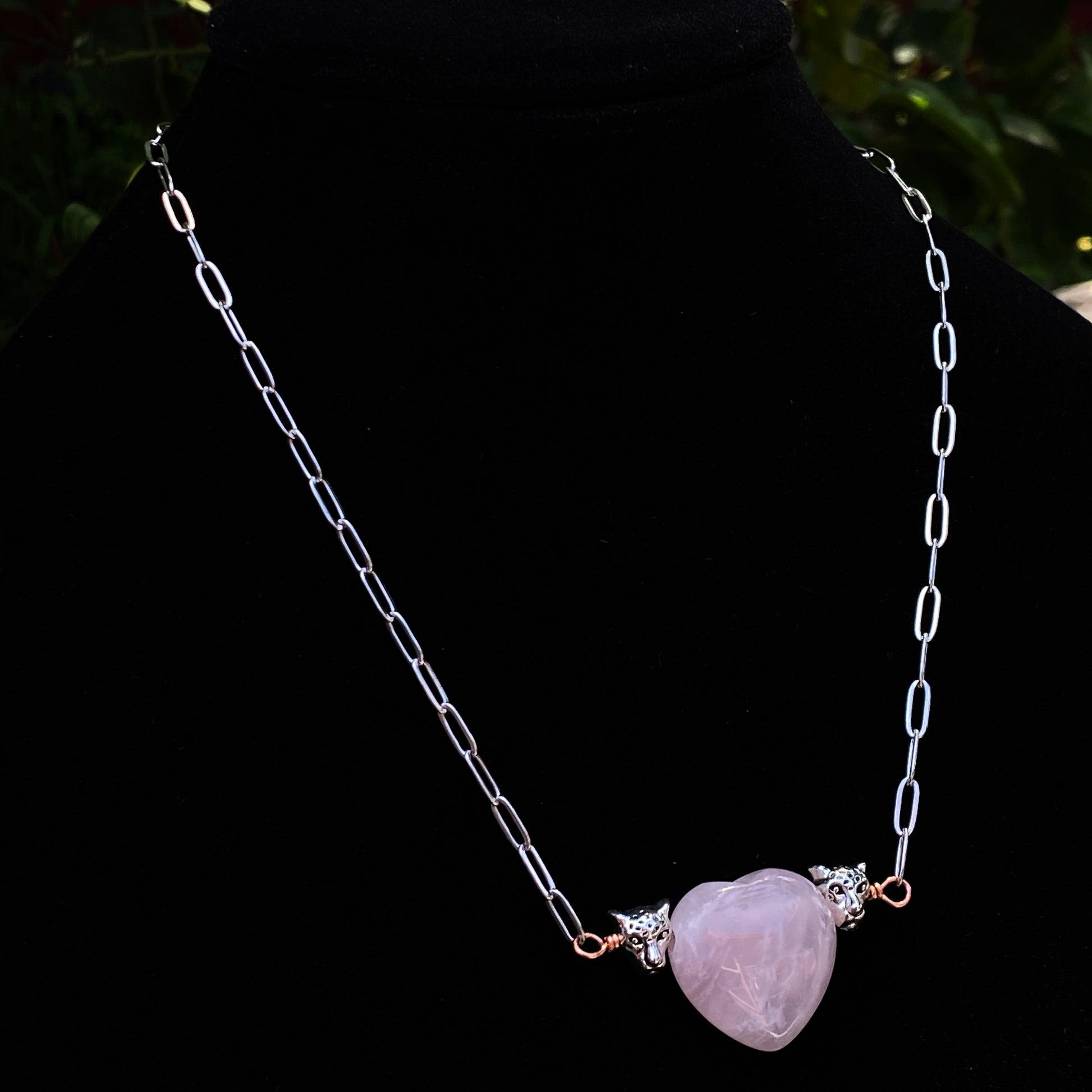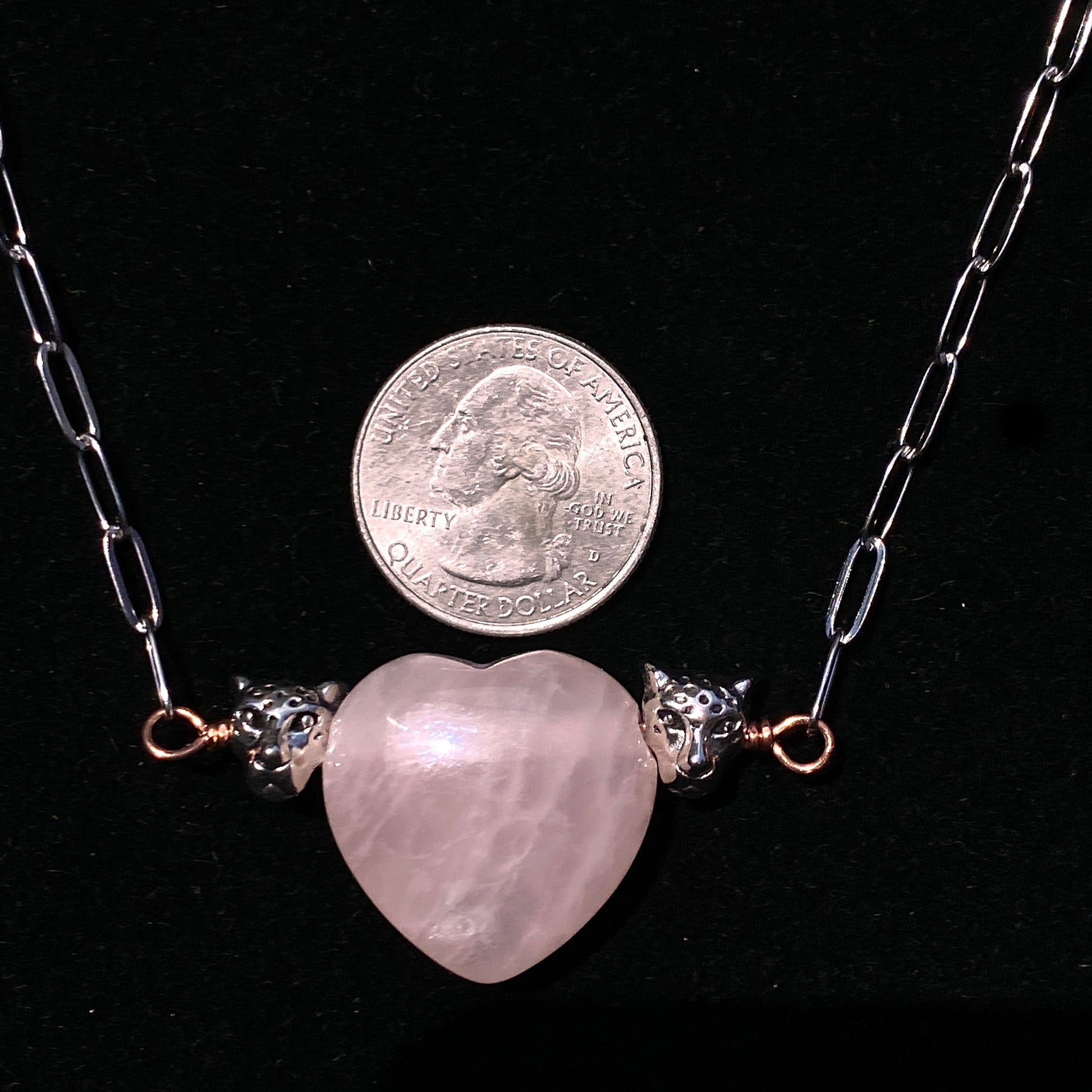 Rose Quartz gemstone Heart and Leopard head Necklace