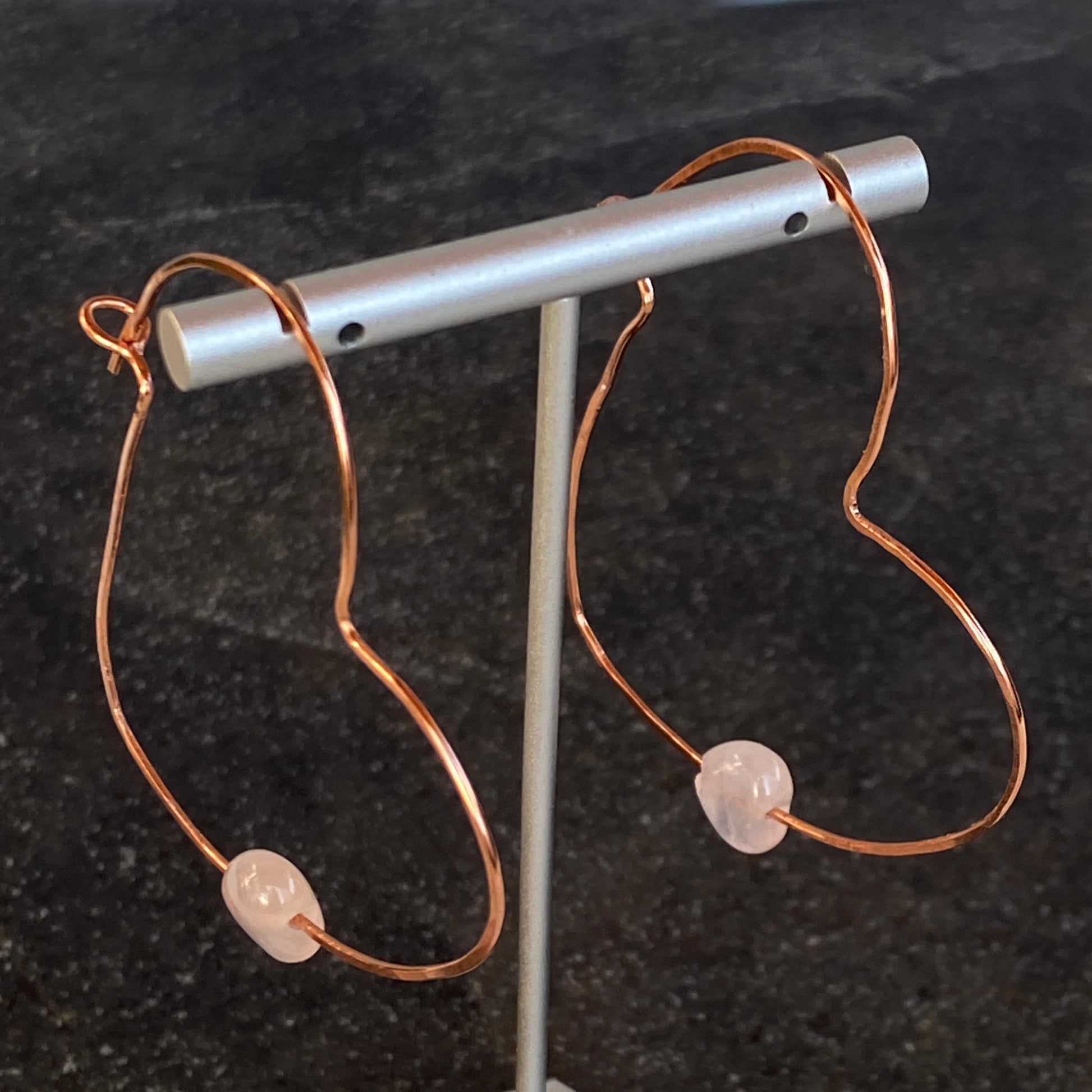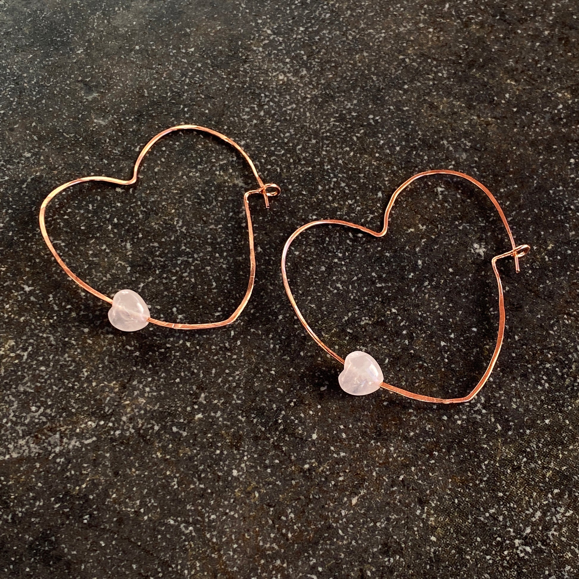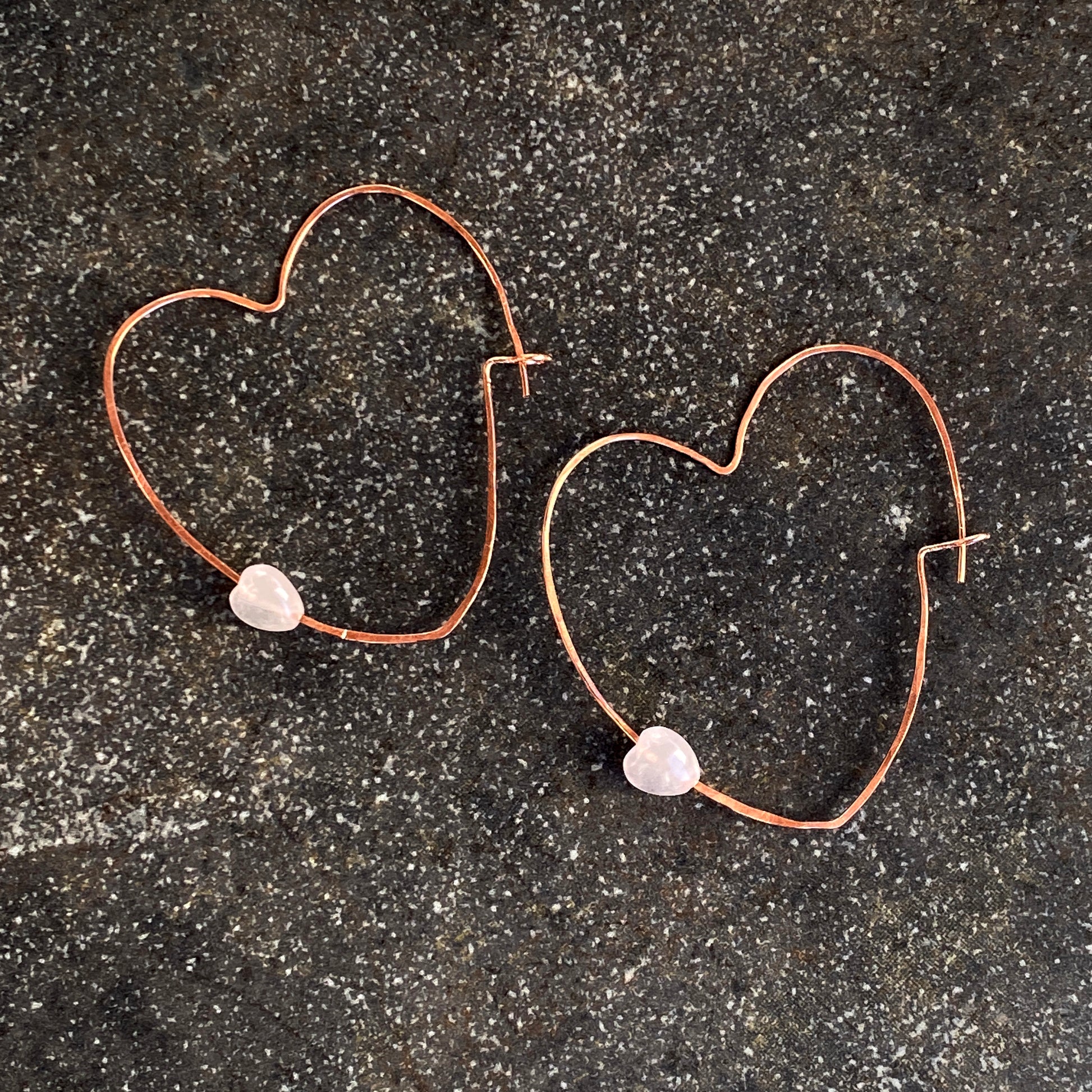 Rose Quartz Hearts on Copper Heart Hoop Earrings