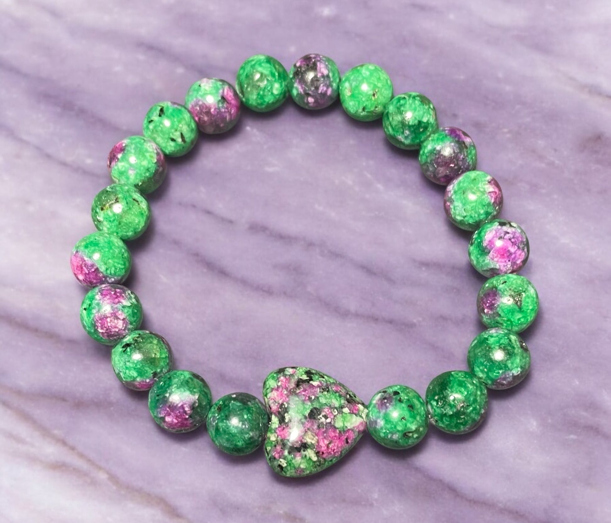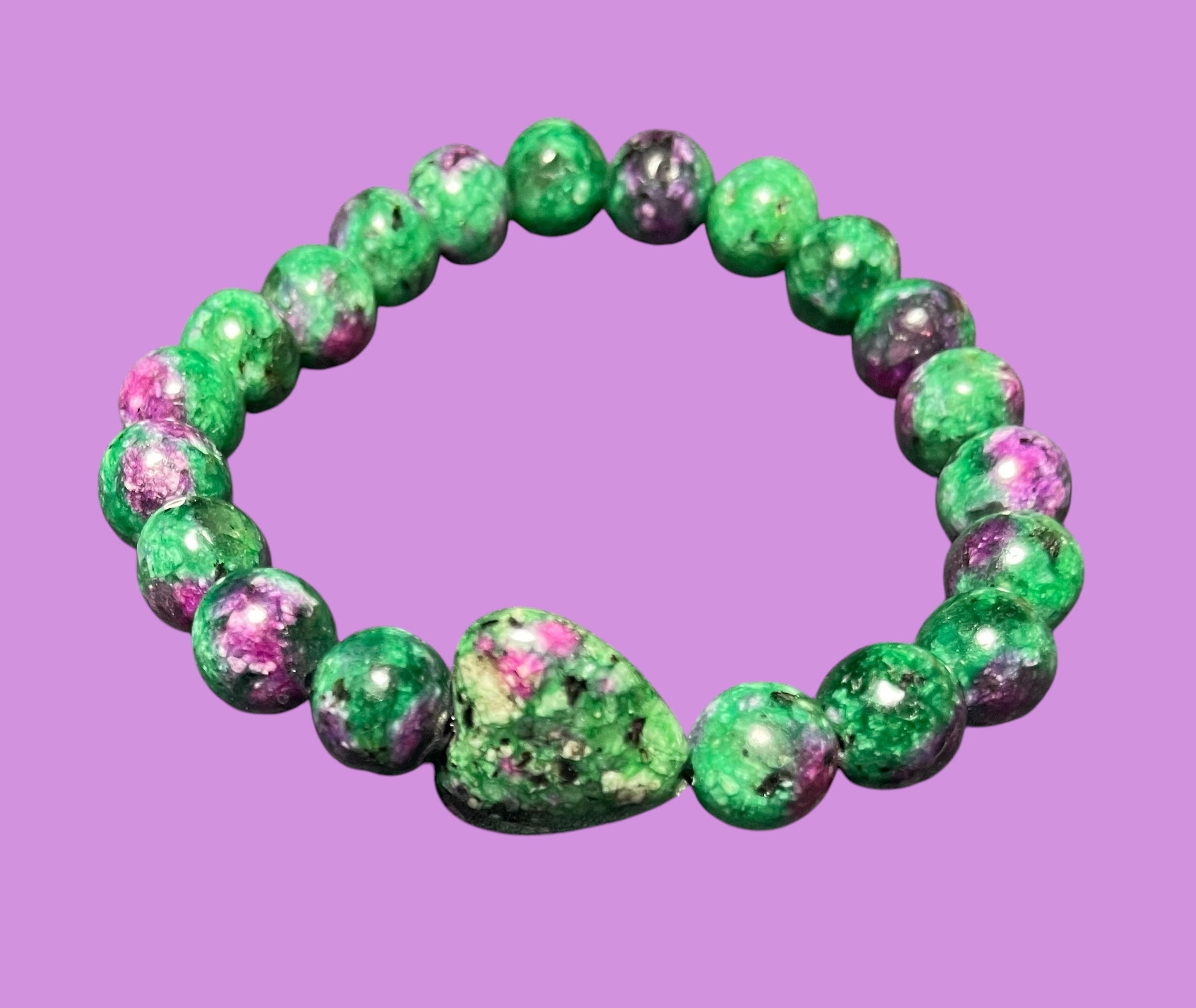 Ruby Zoisite Heart Beaded Bracelet