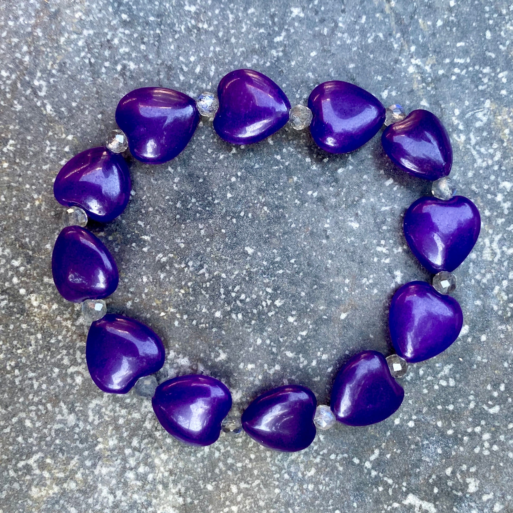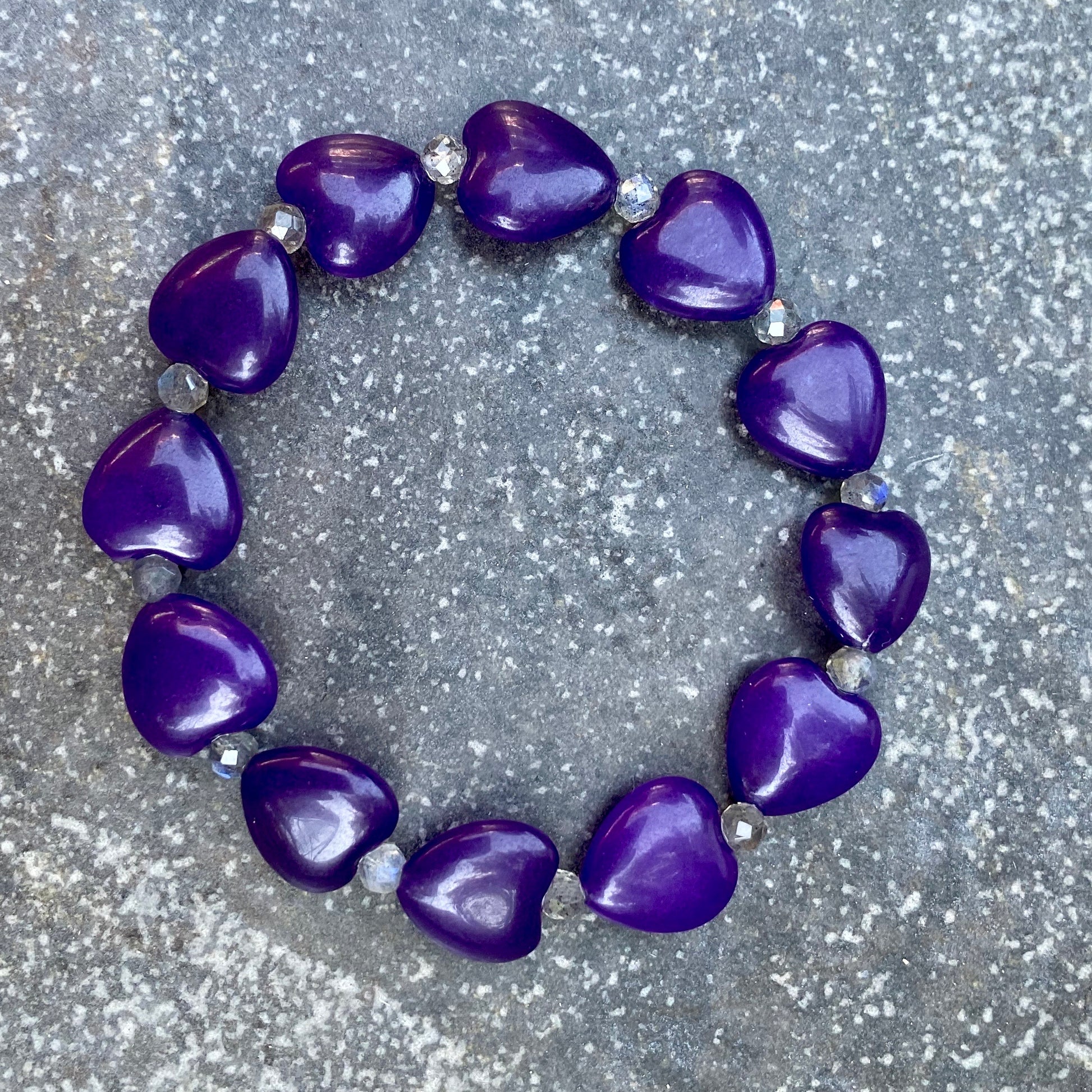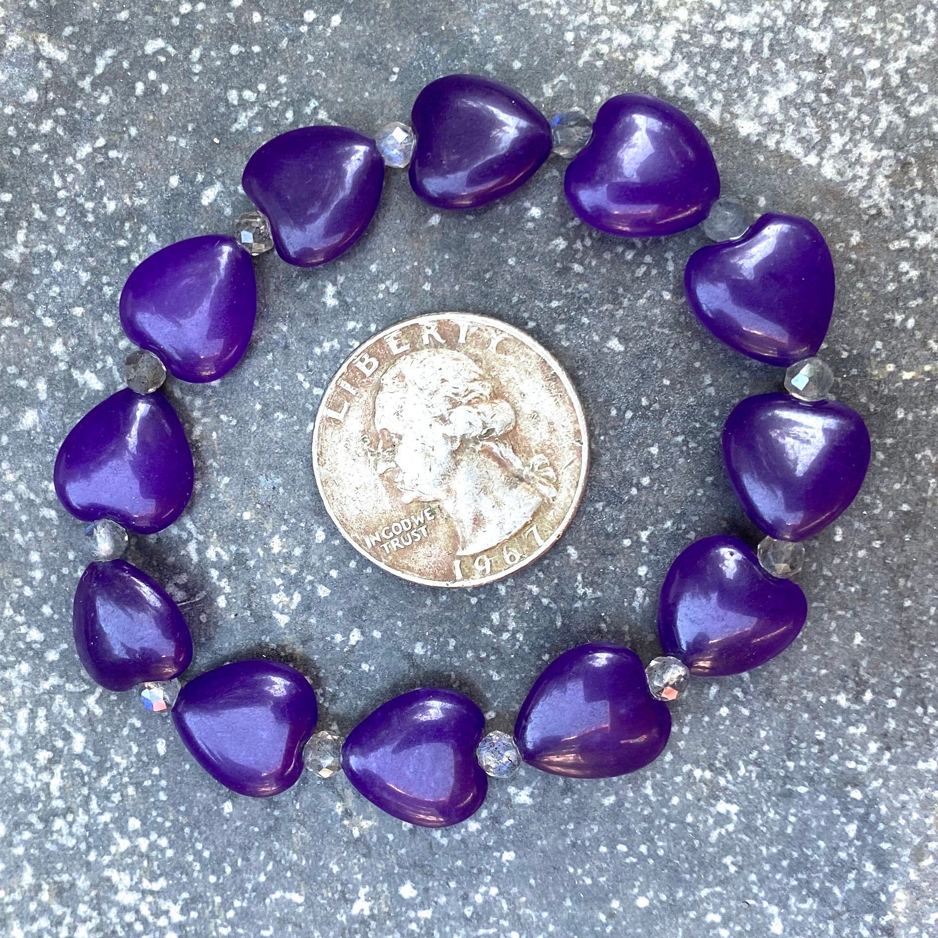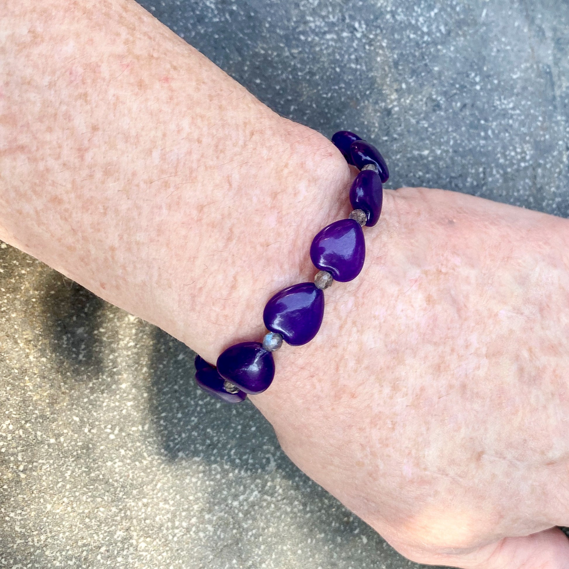 Russian Amethyst Gemstone Hearts and Flashy Labradorite Stretch Bracelet