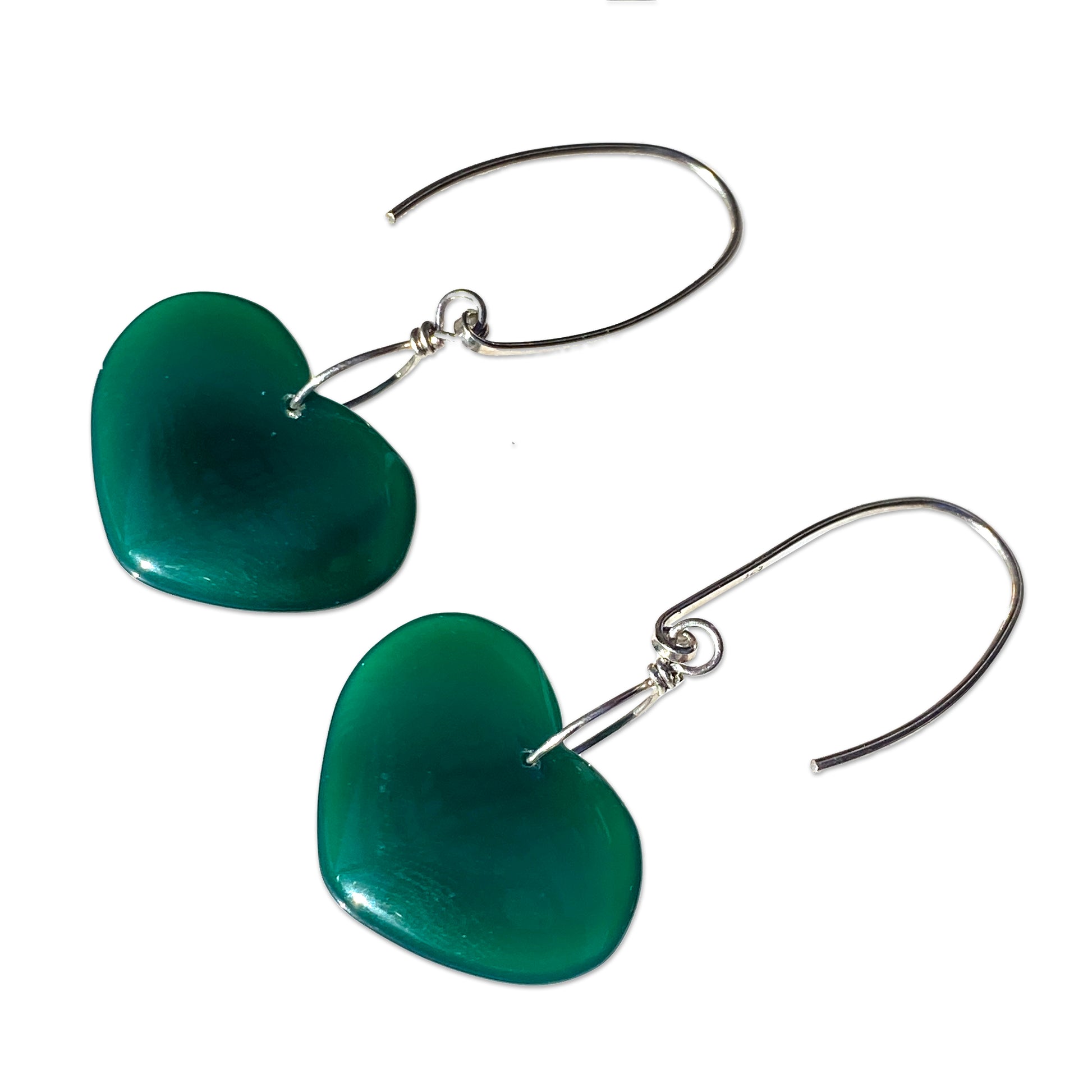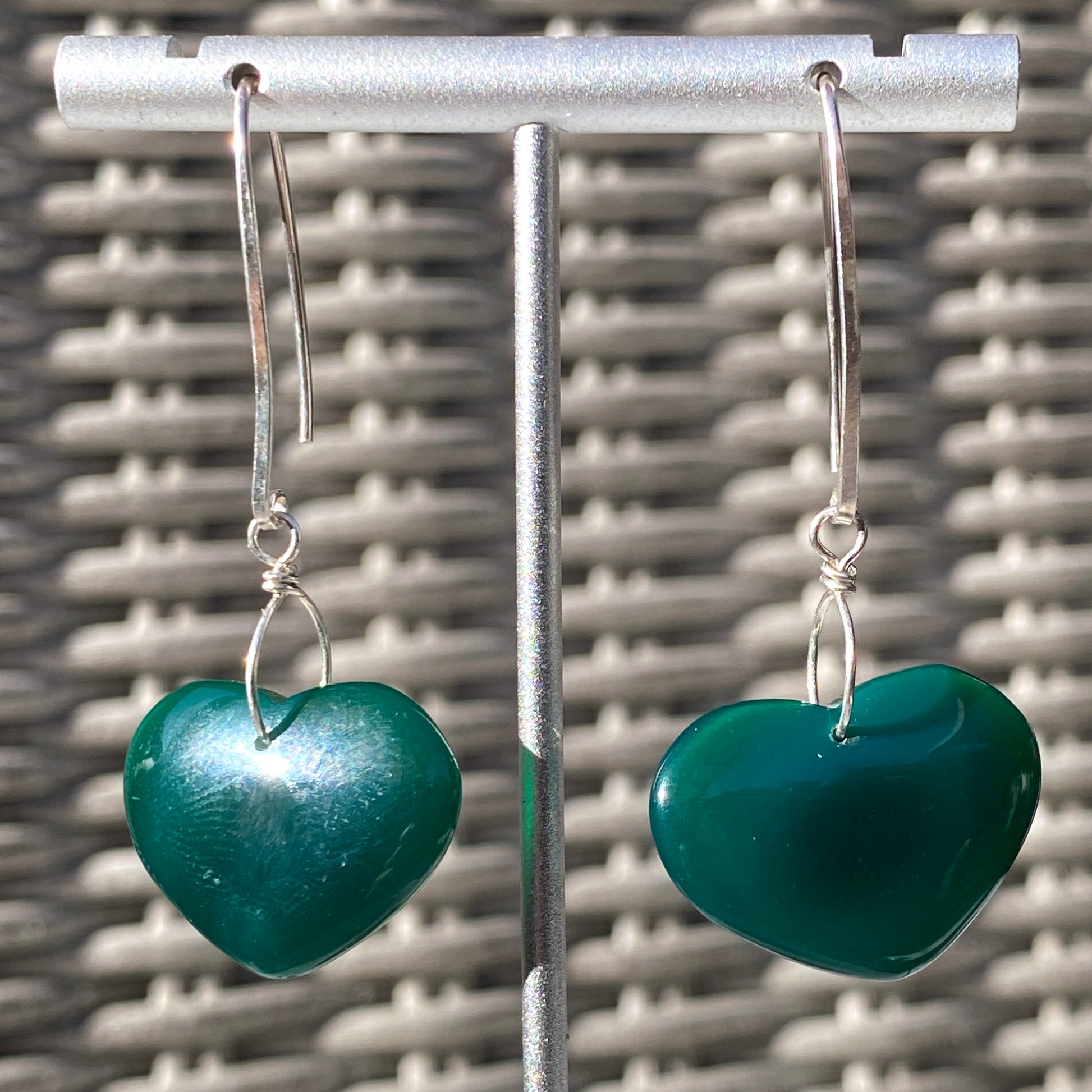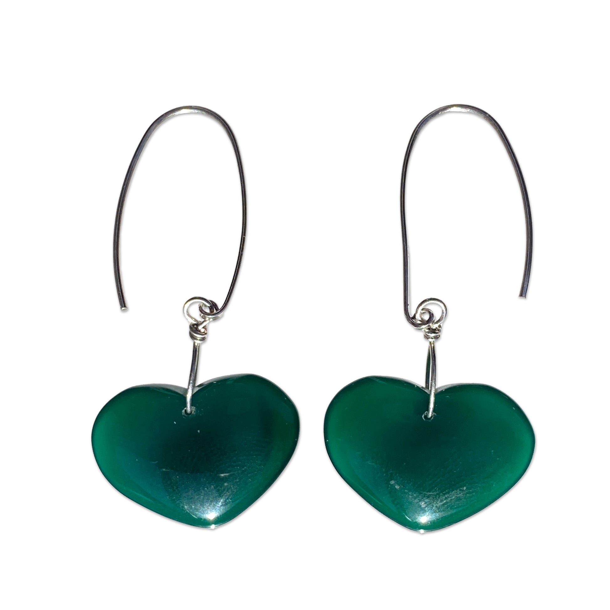 Genuine Green Agate and sterling silver ear wire dangle and drop earrings
