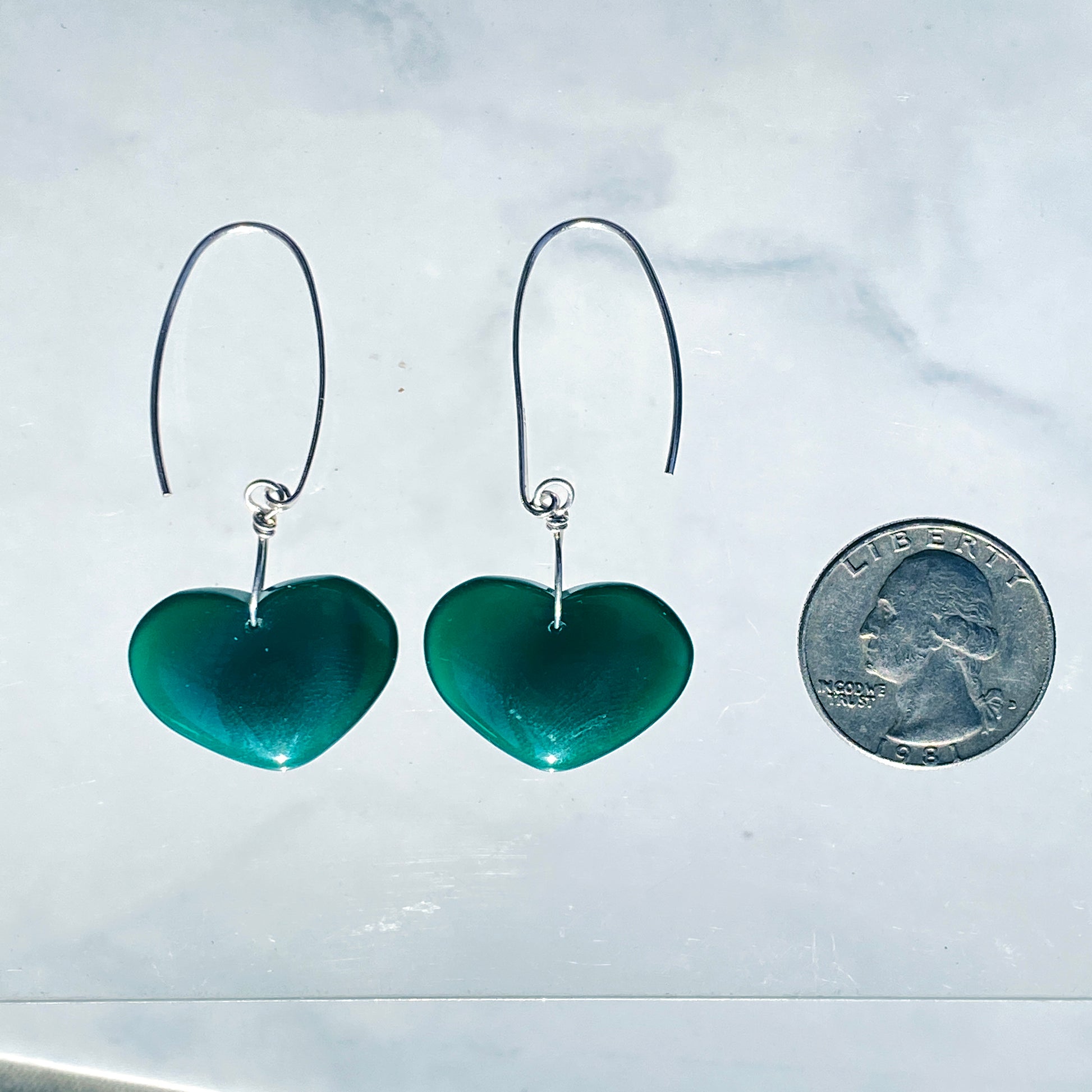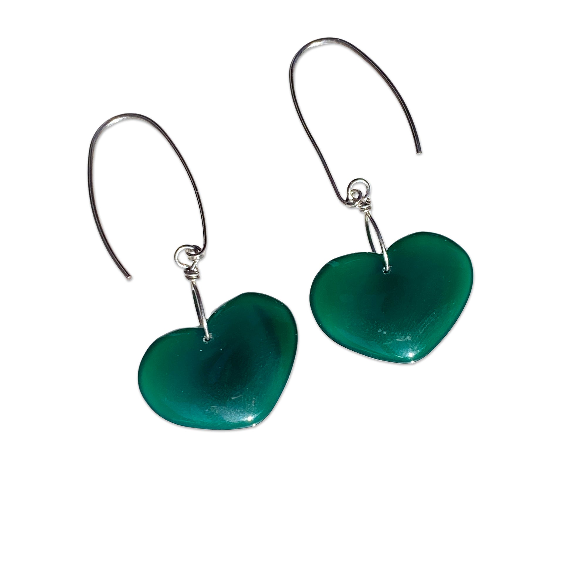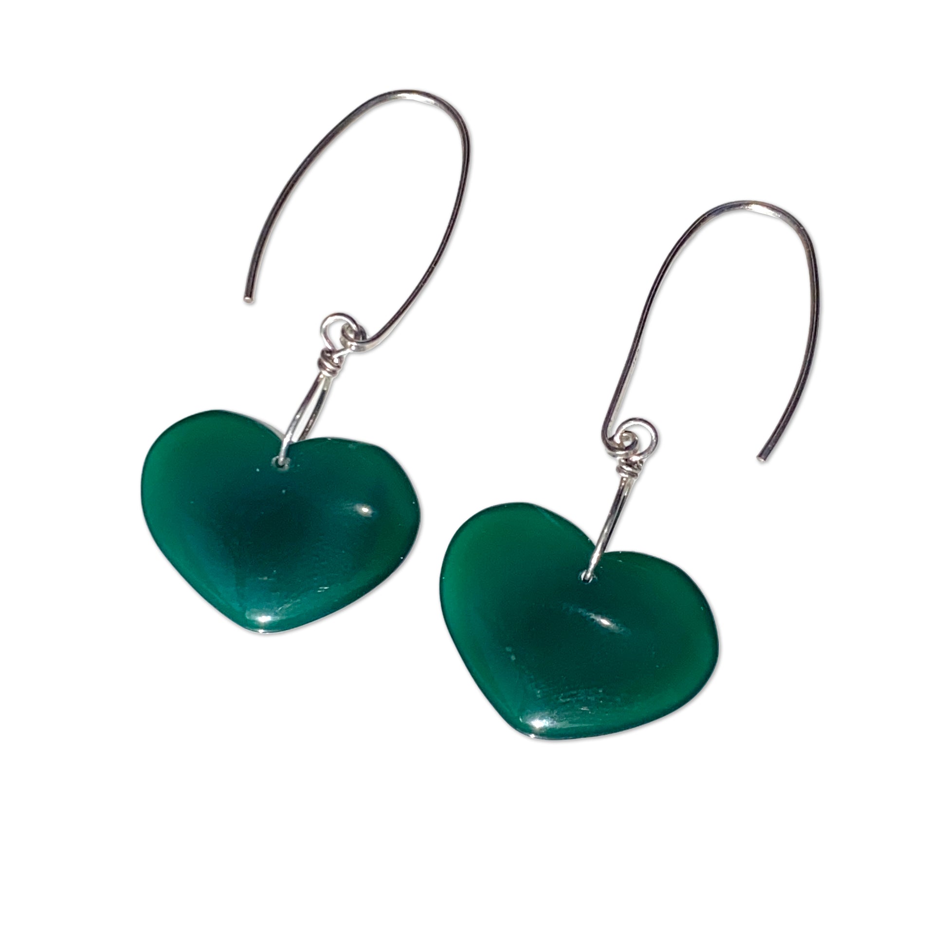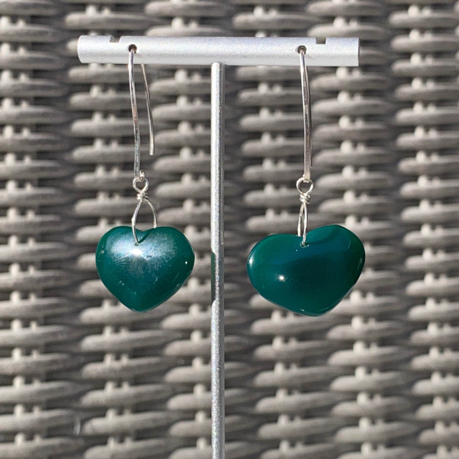 Genuine Green Agate and sterling silver ear wire dangle and drop earrings