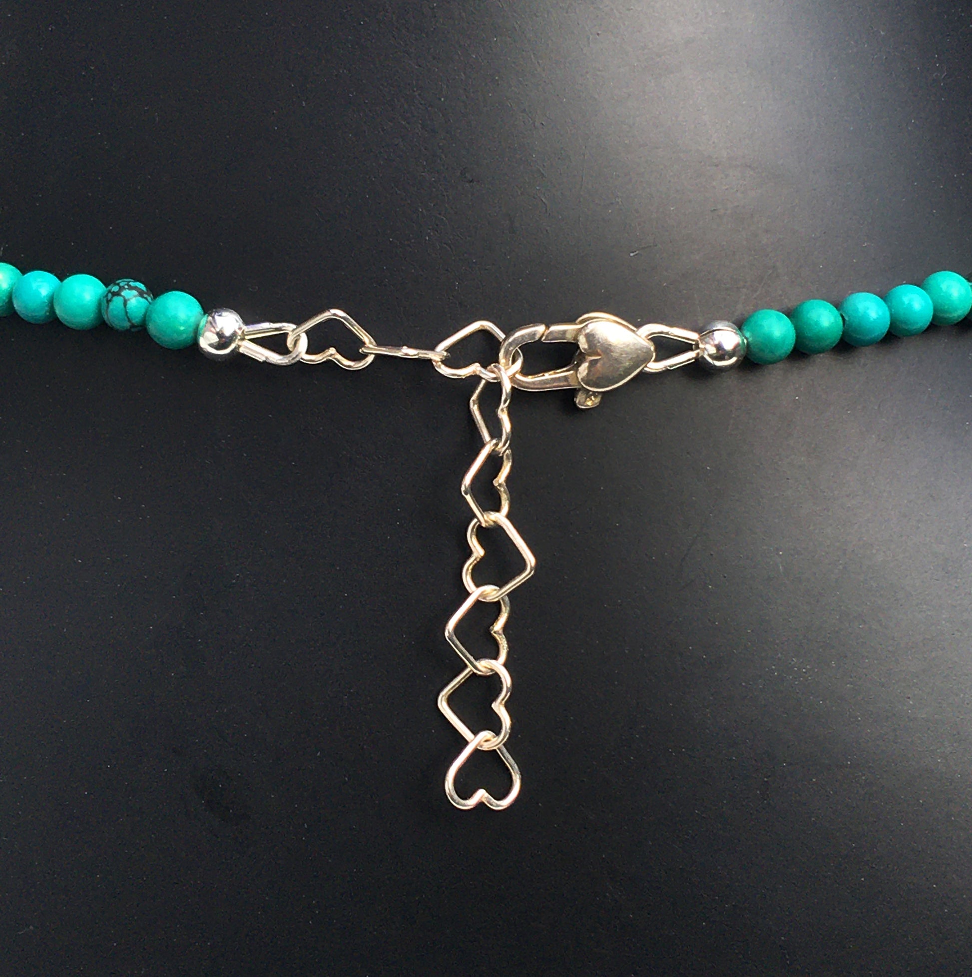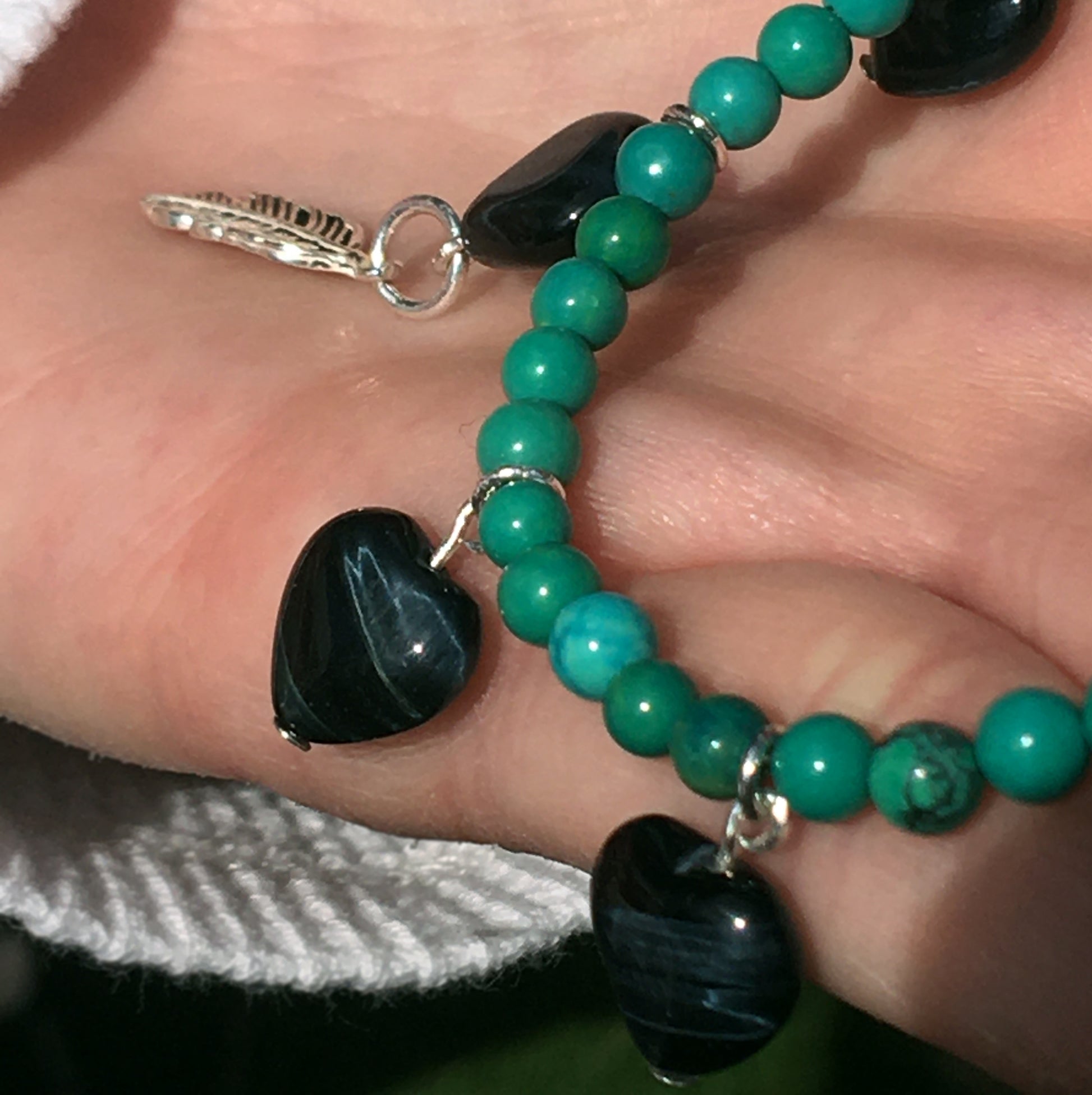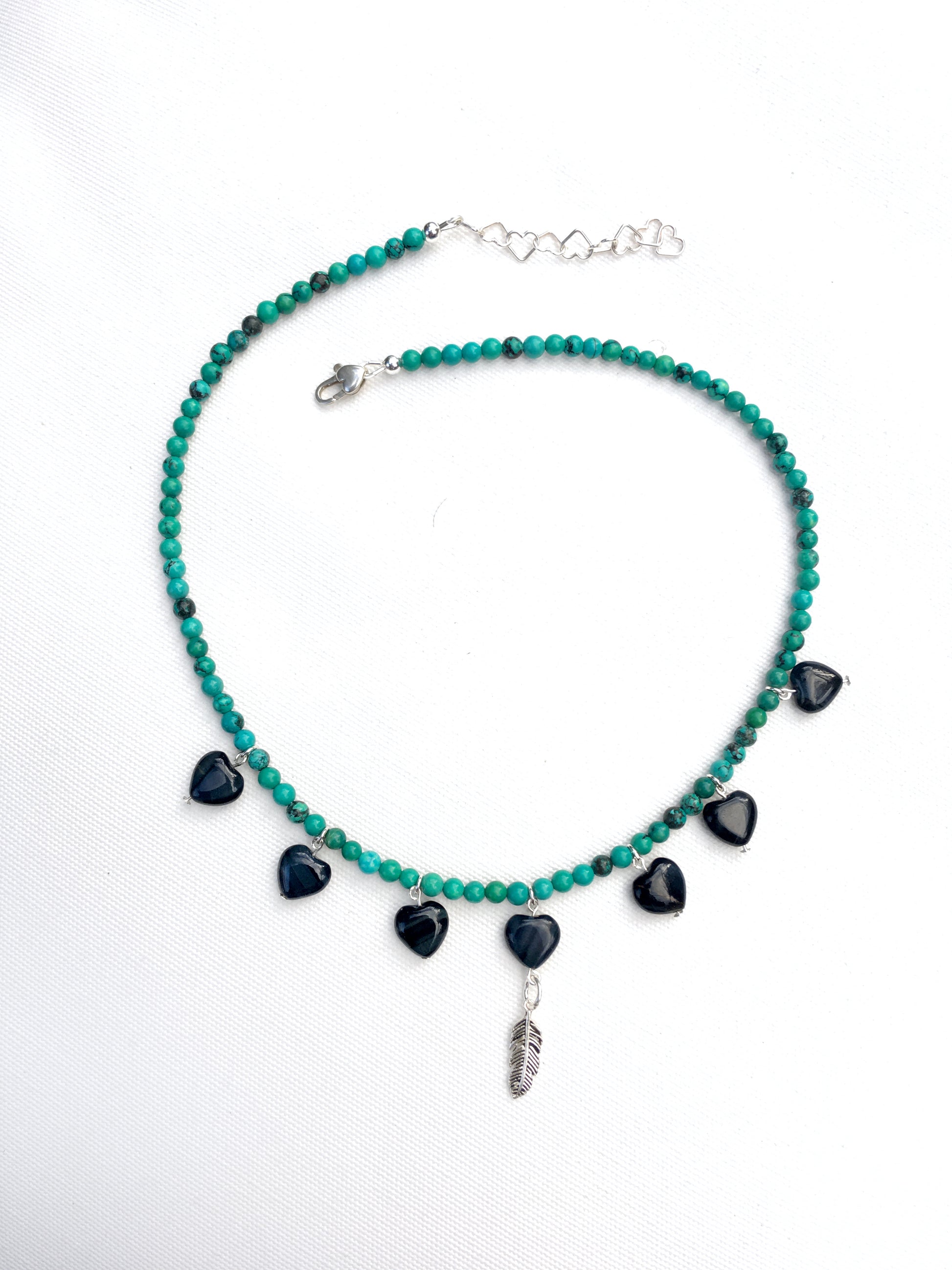Women's Blue Tiger Eye heart Necklace with Turquoise with a Sterling Silver feather