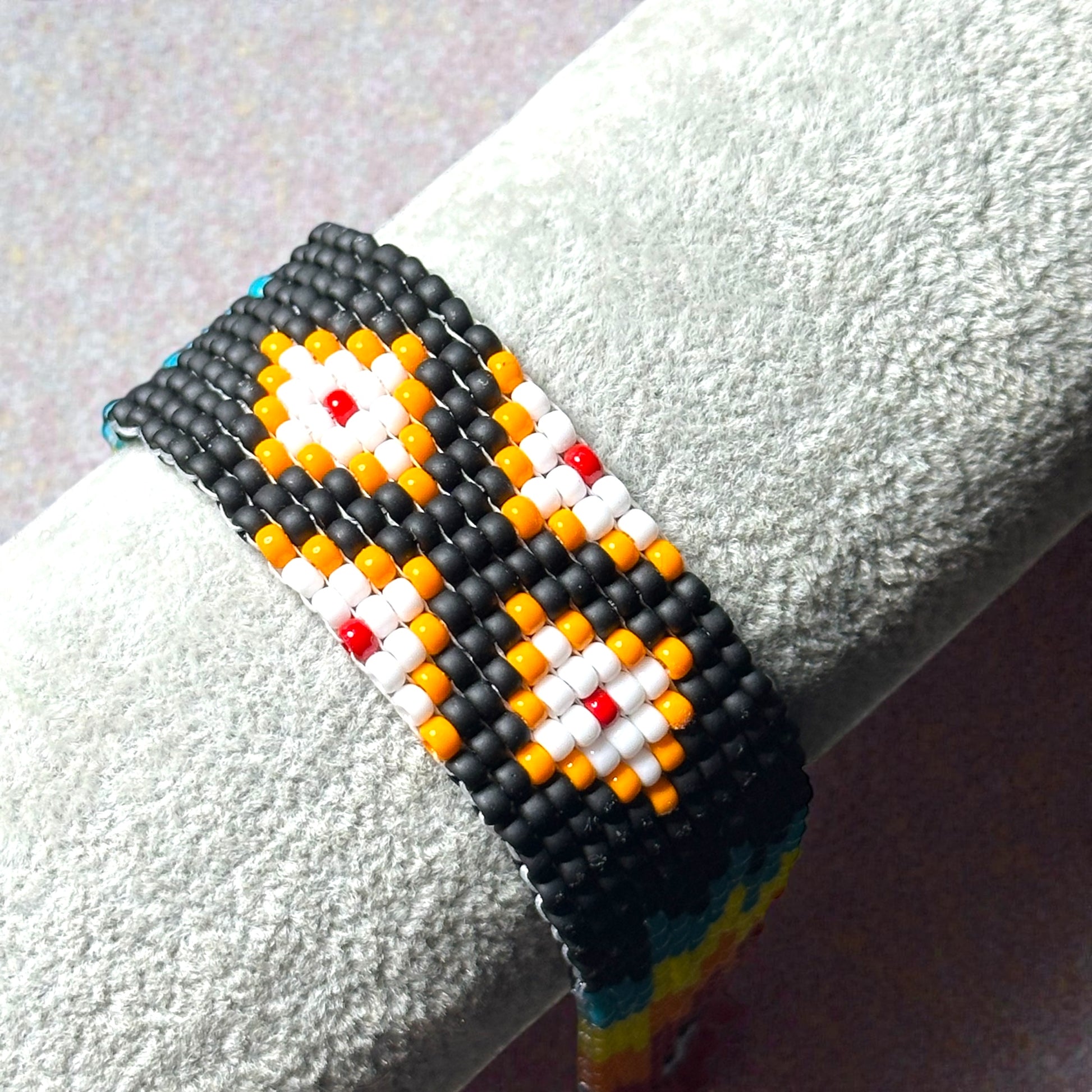 Handmade woven glass beaded bracelet.