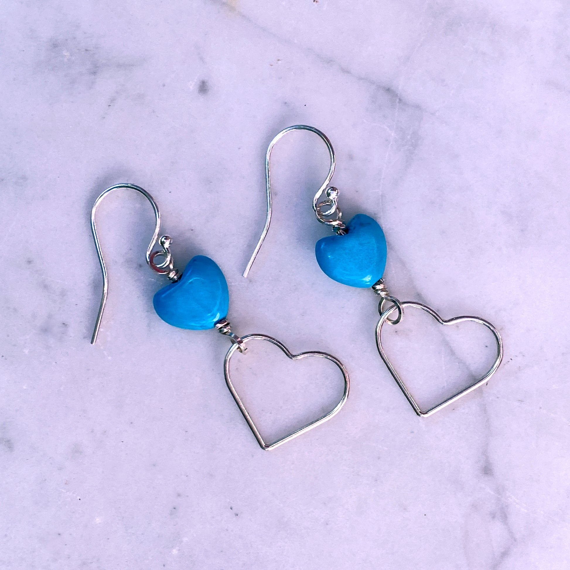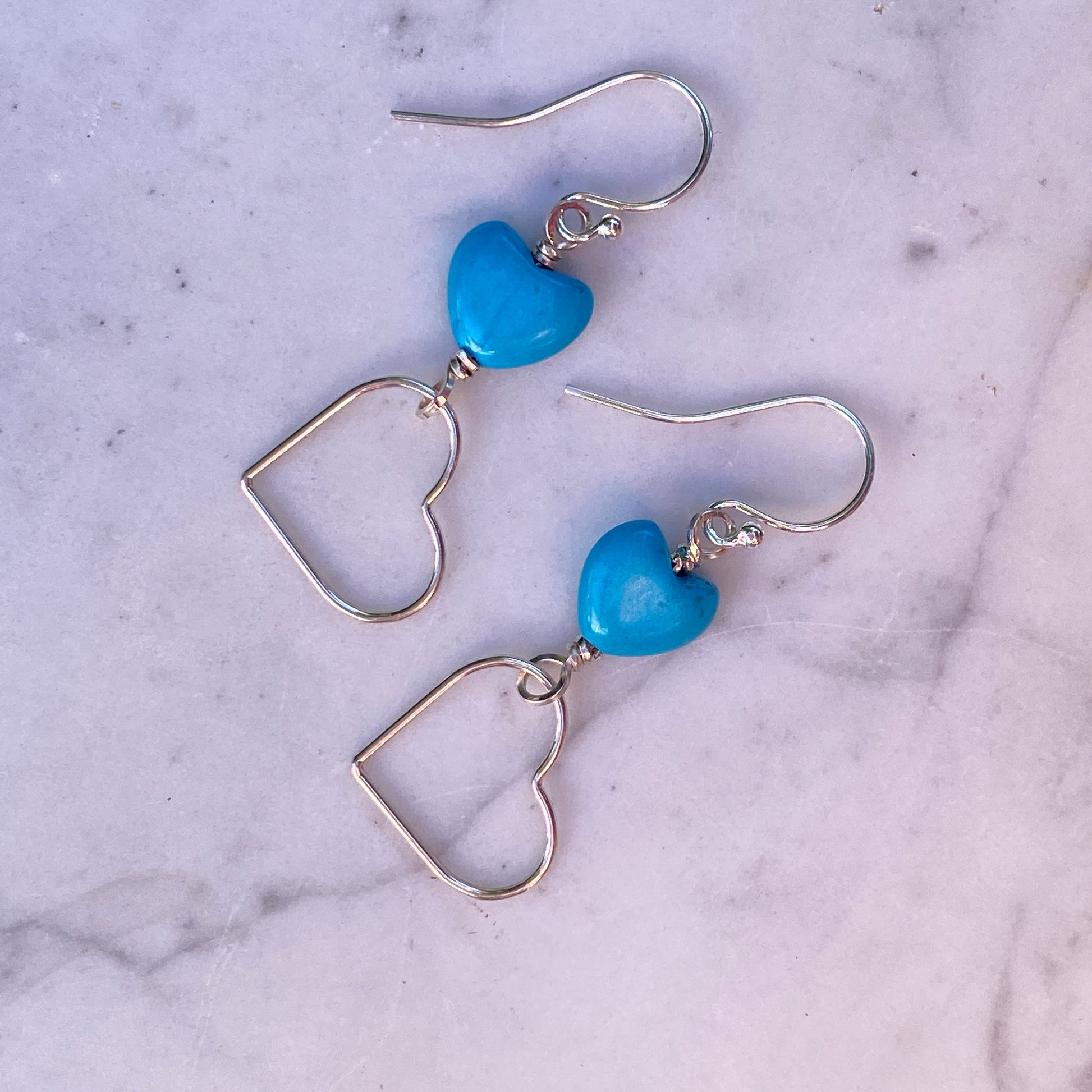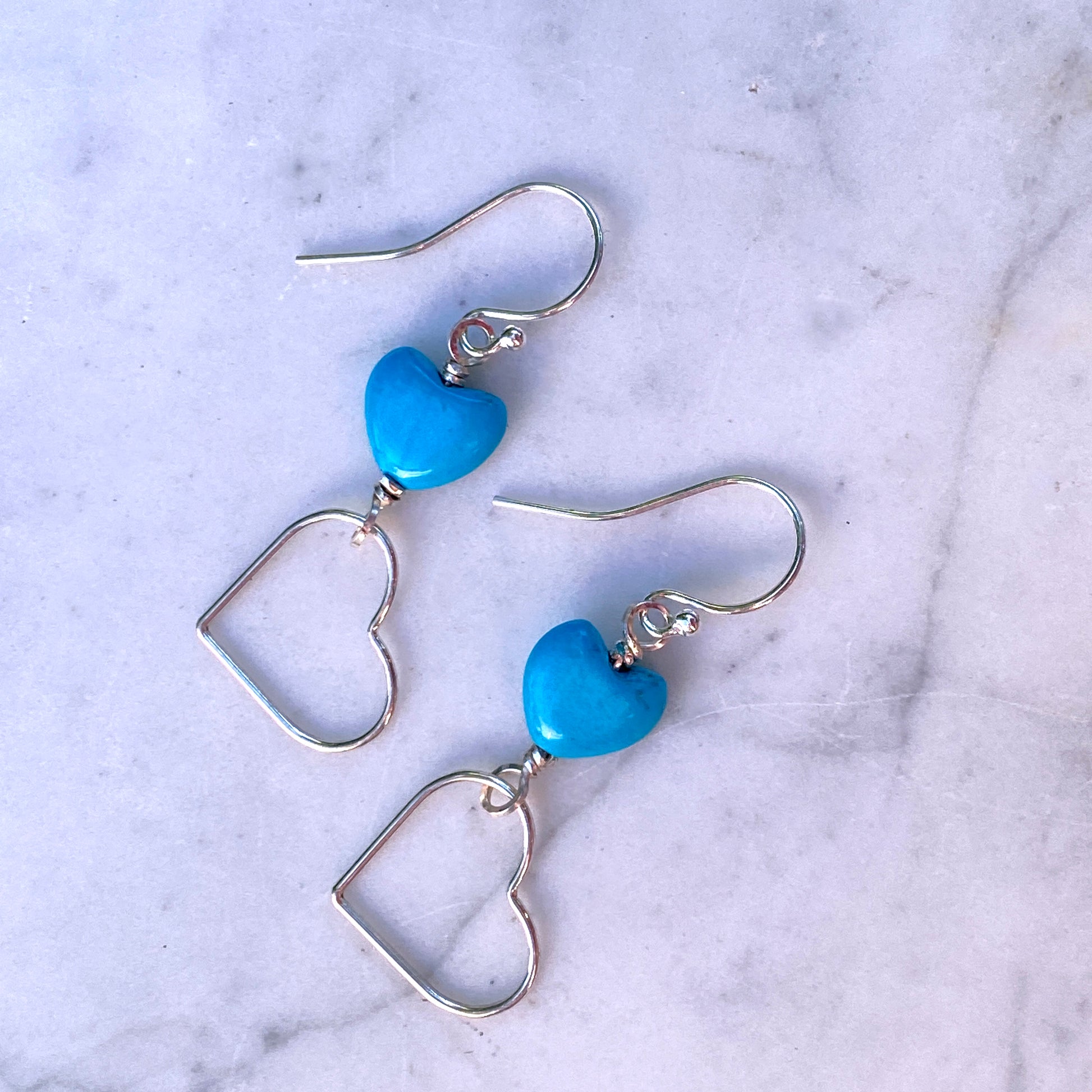 Turquoise and Sterling Silver Dangle Heart Earrings