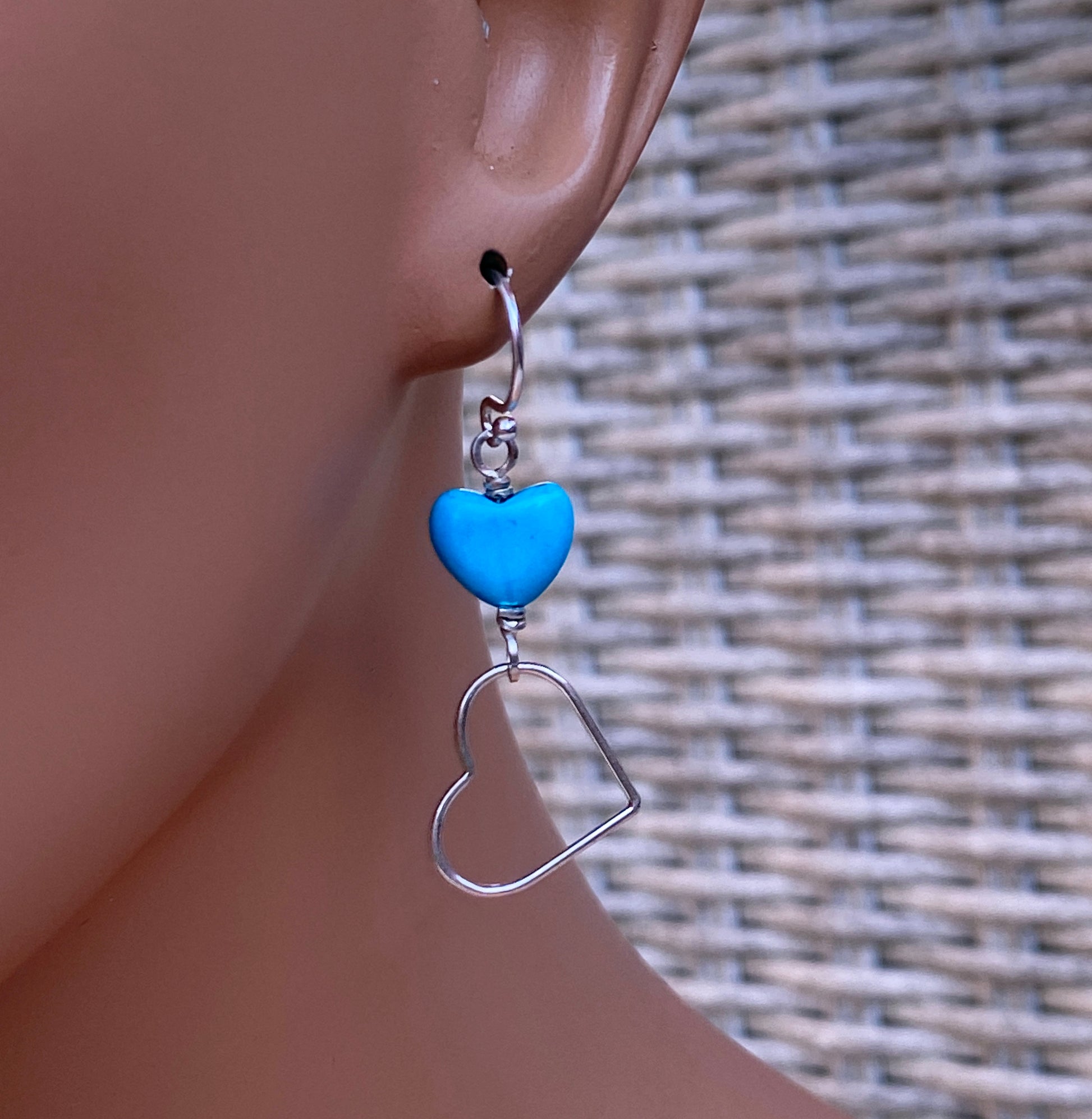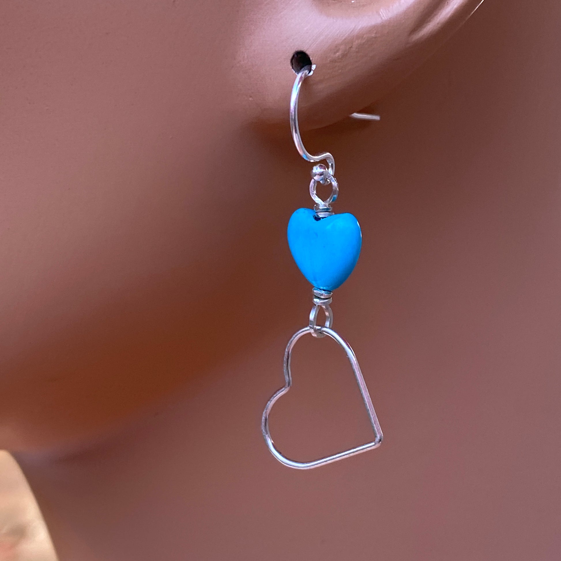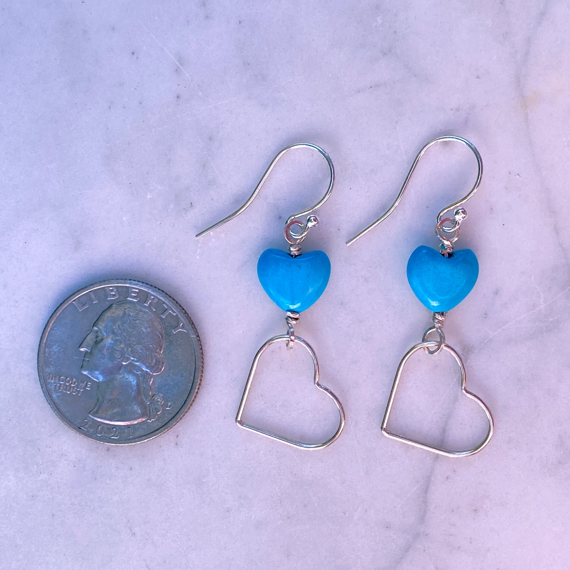 Turquoise and Sterling Silver Dangle Heart Earrings