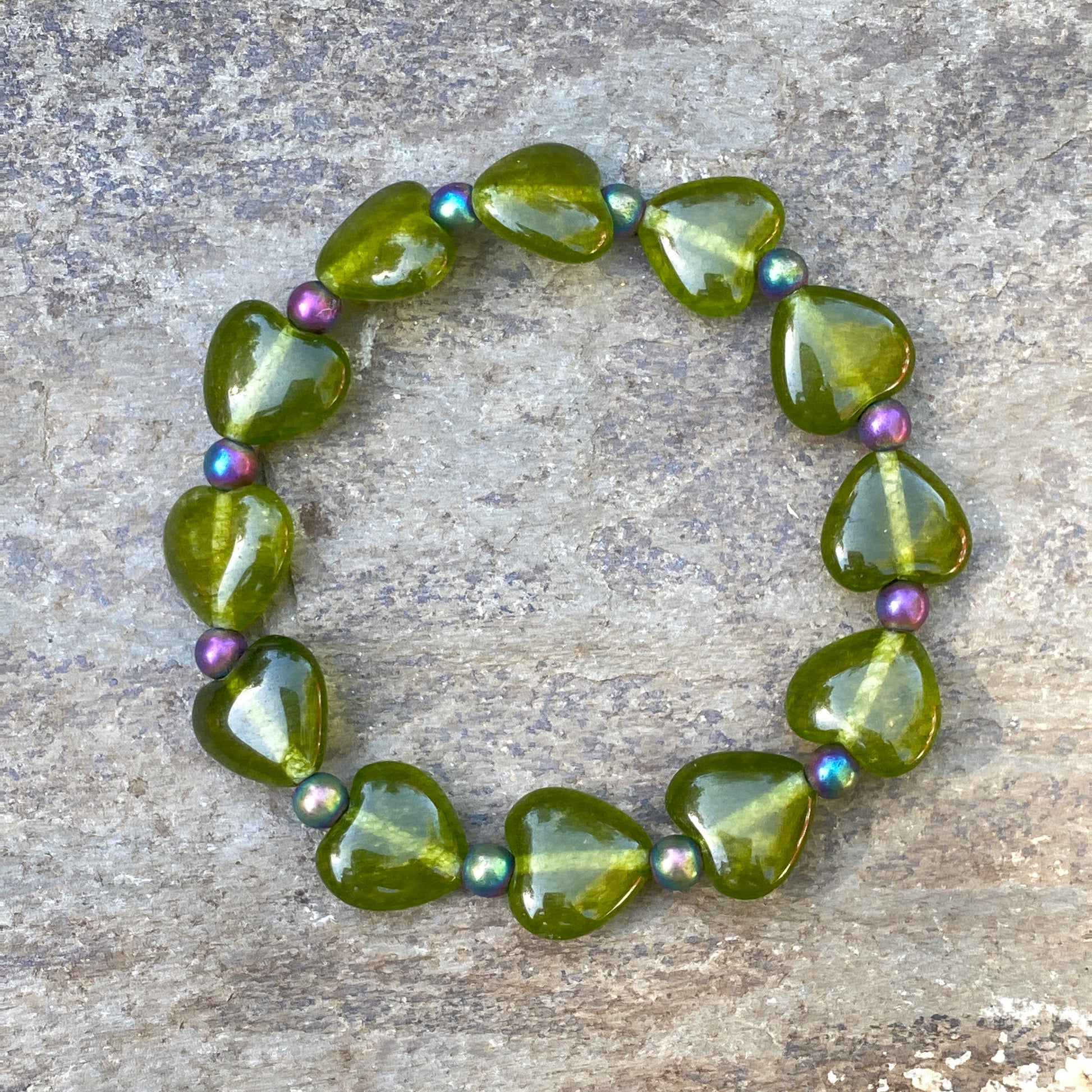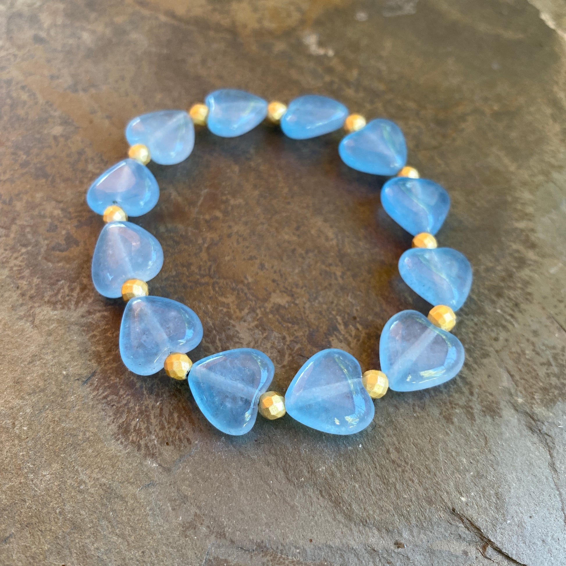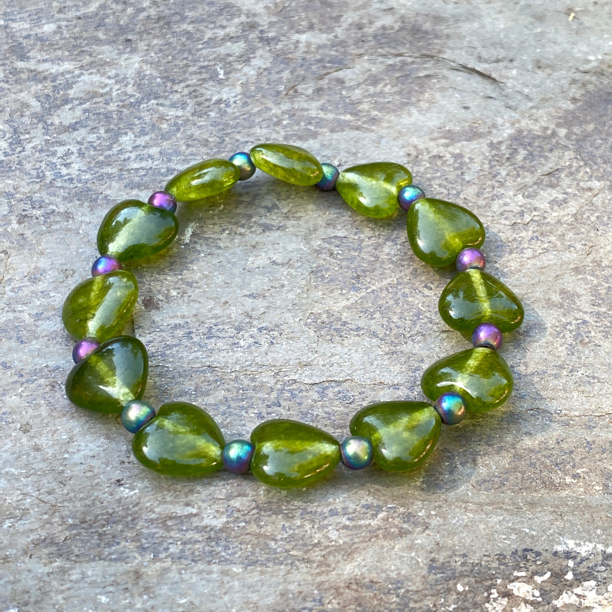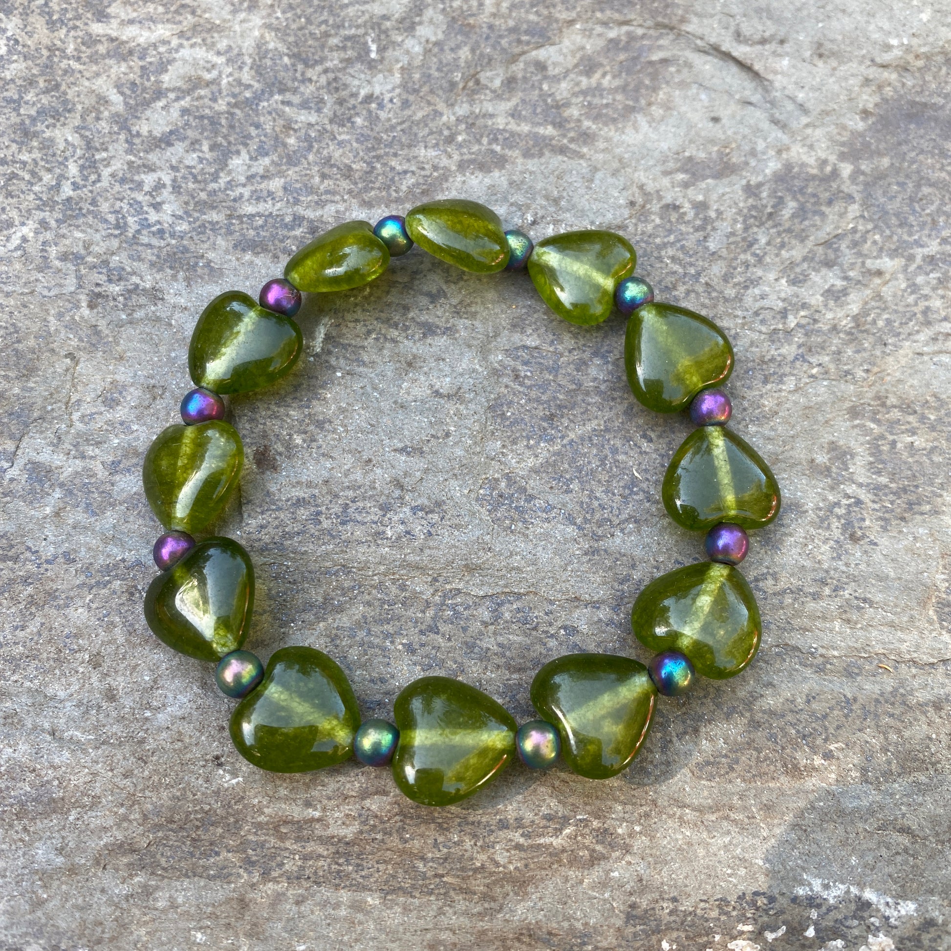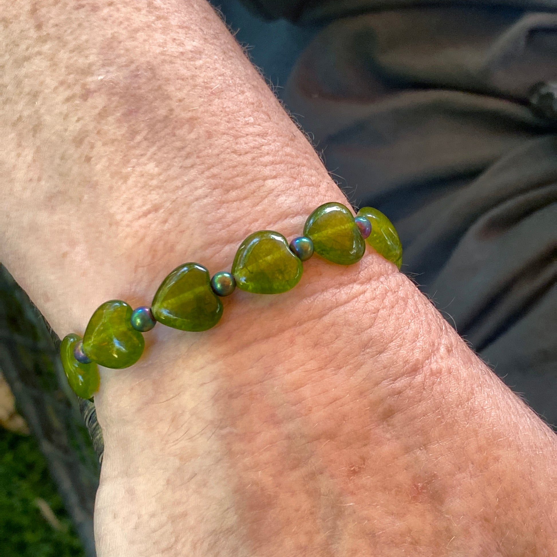 Jade Gemstone Hearts and Hematite Gemstone Bracelets