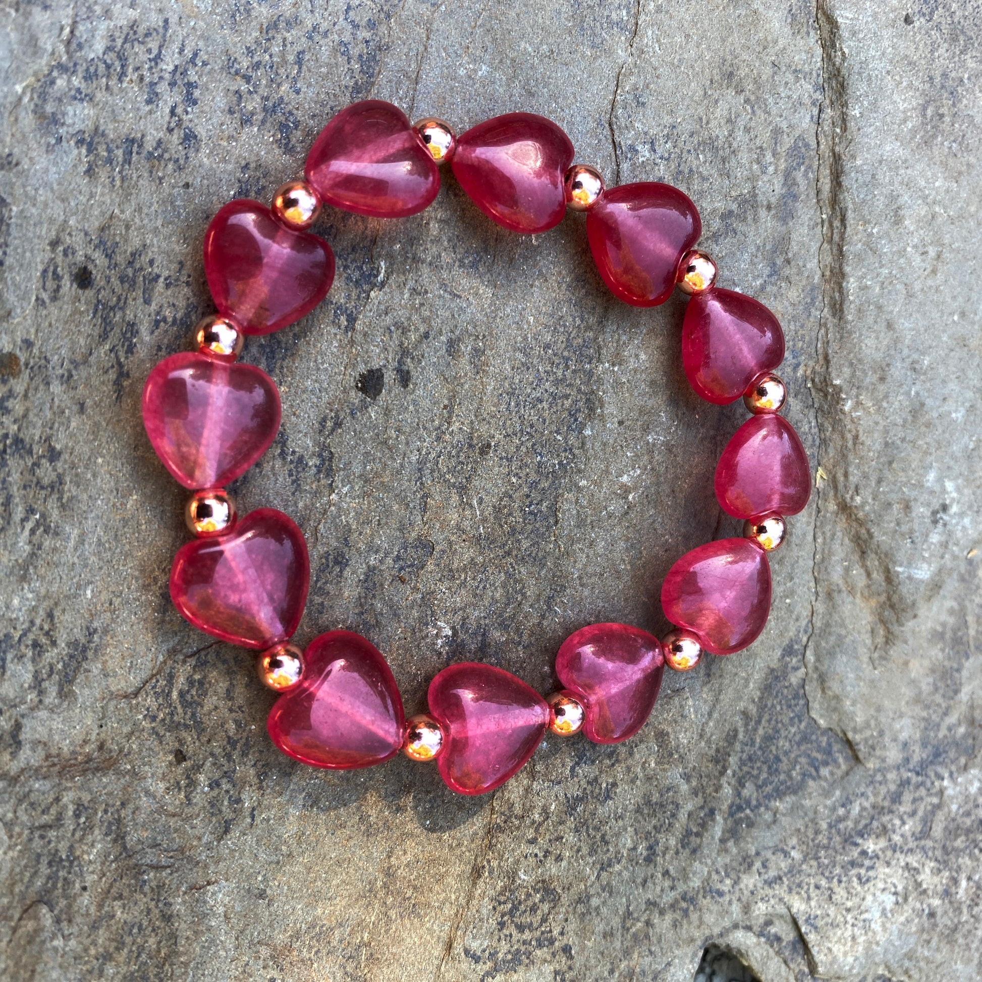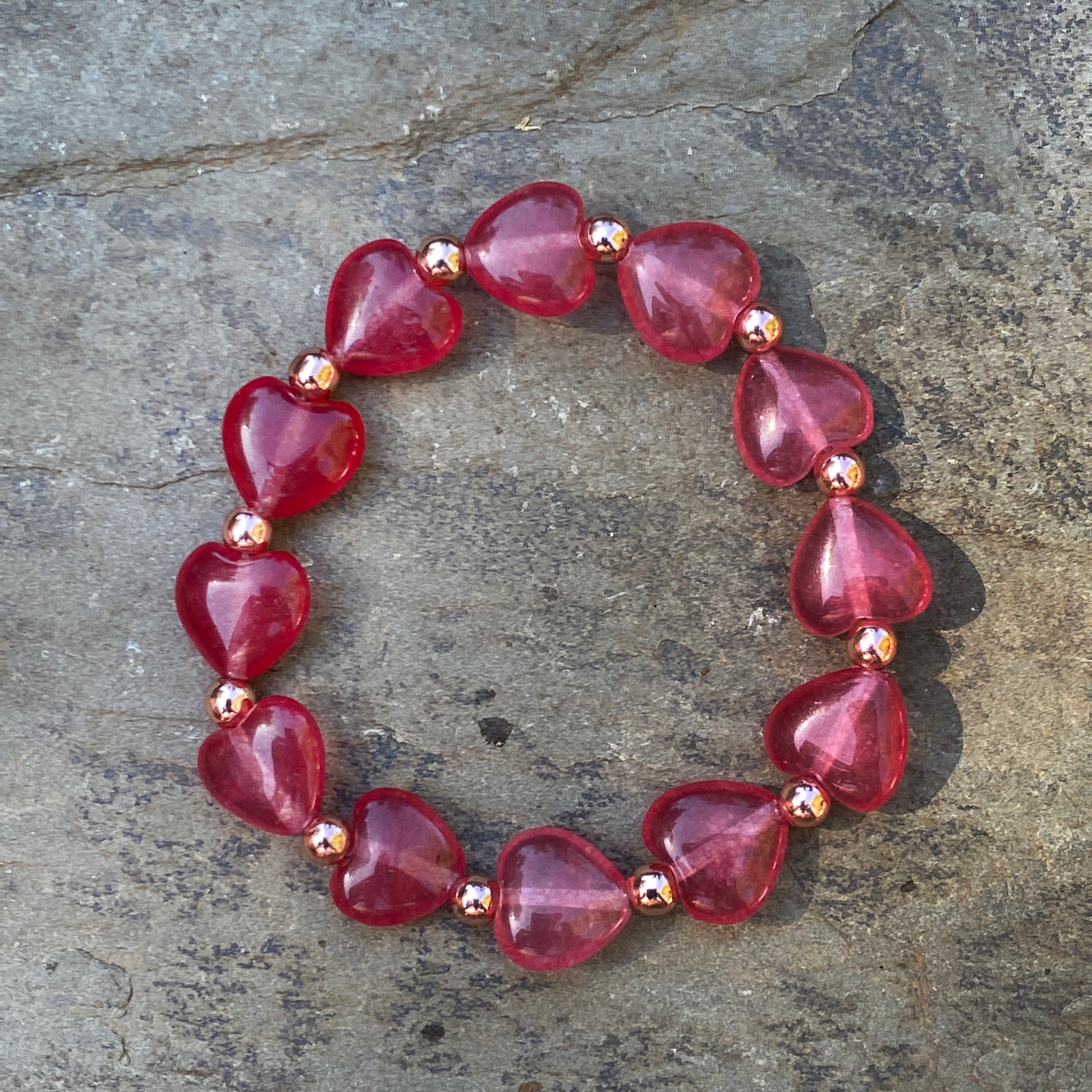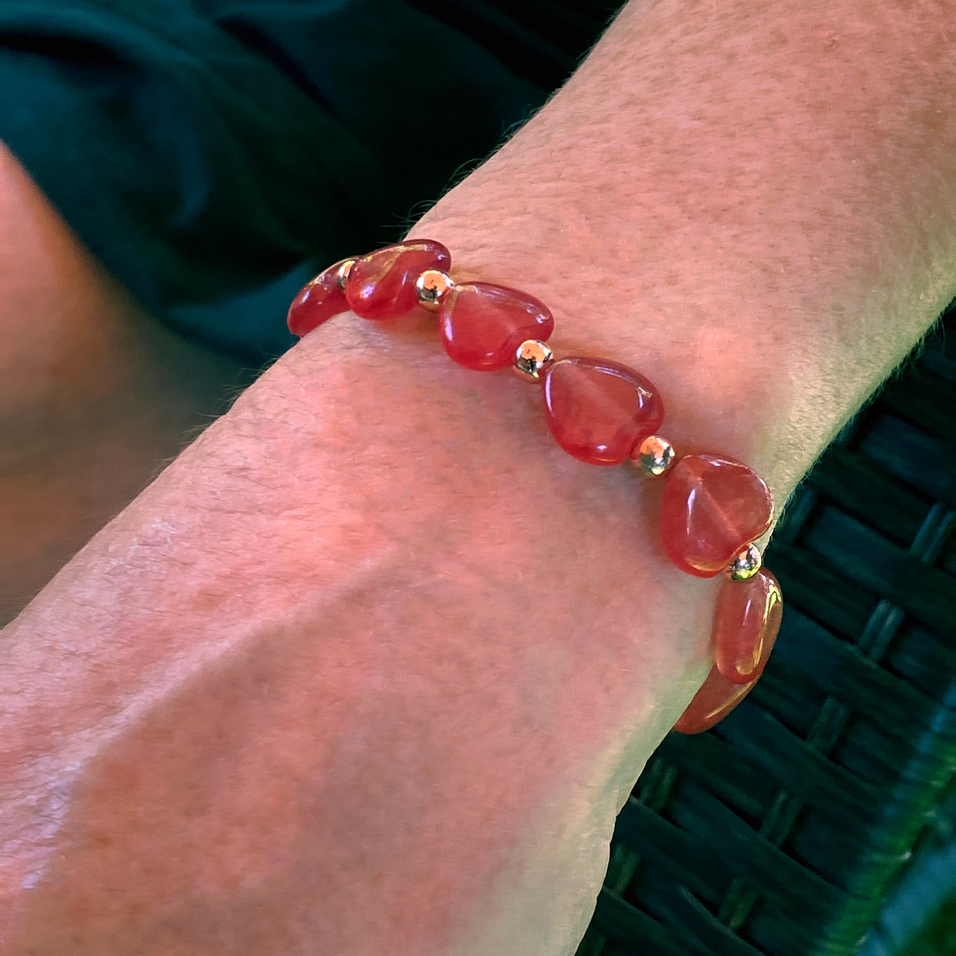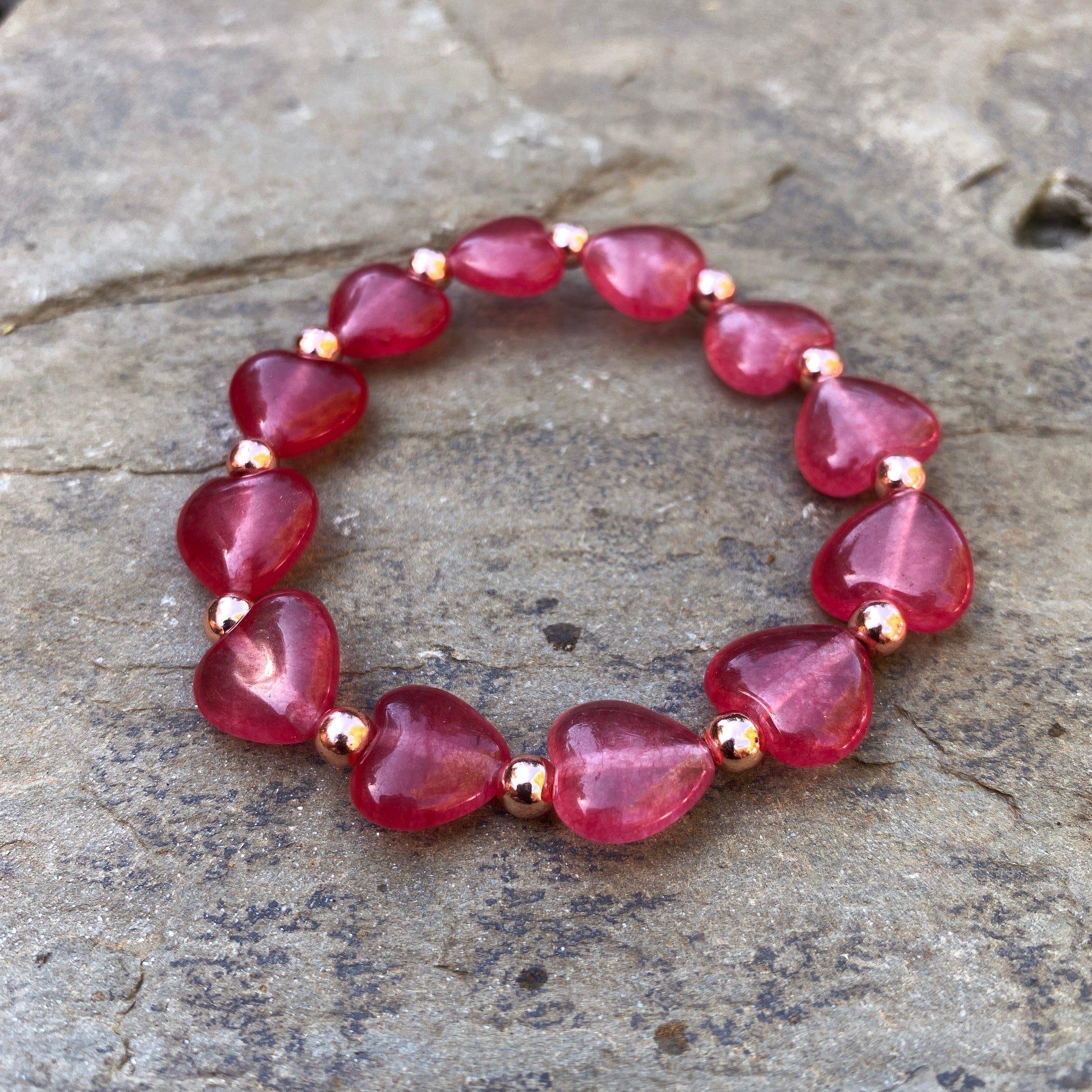Women's Green or Red Jade Hearts and Hematite Gemstone Bracelets