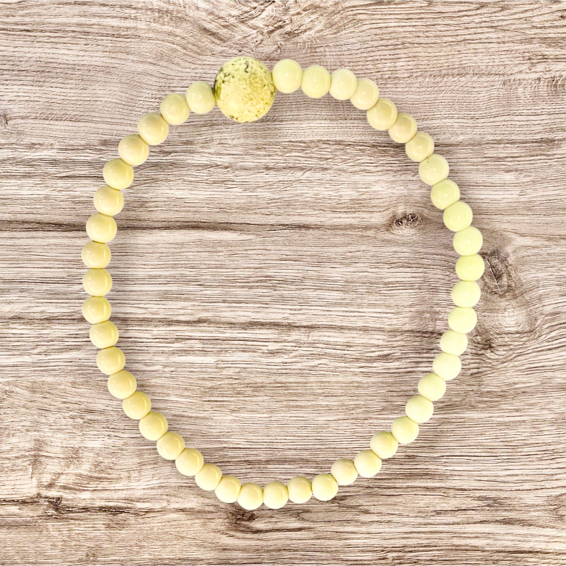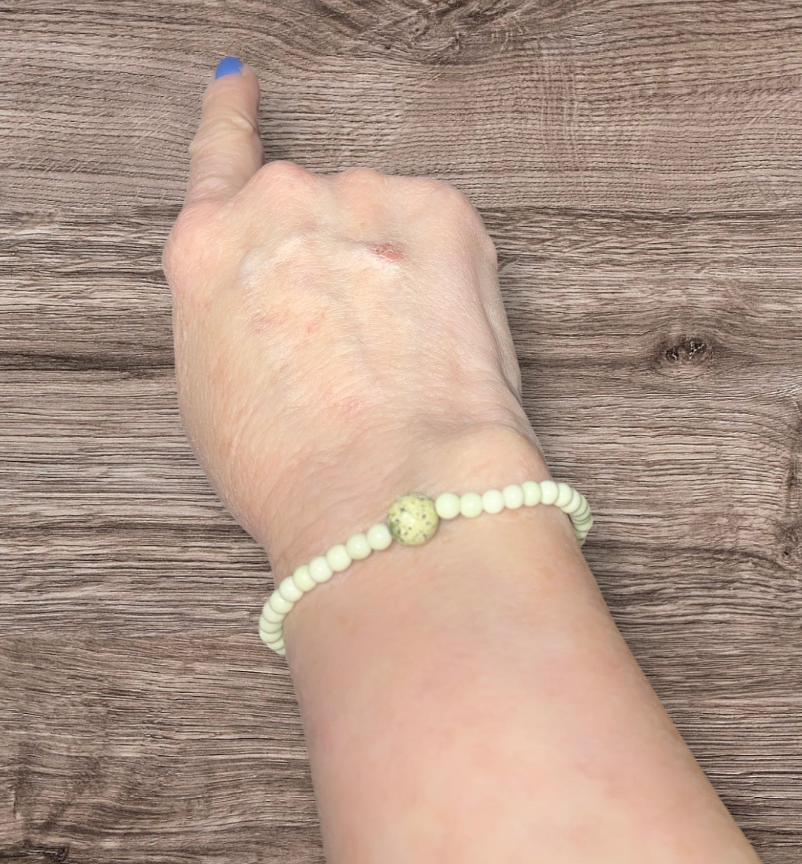 Beads are strung on professional latex free elastic for longevity of the bracelet.